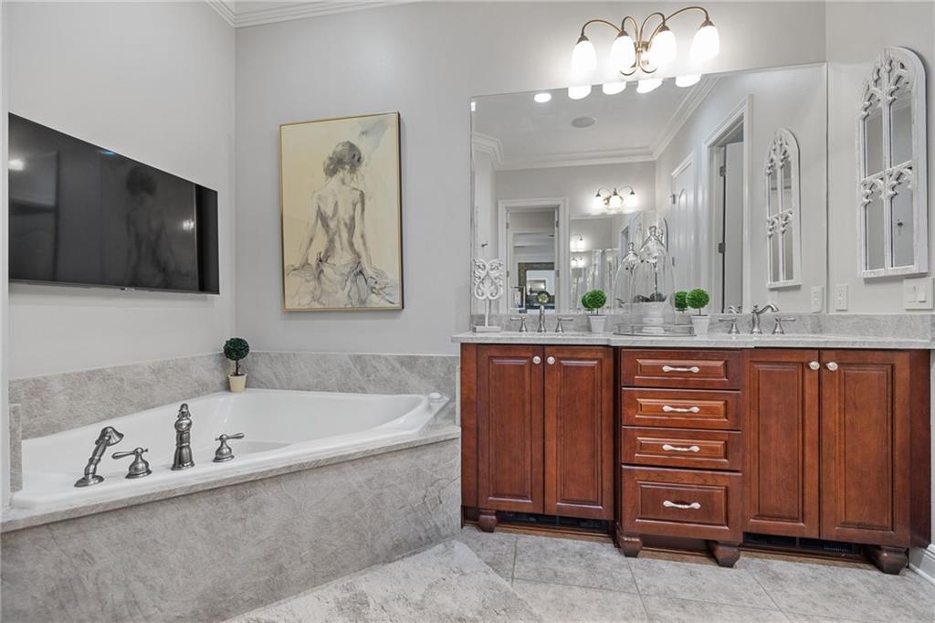 Nestled in the stunning Money Hill Golf community, this meticulously maintained home sits on a sprawling 1.5-acre manicured lot, offering the perfect combination of luxury, comfort, and cutting-edge design. Featuring four spacious bedrooms and five bathrooms, this residence exemplifies both refined living and exceptional entertaining. Inside, discover an open-concept layout enhanced by elegant crown molding throughout, and a chef’s kitchen that will impress even the most discerning cook—complete with a Sub-Zero refrigerator, Wolf gas stove, butler’s pantry, and wine pantry. A cozy fireplace anchors the living area, while the enclosed sunroom offers the perfect setting for a pool table or relaxed gatherings. The fully equipped media room with projector television provides a true theater experience, and an 8x10 safe room/vault adds peace of mind. This fully automated smart home allows seamless control of lighting, temperature, entertainment, and security systems—all at the touch of a button. Step outside to enjoy resort-style living with a sparkling pool and spa, fully appointed outdoor kitchen with all the bells and whistles, outdoor fireplace, and a fire pit made for entertaining family and friends under the stars. The home features two separate garages accommodating up to four vehicles plus a recreational vehicle or golf cart, each with lift elevator access for effortless storage—no heavy lifting needed. A whole-house generator ensures uninterrupted comfort and convenience. The property also offers two driveways, providing privacy and easy access for homeowners and guests alike. This extraordinary residence is an entertainer’s dream, blending sophistication, innovation, and timeless elegance in one of the Northshore’s most desirable golf communities. Don't miss this incredible find priced below appraisal!