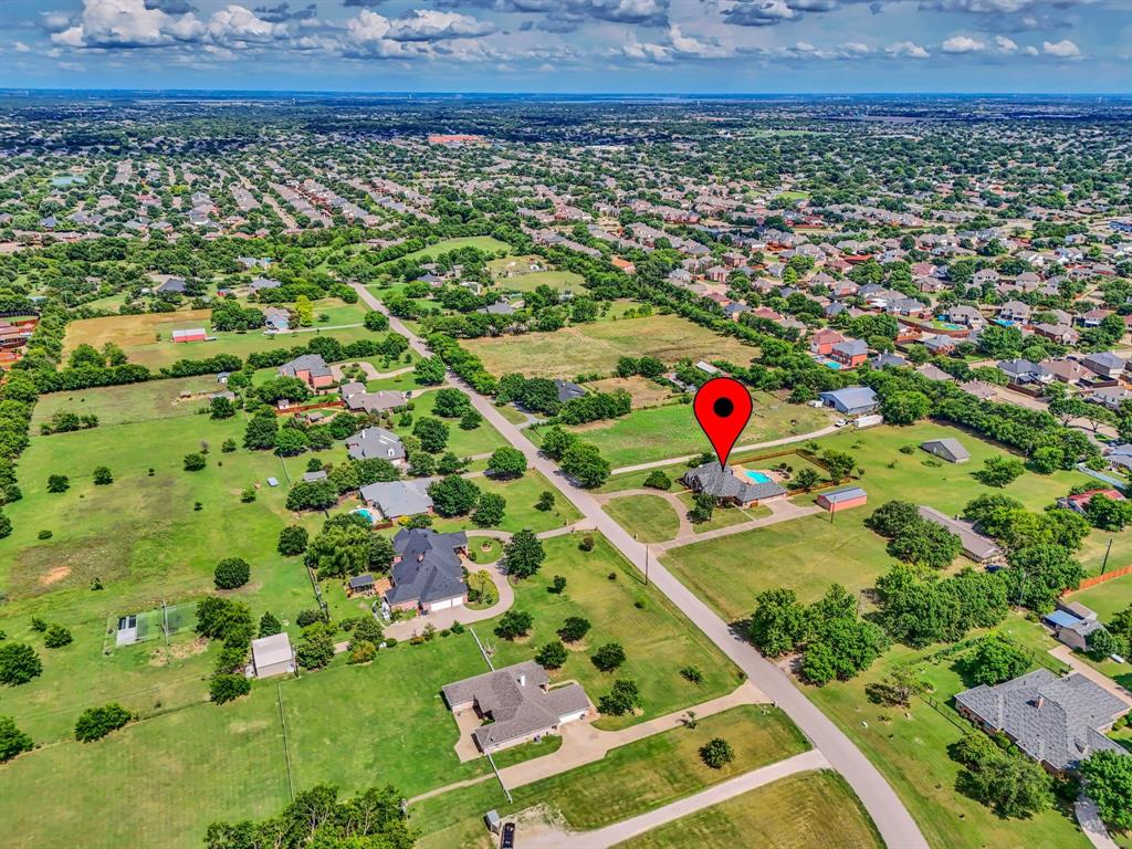Welcome to a RARE find! This piece of country in the heart of Allen has NO HOA Board. Premium 2 ACRES in Buckingham Polo Club Estates offers secure, peaceful and private rustic living on a NO THRU-TRAFFIC blacktop road. Find PRIVACY and space within walking distance of Allen HS, the Football Stadium & Marion Elementary. Conveniently located within blocks of HEB or Kroger, premium retail shops and HWY 75 & 121 access points. Escape to this highly desirable sprawling neighborhood in a 3290 sq ft SINGLE STORY 4 bedroom & 3-bathroom home. This CUSTOM-BUILT home boasts a floorplan designed to maximize wide-open views of the sparkling swimming pool from inside living spaces. 2 separate living areas, plus a formal dining room provide opportunities to leverage flexible spaces to meet your needs. The living space is anchored by a floor to ceiling ROCK fireplace creating a striking focal point with wood-burning or propane options. Kitchen offers granite countertops, stainless-steel appliances & a double oven. The primary bedroom features an oversized closet for storage, plus an updated walk-in shower. New roof & energy efficient windows 2024, new fencing, and recent bathroom updates show the owners pride. Enjoy the privacy of your own pool and spa oasis amidst a 9000 sq ft backyard featuring an expansive back-patio and pool-deck with upgraded custom designed deck re-surfacing. The circle driveway offers a grand entrance with curb appeal, easy vehicle access, and pull-through parking convenience for trailers. Maximize space in the garage with 2 extra-wide bays to accommodate larger vehicles. An additional 45ft x 20ft metal shop with 9 ft overhead door can be used as a workshop or added storage for vehicles or equipment. A 2-stall horse barn with two 20x20 stalls & an enclosed two-story tack room is located at the rear of the property. Chickens allowed. Discover the endless opportunities within this unique property. Ideal for animal lovers!