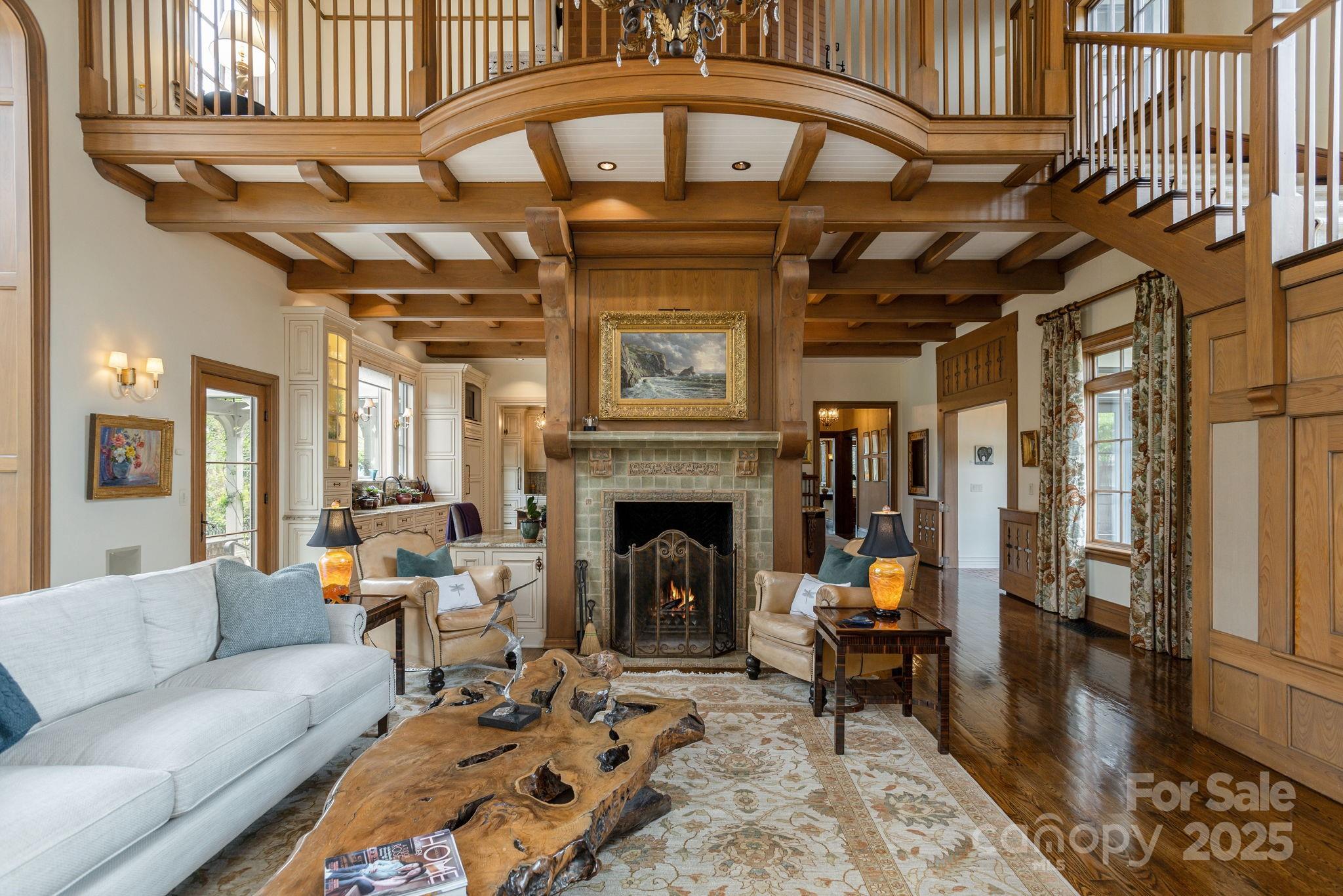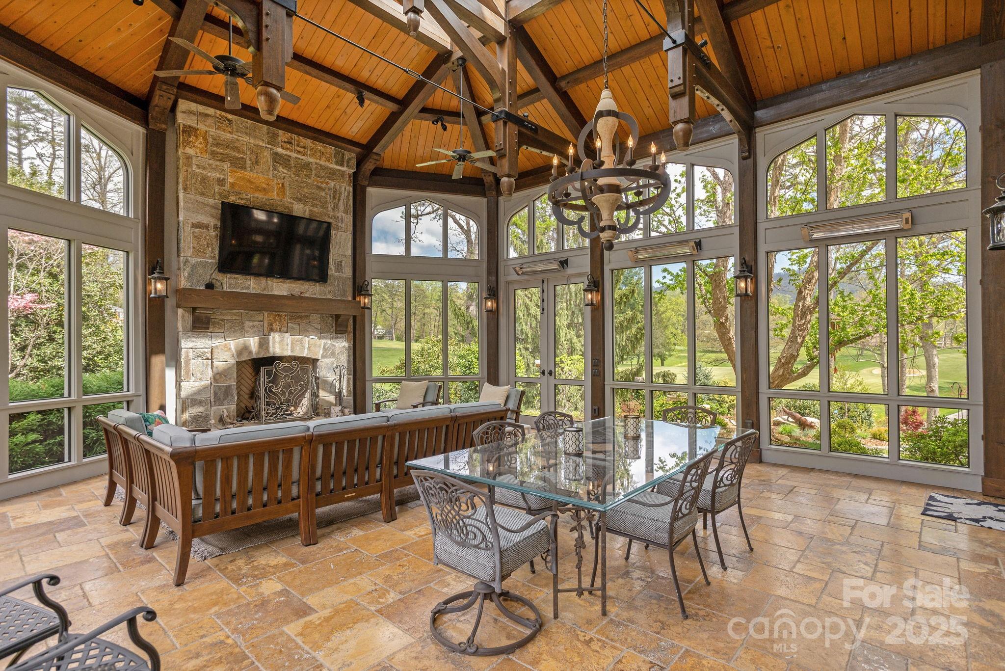 Welcome to 8 Fairway Place—a residence where timeless architecture meets refined living in one of Asheville’s most sought-after communities. Inspired by French chateau elegance with subtle Tudor influences, this Griffin Architects, PA home offers both grandeur and comfort, just steps from the 7th fairway of the exclusive Biltmore Forest Golf Course. The entry hall is graced with William Morris–inspired stained-glass windows and a painted strapwork ceiling that highlight the home’s history and artistry. An Edwardian sunroom/parlor, filled with natural light and set with terracotta flooring, creates an inviting space for relaxation. The formal dining room features stenciled Venetian plaster and a high ceiling adorned with a decorative plaster English rose motif. The butler’s pantry, with its backlit English Art Nouveau antique stained-glass doors, opens to an expansive terrace. At the heart of the home, the soaring great hall is anchored by a striking stone fireplace framed in handcrafted woodwork—a space that is both a dramatic showpiece and a warm gathering place. Just beyond, the screened-in porch extends the living area and offers panoramic views of the lush golf course. The grounds are as breathtaking as the interiors, with thoughtful landscaping that provides year-round color and texture. Stone retaining walls and winding pathways echo the craftsmanship found throughout the home’s design. From sunlit interiors to serene outdoor spaces, every detail at 8 Fairway Place reflects timeless elegance and effortless living. More than a home, it is a lifestyle defined by sophistication, community, and the natural beauty of Biltmore Forest. View the tour: bit.ly/8Fairway