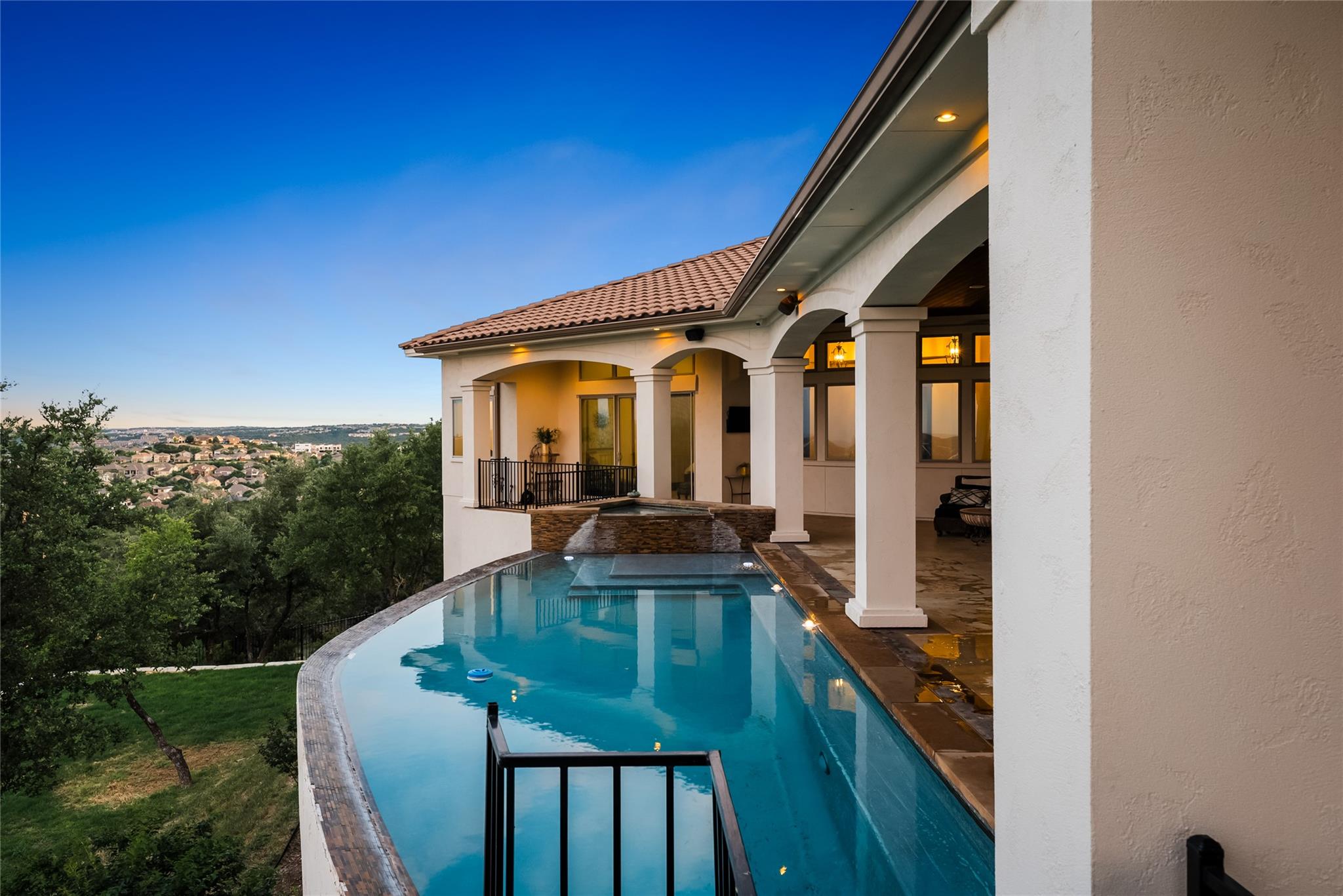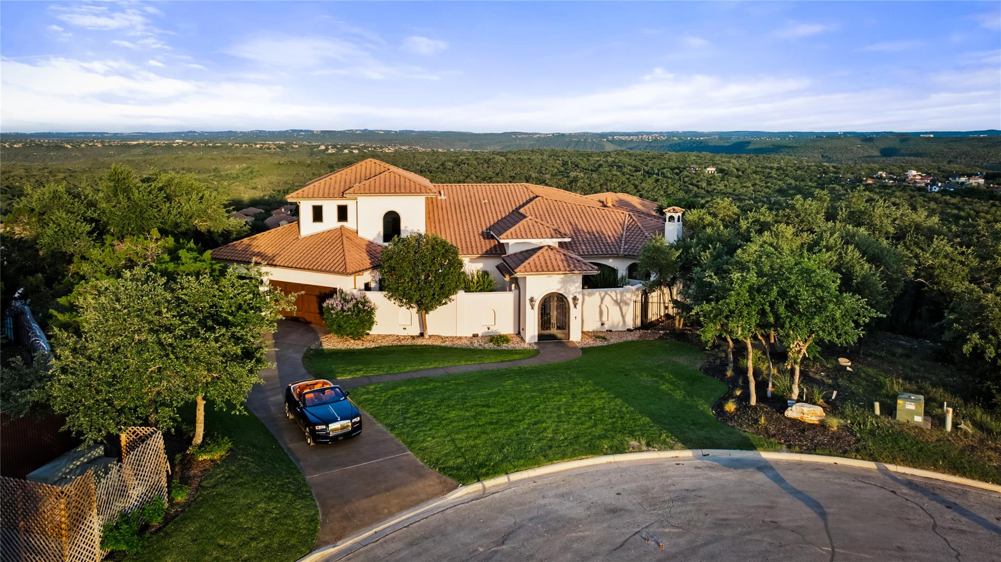 An estate setting behind the gates of Bella Montagna, a landmark Lakeway community highlighted by lush manicured homes and the privacy of estate-sized lots. 111 Piazza Vetta towers above Lakeway at possibly the highest elevation of the area. Commanding views over Lakeway Wildlife Bird Refuge and Austin for as far as the eye can see. The home presents itself with awe-inspiring elegance, designed for the breathtaking views, courtyard entry leads to the sprawling living areas framed by glass walls, an endless vision extending to and beyond the massive outdoor patio and infinity pool. The lot was recently improved with extensive retaining walls and terraced lawns. For the avid outdoor yard entertainer/gardener, the possibilities are endless. In 1963 Lakeway was created by a passionate group of visionaries, then just a raw piece of lakefront hill country popular for getaway homes to escape the hectic lifestyle of the Houston oil and gas boom, to what it has become today. An oasis of suburban lifestyle… One of the most sought-after suburban areas of Austin. A city retaining the beauty of the Hill Country and modern conveniences of shopping, restaurants, entertainment, and country clubs. The schools are rated among the best in Austin. Let's not forget the original vision of the resort Lake Travis lifestyle.