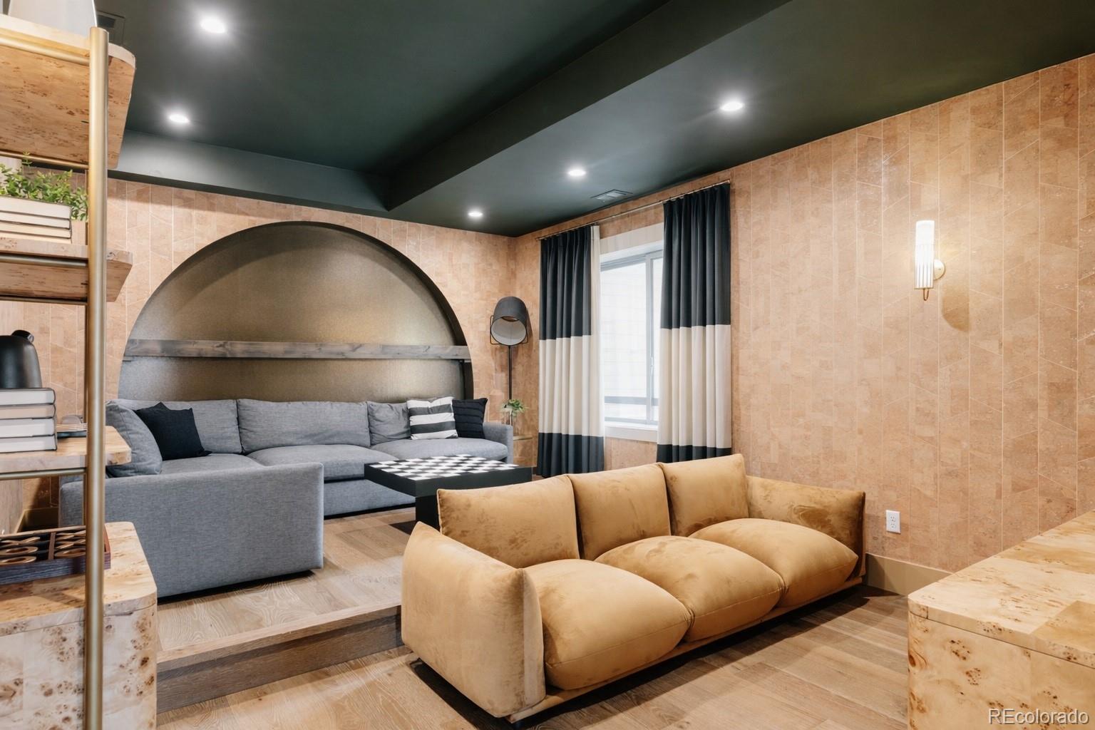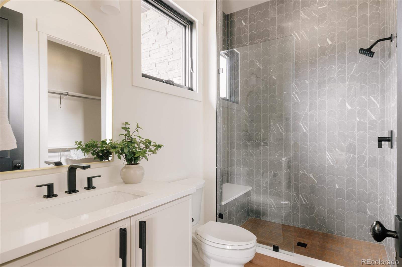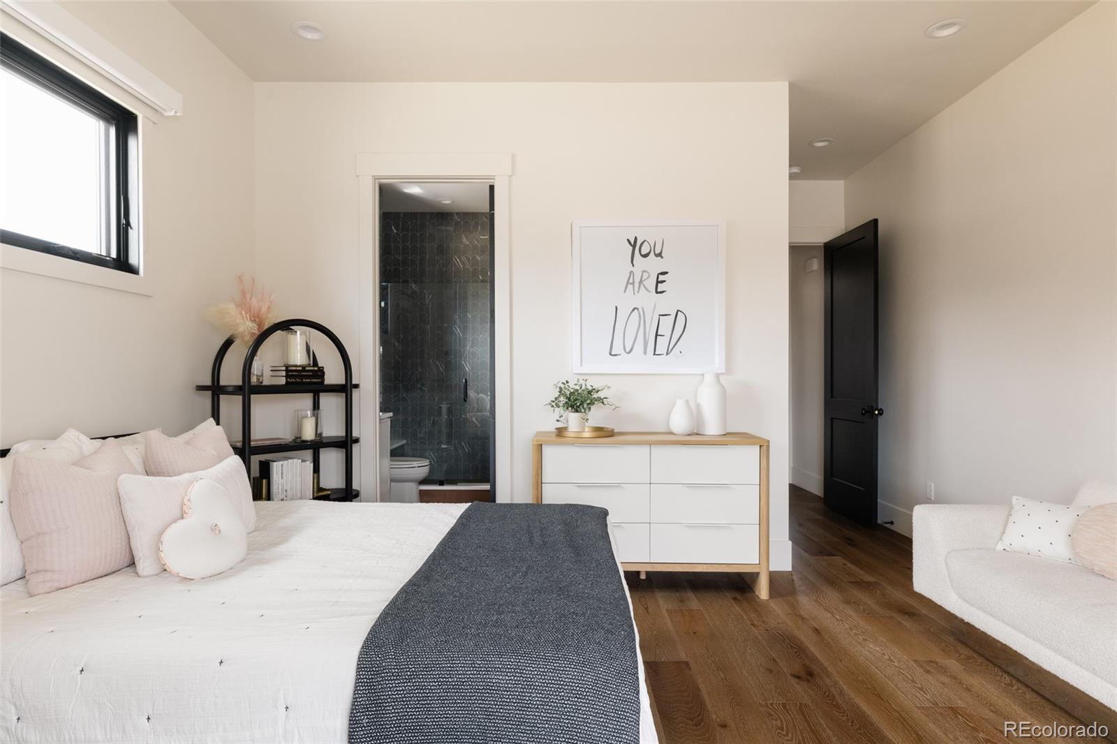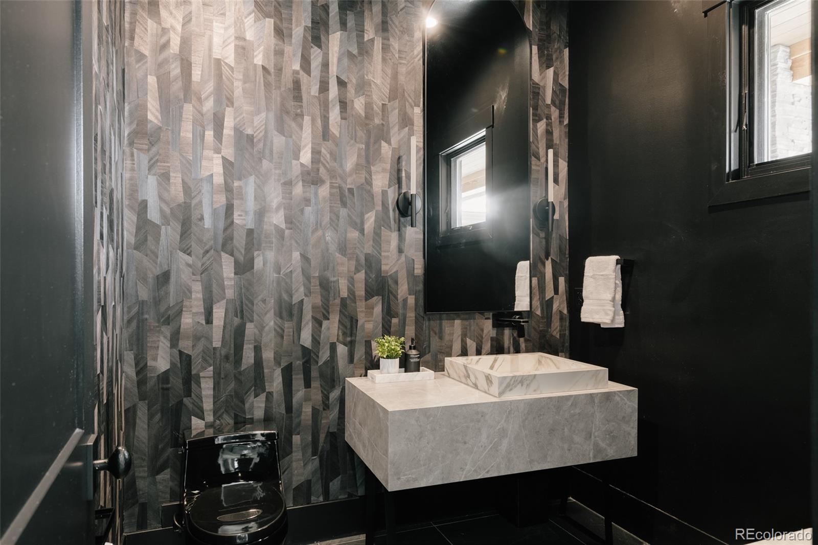 Award-winning Modern Mountain home—featured on HGTV’s Rock the Block—on a quiet cul-de-sac in the gated Rookery at Heron Lakes. The home makes a statement with soaring 5” beetle-kill pine vaulted ceilings, herringbone hardwood floors, a sleek linear gas fireplace & a striking RH chandelier. Motorized blinds & expansive windows flood the open-concept main level with light while framing serene views. The chef’s kitchen is a true centerpiece, blending design & performance with porcelain & quartz countertops, dark Emtek hardware with inset pulls, a 60” Ilve dual-oven gas range, Dacor refrigerator, freezer, dishwasher, built-in steam oven & a boutique-style pantry concealed behind rounded solid wood doors. Seamless indoor-outdoor living unfolds through expansive accordion doors opening to a covered deck with sweeping views of Lone Tree Reservoir, the Rookery & the Rocky Mountains—an exceptional setting for both quiet mornings & sunset entertaining. The main level hosts three ensuite bedrooms, including a luxurious primary retreat with radiant heated bathroom floors, a boutique custom closet & private laundry—one of three laundry areas throughout. A designer ombré bedroom adds a distinctive, curated touch. The walk-out lower level is designed for entertaining with a full second kitchen (Ilve range, Dacor appliances), a theater room with cork walls, tiered seating & custom lighting & a climate-controlled gym with overhead door access. Outdoor spaces rival a private resort with custom landscaping, locally sourced boulders, a water feature, private basketball court, putting green & turf yard with integrated drainage. The oversized garage features epoxy floors, built-in storage & a 240V EV outlet. Enjoy TPC golf privileges & access to resort-style amenities with an annual membership fee to the clubhouse, pool, fitness center, trails, dining & over 130 acres of open space—an elevated lifestyle within one of Northern Colorado’s most exclusive gated communities.