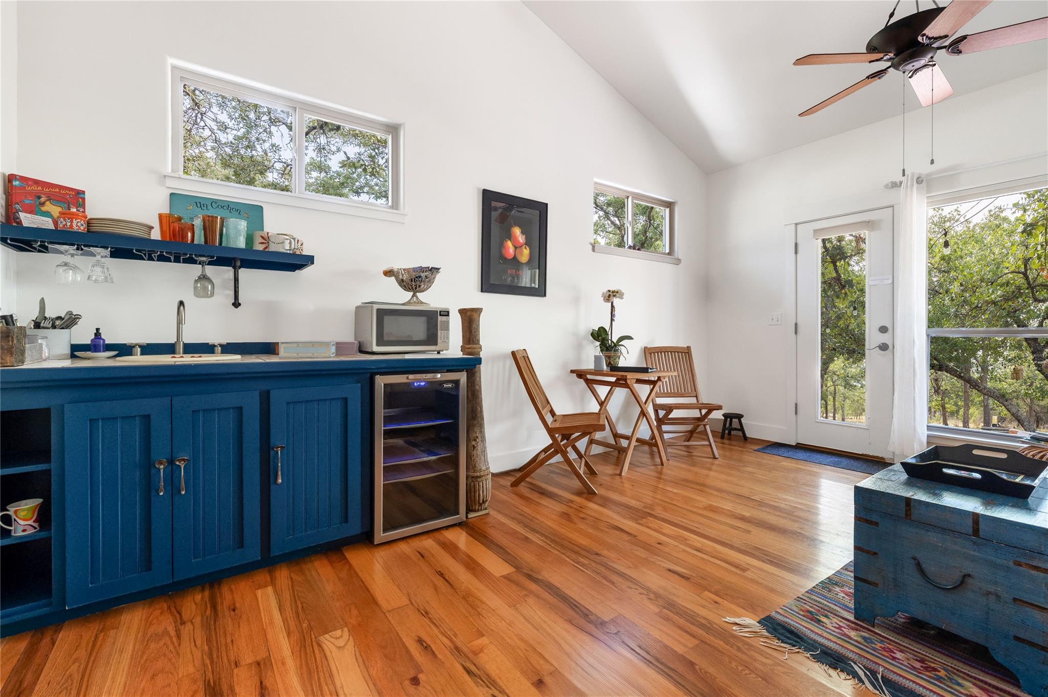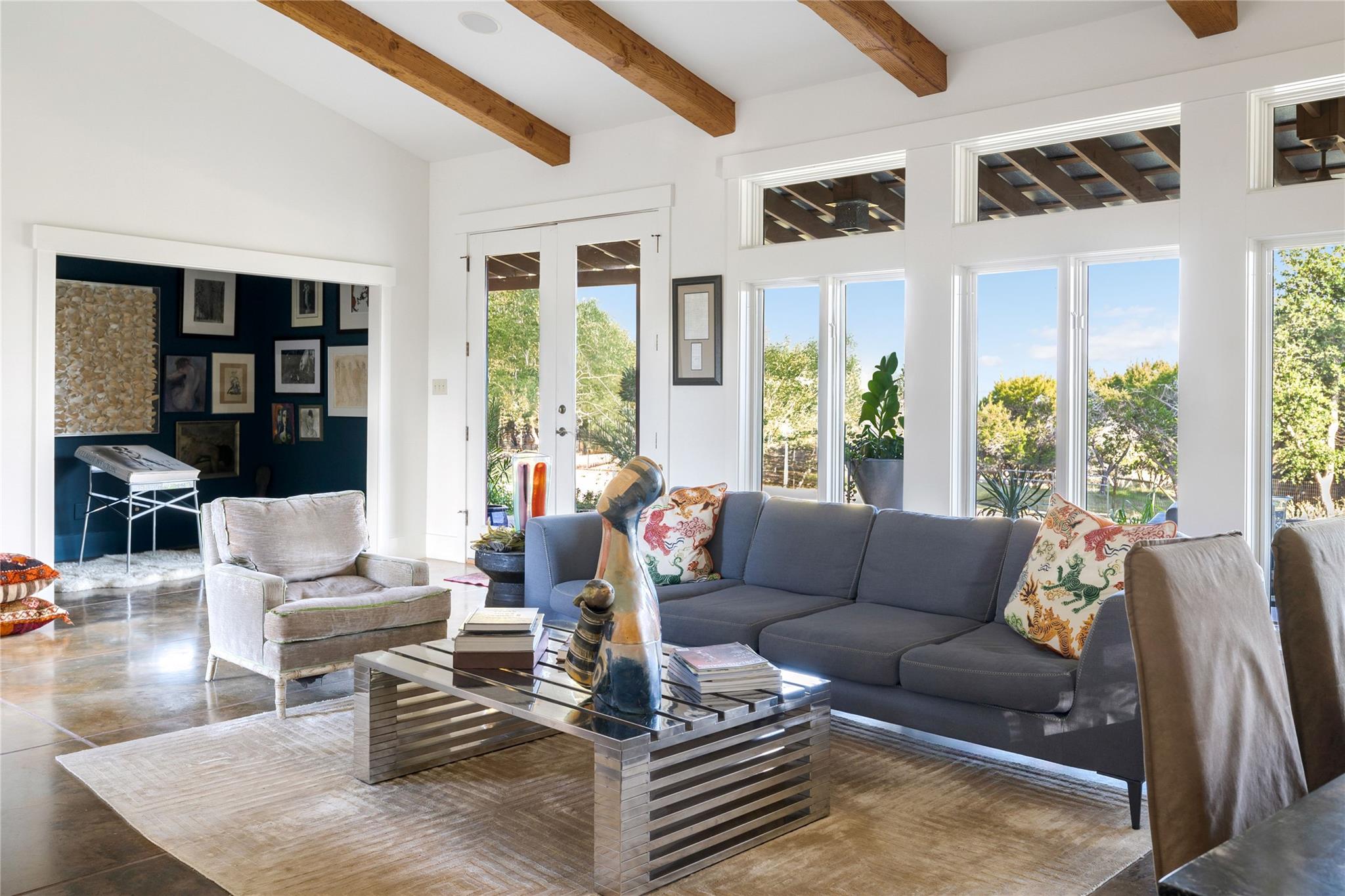 Most properties are found. But every once in a while, a property finds you. Welcome to Mystic Sky Ranch—a soul-stirring 26.6-acre ranch in the Texas Hill Country, where land stretches wide, history runs deep, and beauty feels sacred. Rooted in legacy and designed for a life well lived, this rare convergence of nature, architecture, and soul was once part of the historic Peyton Colony. Rolling hills, heritage oaks, and curated structures come together to offer something truly extraordinary. In total, the ranch offers 10,000+ sq ft of living and gathering space: a 3,000-sf main residence by David Webber of Webber + Studio, four guest casitas, a 3,200-sf dining hall with commercial kitchen (could be turned into an additional residence as part of a Family Compound), 1,800-sf event barn, and pool pavilion with kitchen and bath. Each space is distinct yet unified in design—an intentional blend of utility, soul, and Hill Country character. The property also features a 60,000-gallon rain-water collection system. The stone-and-glass main residence rises from the hillside, blending indoors and out. A glass-wrapped kitchen anchors warm, intimate living spaces, while outdoor dining areas, a wood-fired pizza oven, and twinkle-lit trees create magic. Guest casitas tucked into the trees invite rest, while a sauna, sunlit pool, bocce courts, and hammocks encourage leisure. Connection is the heartbeat of the ranch, with gathering spaces that host weddings, retreats, and celebrations. A 150-year-old oak, lavender fields, winding trails, and wildlife exemption underscore its natural beauty. Located in a Dark Sky community just 35 minutes from downtown Austin, Mystic Sky Ranch offers rare seclusion within reach. Currently home to a successful retreat and event venue, it presents not only a private sanctuary but also a thriving business opportunity—an inspiring legacy of beauty, connection, and possibility.