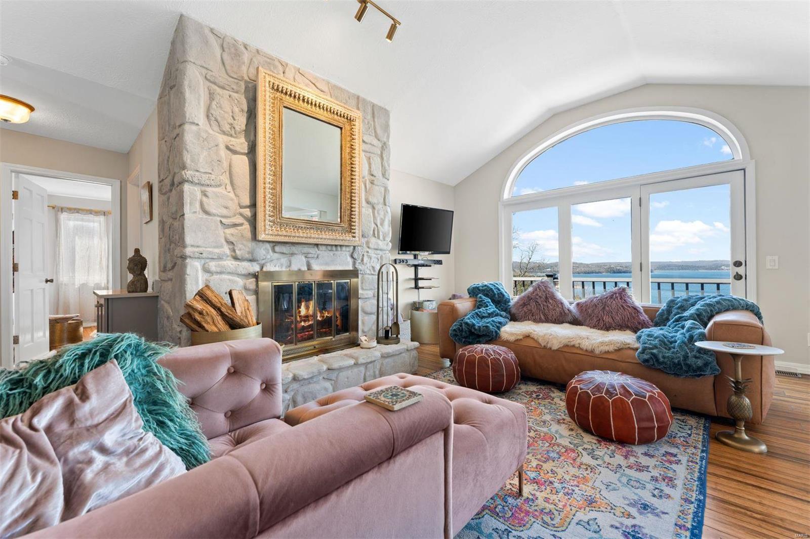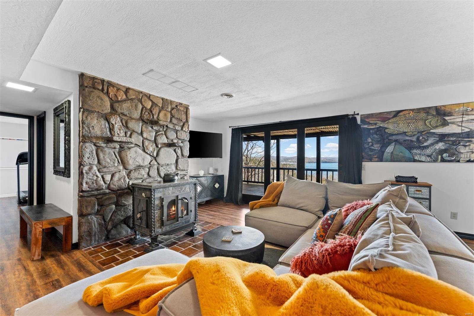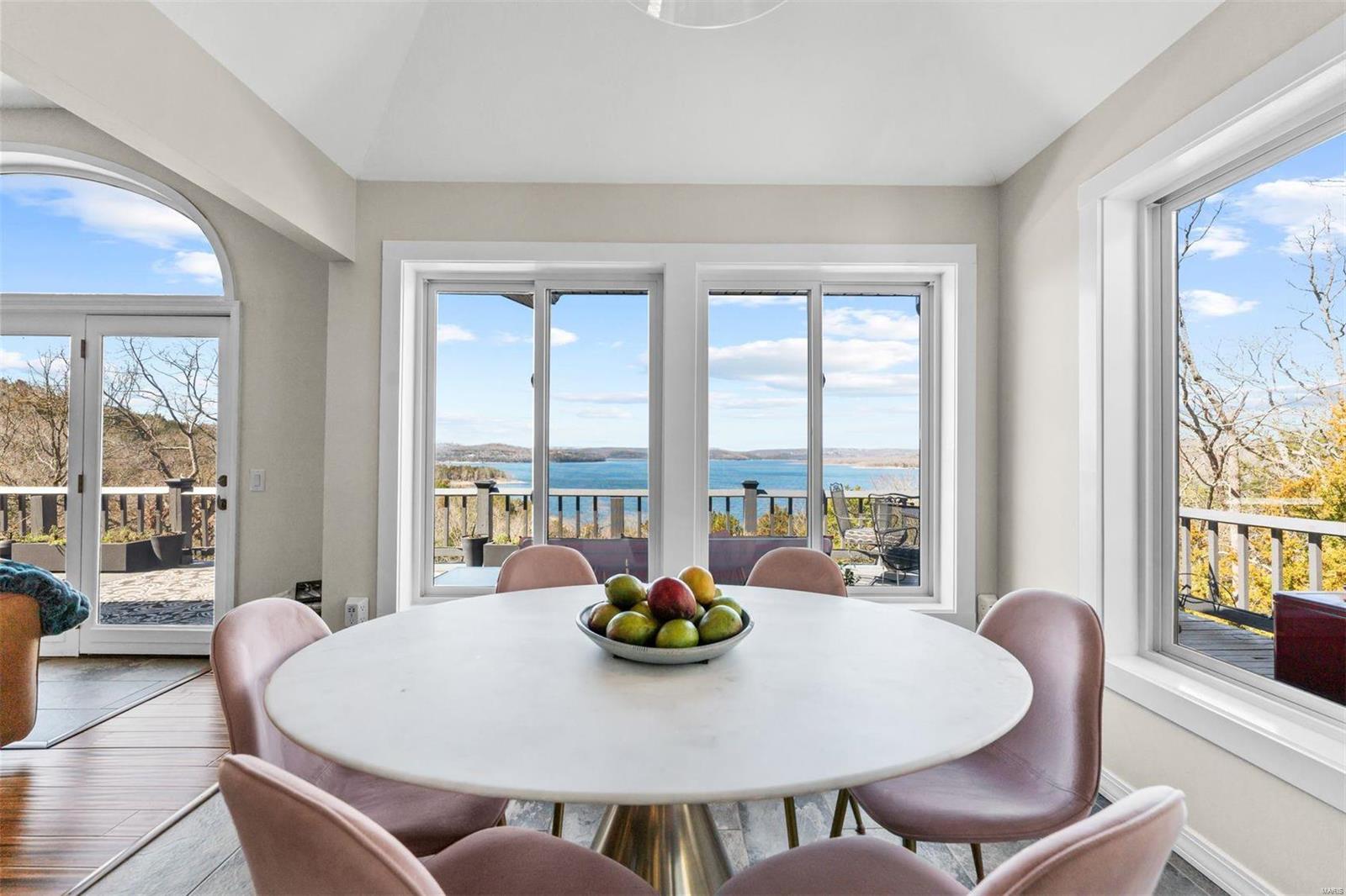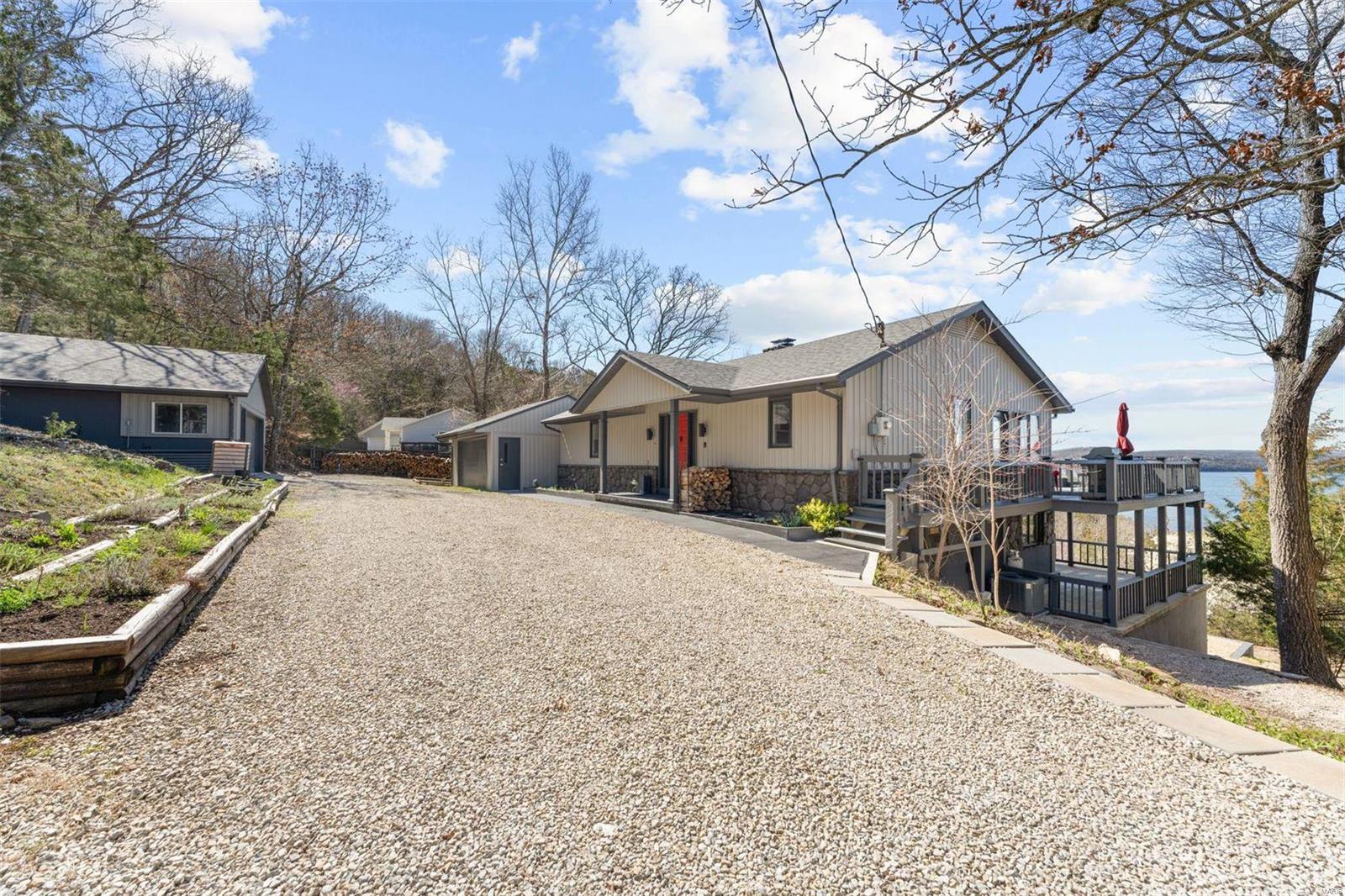 These may be the best views on Table Rock Lake! Immerse yourself in the unparalleled allure of lakeside living at this renovated sanctuary in Blue Eye, MO. Marvel at the breathtaking vistas from the expansive decks, while the elegantly designed open-concept chef's kitchen seamlessly blends style with functionality. Gather around the stone, wood-burning fireplace on cool evenings, where its warmth enhances the inviting atmosphere. Explore the recent updates, from the plumbing to the new retaining wall, ensuring modern comfort and aesthetic appeal. A coveted 12'x 30' boat slip is also available for an additional fee ($75K), granting effortless access to the pristine waters. Delight in the recently seeded lawn, and don't miss the chance to indulge in your own personal herb garden, adding a fragrant touch to your lakeside experience. Optional furnishings await to further enhance this enchanting waterfront retreat. Don't miss the chance to make this serene home your own!