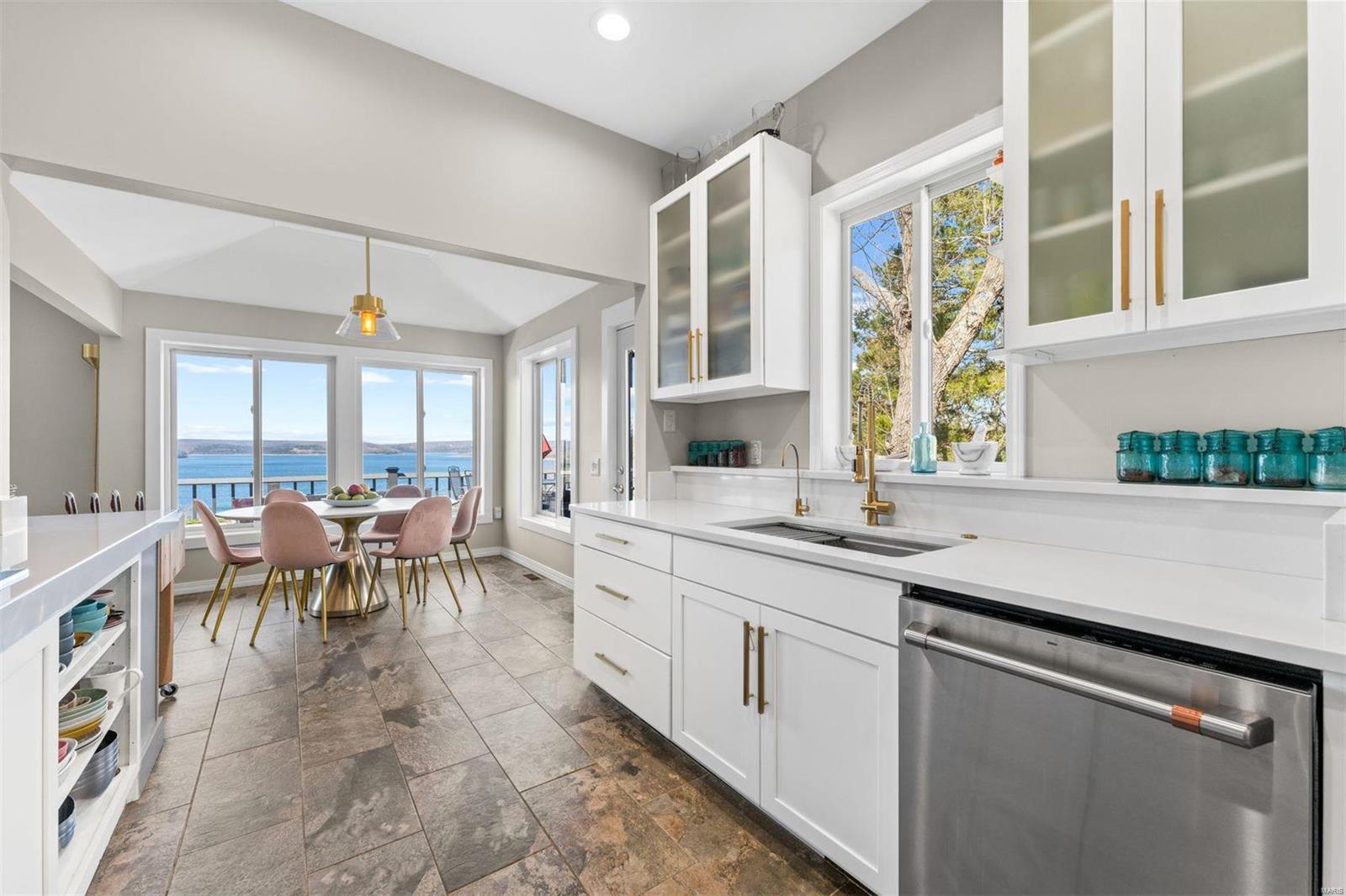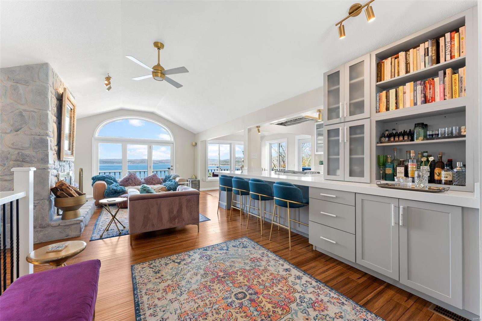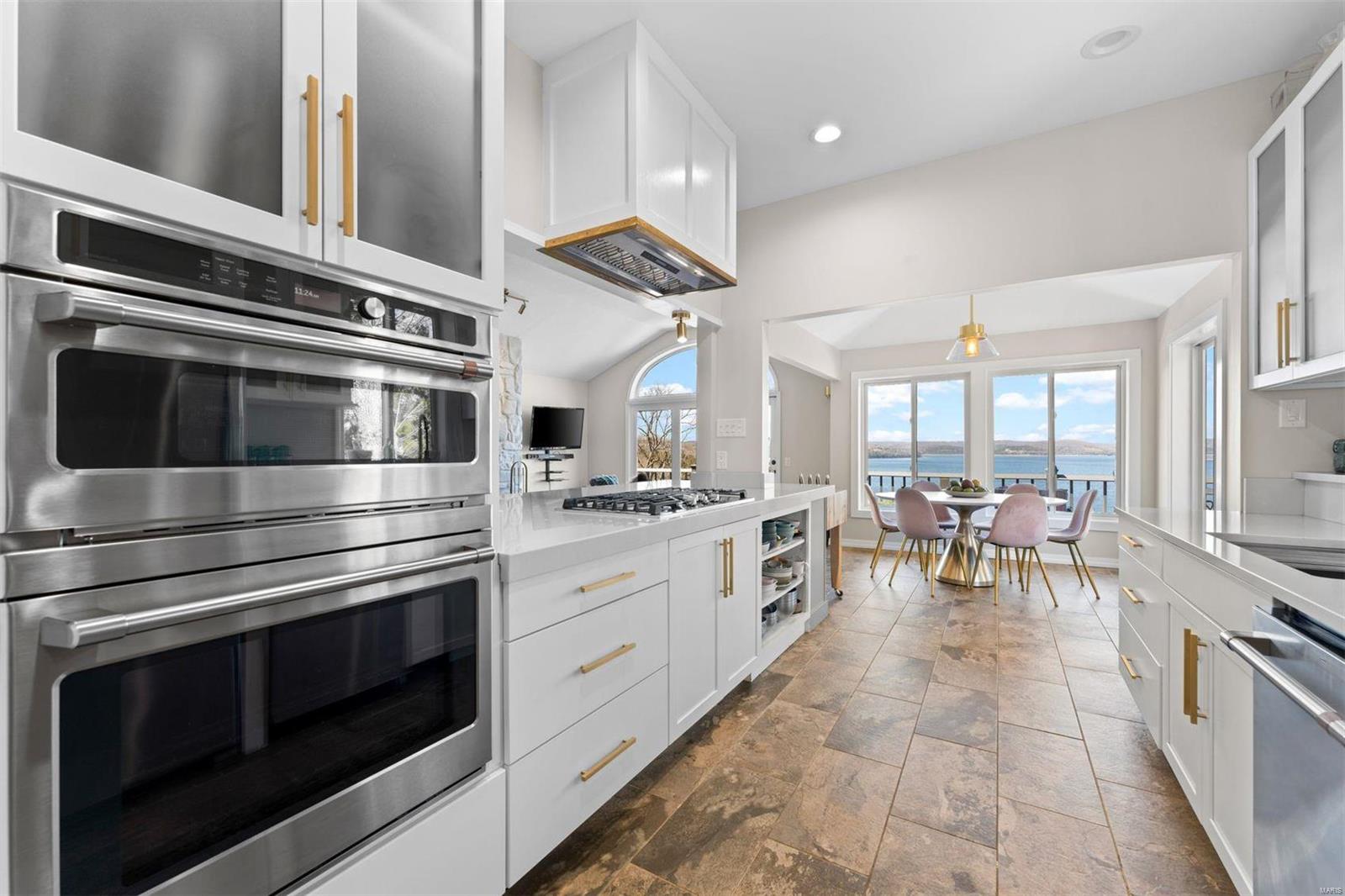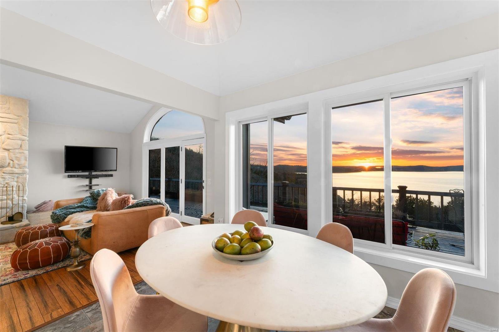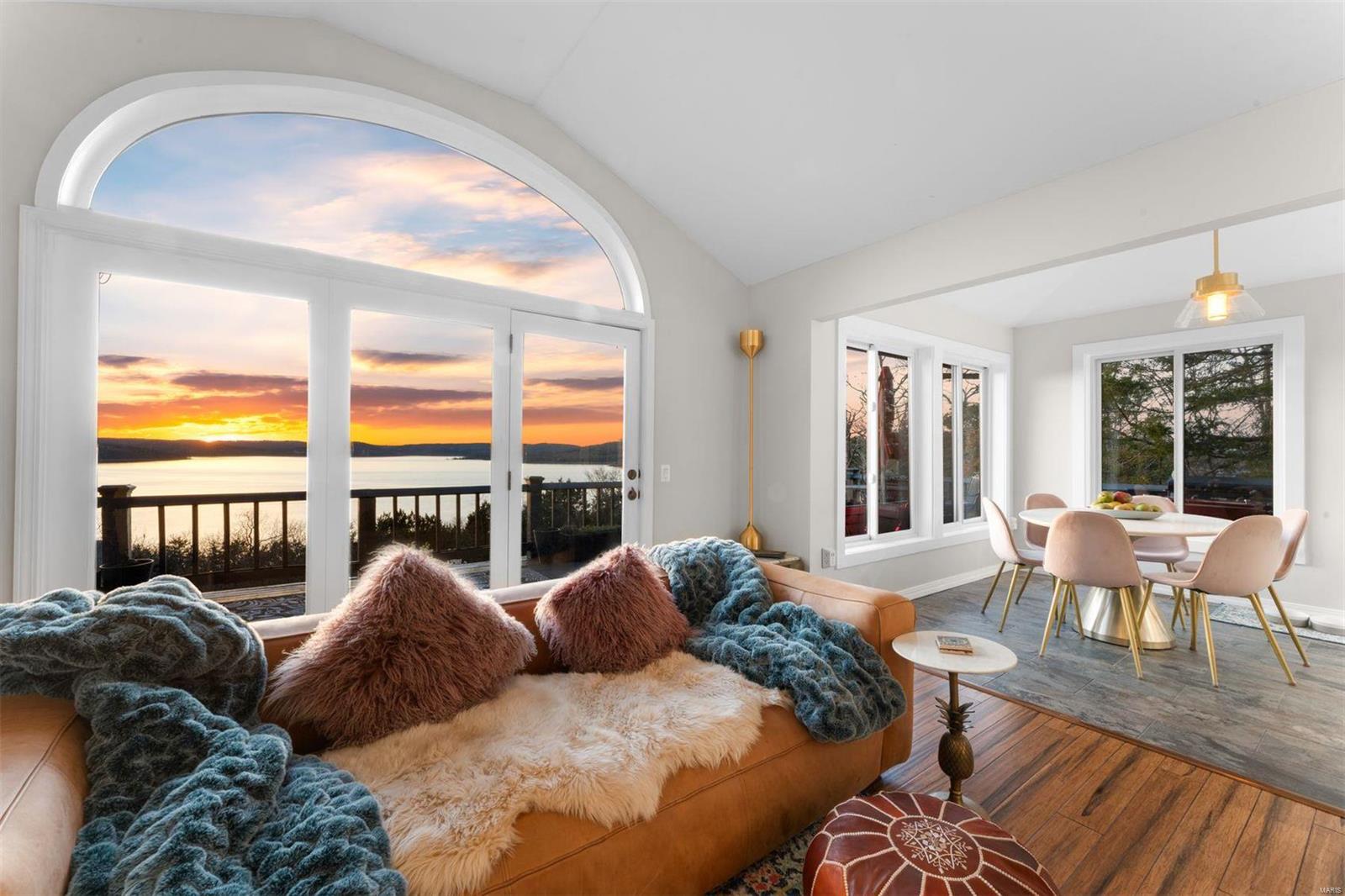 These may be the best views on Table Rock Lake! Immerse yourself in the unparalleled allure of lakeside living at this renovated sanctuary in Blue Eye, MO. Marvel at the breathtaking vistas from the expansive decks, while the elegantly designed open-concept chef's kitchen seamlessly blends style with functionality. Gather around the stone, wood-burning fireplace on cool evenings, where its warmth enhances the inviting atmosphere. Explore the recent updates, from the plumbing to the new retaining wall, ensuring modern comfort and aesthetic appeal. A coveted 12'x 30' boat slip is also available for an additional fee ($75K), granting effortless access to the pristine waters. Delight in the recently seeded lawn, and don't miss the chance to indulge in your own personal herb garden, adding a fragrant touch to your lakeside experience. Optional furnishings await to further enhance this enchanting waterfront retreat. Don't miss the chance to make this serene home your own!
