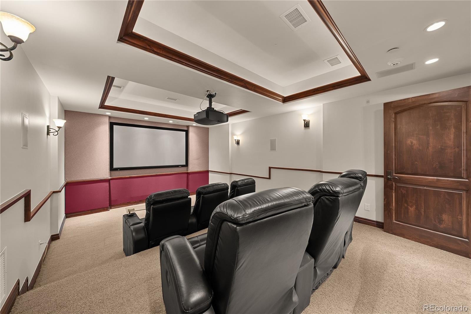 Set against a breathtaking, tree-filled backdrop on nearly an acre along the 5th fairway of the Country Club at Castle Pines, this extraordinary estate offers a rare blend of privacy, luxury, and lifestyle. Located in gated Castle Pines Village, the home feels like a secluded retreat where golf course views and towering pines create an unforgettable Colorado setting. Designed for both everyday enjoyment and effortless hosting, the residence is rich with private amenities and thoughtfully designed spaces. The walkout lower level opens to a resort-style backyard featuring a private pool, expansive patio, and lush lawn—ideal for relaxing ot entertaining. Inside, enjoy a dedicated fitness area, a television lounge with bar, a gaming and pool table space, and a home theater, creating endless options for recreation and hobbies without ever leaving home. Multiple bedrooms and flexible rooms throughout the home provide exceptional accommodations for guests, remote work, or creative pursuits, while generous living and entertaining areas invite gatherings both large and small. Upper decks offer sweeping views of the golf course and surrounding trees, and a separate lower-level garage adds valuable space for storage, gear, or collector vehicles. This is more than a residence—it’s a private golf course retreat designed to support every passion. Residents of The Village at Castle Pines enjoy a true mountain setting with 24-hour security, miles of trails, pools, tennis and pickleball courts, fitness facilities, playgrounds, and a vibrant calendar of community events. A rare opportunity to own an exceptional estate in one of Colorado’s most prestigious gated communities. Call Me Today for your private tour of this estate and the community amenities.