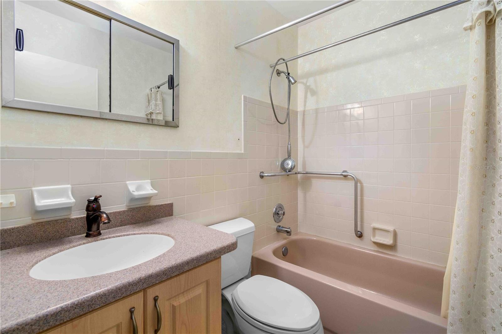 Inside, the kitchen has already been updated with a modern layout, recessed lighting, and a water filtration system, while the living room, dining area, and bedrooms are ready for your personal design vision, as carpeting has been removed to allow installation of flooring of your choice. Both bathrooms feature updated vanities and commodes, providing a head start on your renovation plans. The spacious primary suite includes dual closets and a private en-suite bath, and the flexible bonus room offers additional storage while overlooking the rear courtyard. This top-floor residence enjoys the benefit of no upstairs neighbors and is conveniently located just steps from the elevator corridor and mailboxes, making daily living effortless. Assigned parking is included for added convenience.