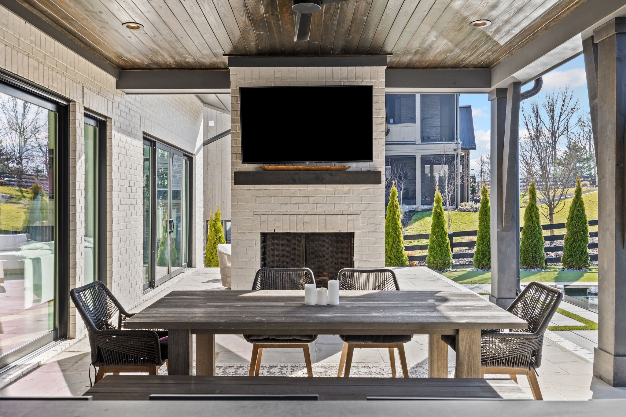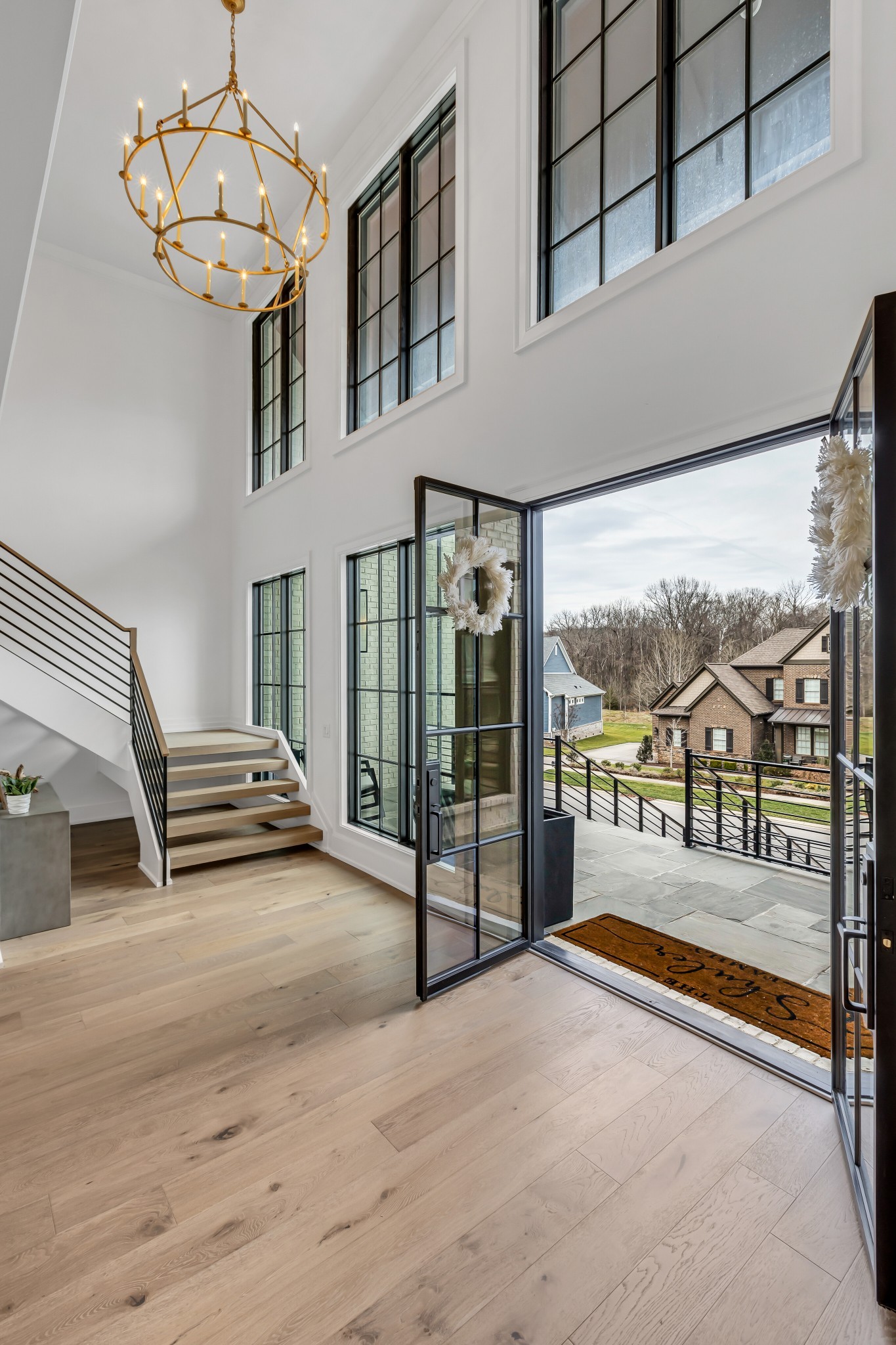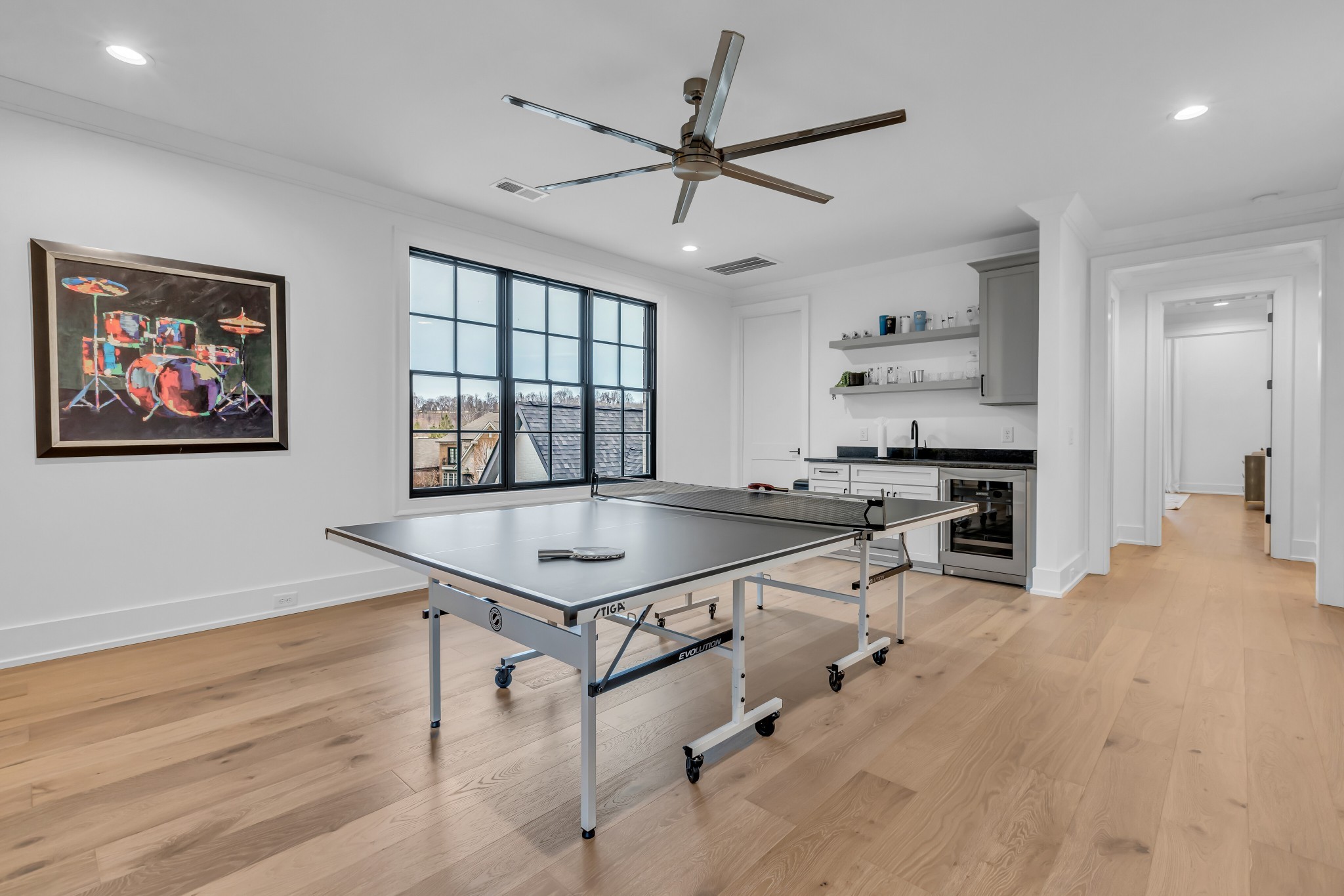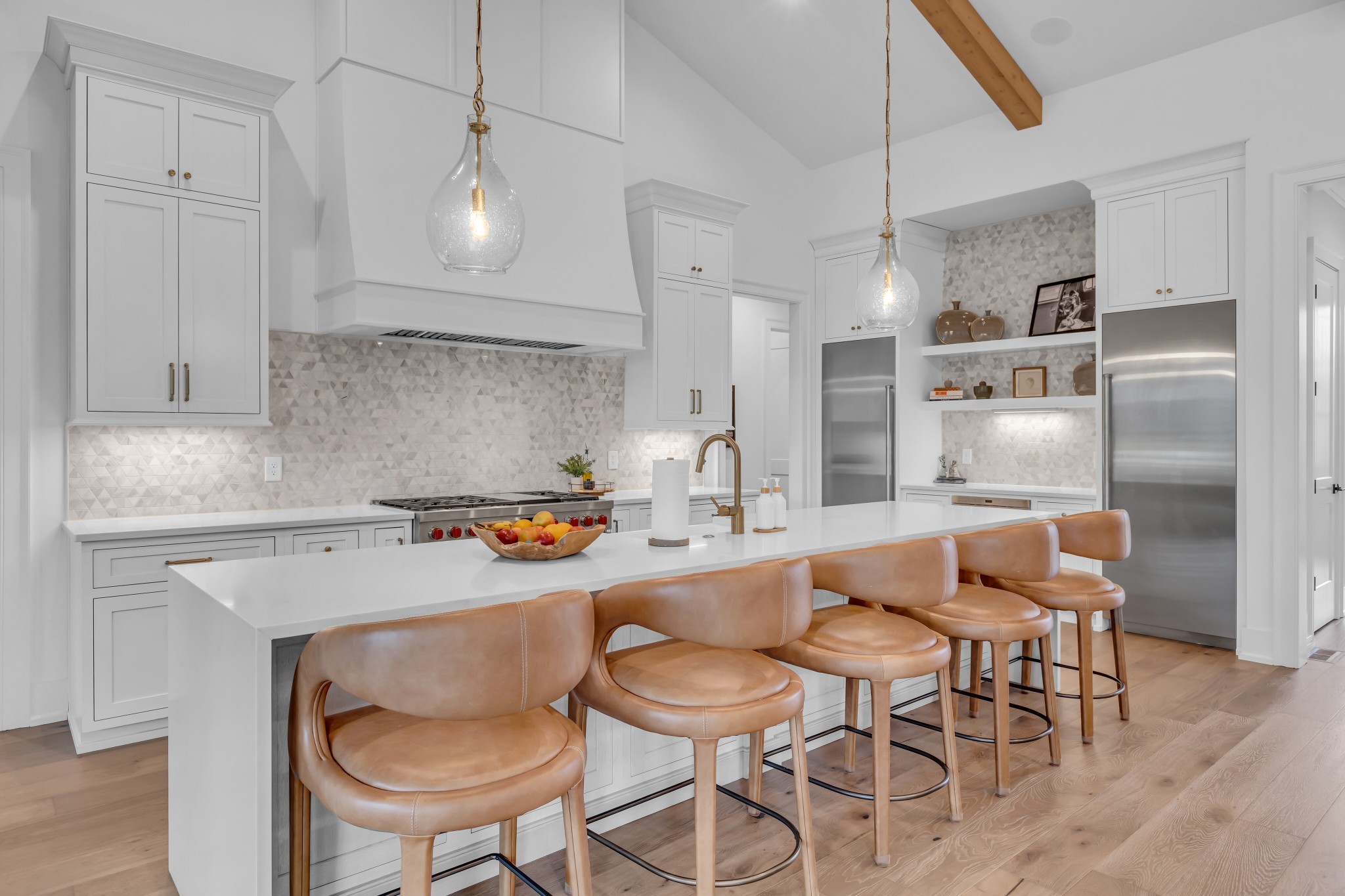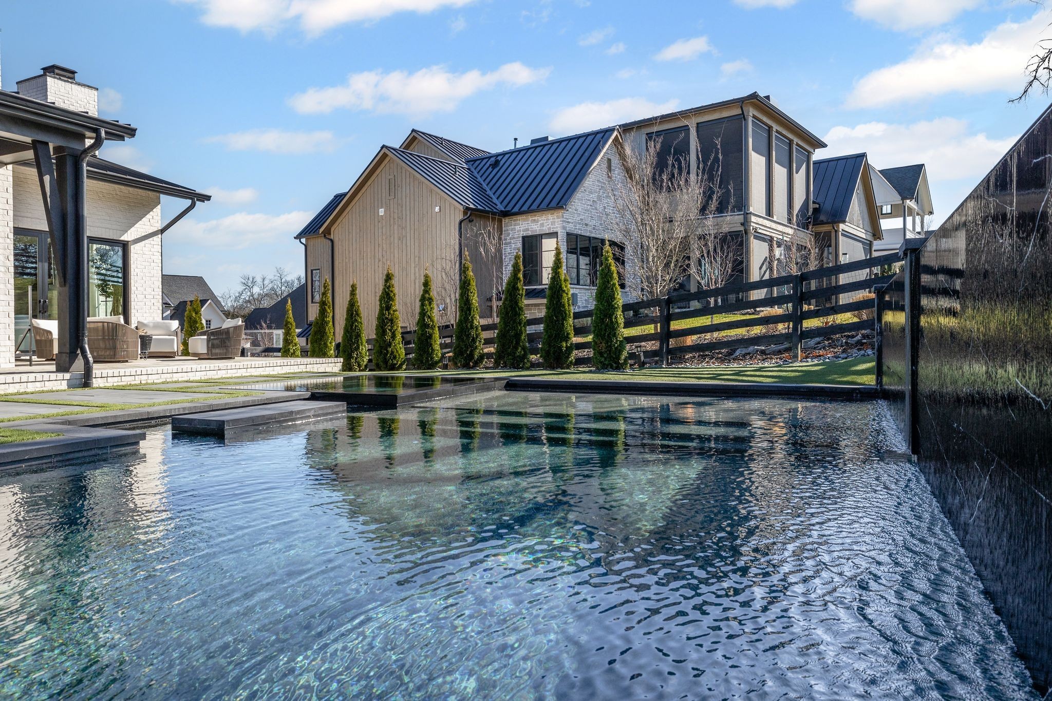 Welcome to this stunning custom-built residence in the prestigious Troubadour Golf & Field Club, crafted by Tennessee Valley Homes in 2022. Spanning 5,929 square feet on a 0.45-acre lot, this architectural masterpiece combines modern elegance with timeless design, offering an unparalleled lifestyle in one of Middle Tennessee’s most sought-after communities. This home features five spacious bedrooms, five full bathrooms, and two half baths, providing ample space for family and guests. Step inside to discover an open-concept floor plan flooded with natural light and adorned with wide-plank hardwood floors. The soaring ceilings and exposed beams create a sense of grandeur, while sleek, modern finishes provide a warm and inviting atmosphere. The gourmet kitchen boasts top-of-the-line appliances, a large island, and seamless flow into the dining and living areas—perfect for entertaining. A dedicated office space with custom millwork and large windows offers serene views and an ideal work-from-home environment. The luxurious primary suite serves as a private retreat, featuring a spa-like bathroom and generous closet space.