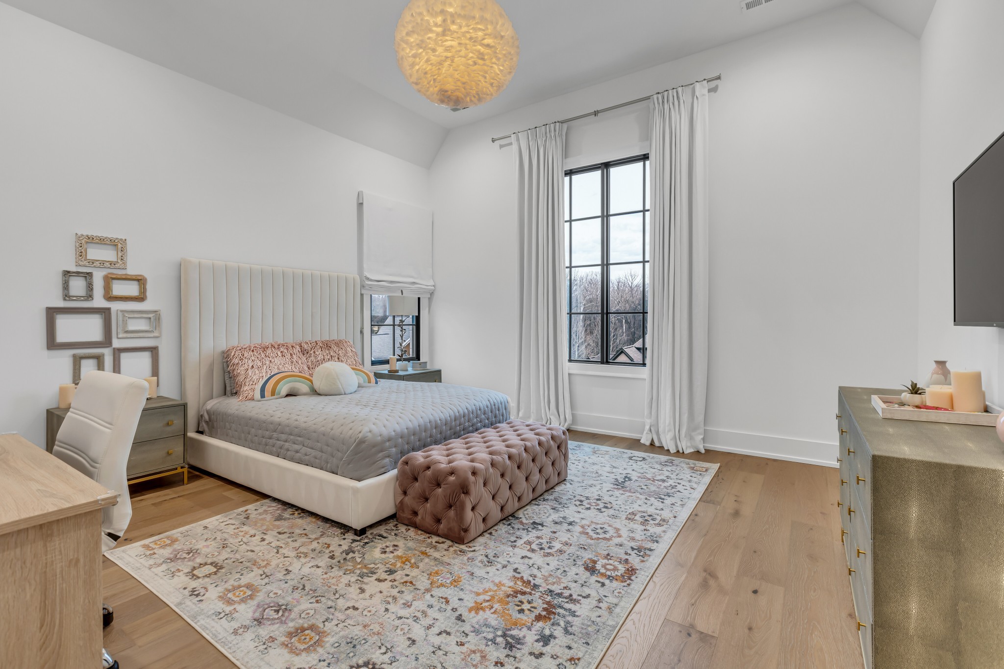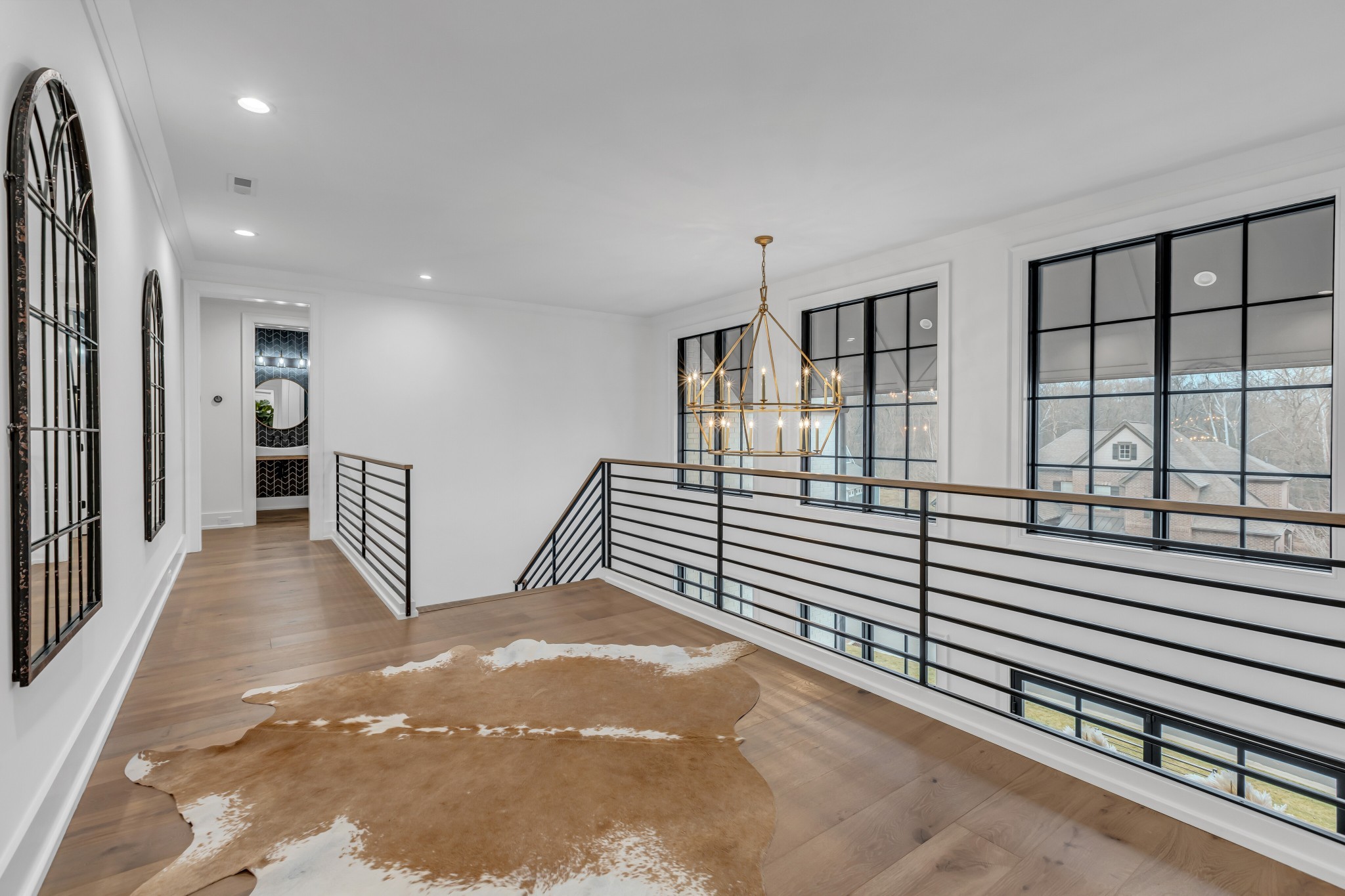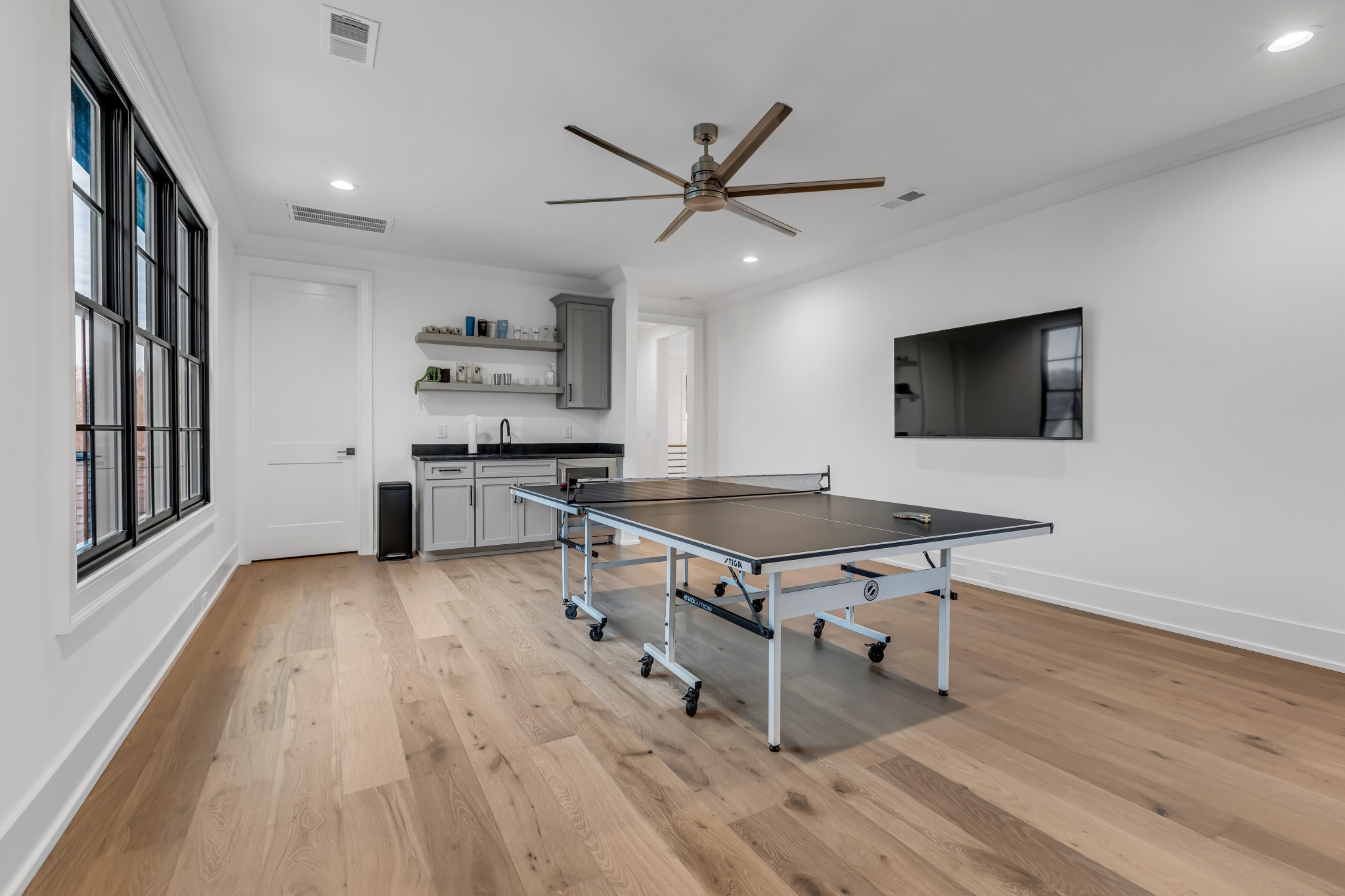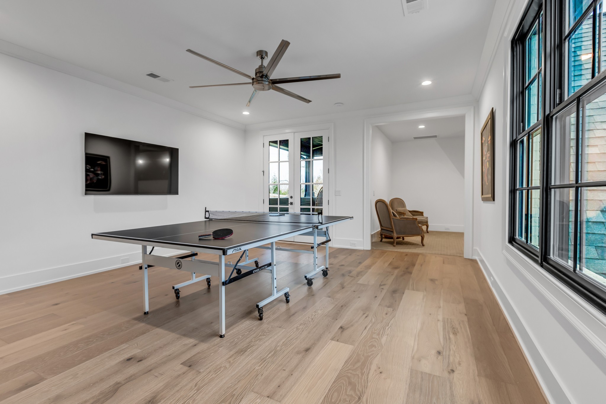 Welcome to this stunning custom-built residence in the prestigious Troubadour Golf & Field Club, crafted by Tennessee Valley Homes in 2022. Spanning 5,929 square feet on a 0.45-acre lot, this architectural masterpiece combines modern elegance with timeless design, offering an unparalleled lifestyle in one of Middle Tennessee’s most sought-after communities. This home features five spacious bedrooms, five full bathrooms, and two half baths, providing ample space for family and guests. Step inside to discover an open-concept floor plan flooded with natural light and adorned with wide-plank hardwood floors. The soaring ceilings and exposed beams create a sense of grandeur, while sleek, modern finishes provide a warm and inviting atmosphere. The gourmet kitchen boasts top-of-the-line appliances, a large island, and seamless flow into the dining and living areas—perfect for entertaining. A dedicated office space with custom millwork and large windows offers serene views and an ideal work-from-home environment. The luxurious primary suite serves as a private retreat, featuring a spa-like bathroom and generous closet space.