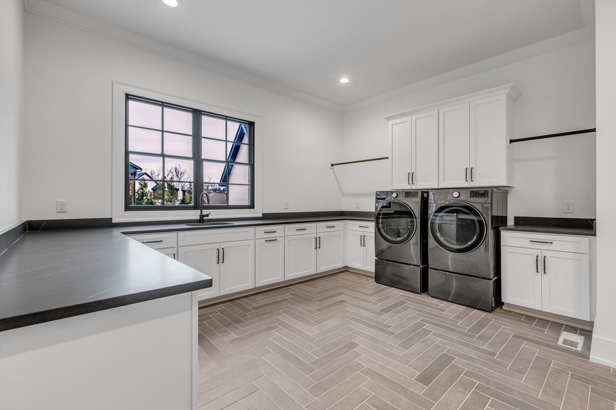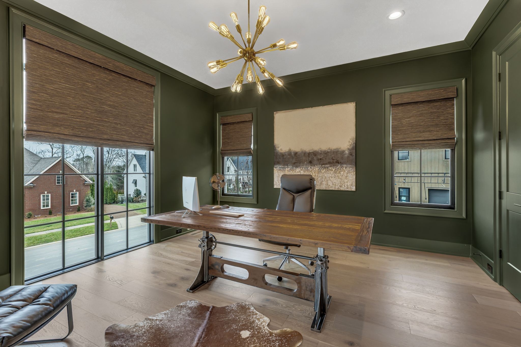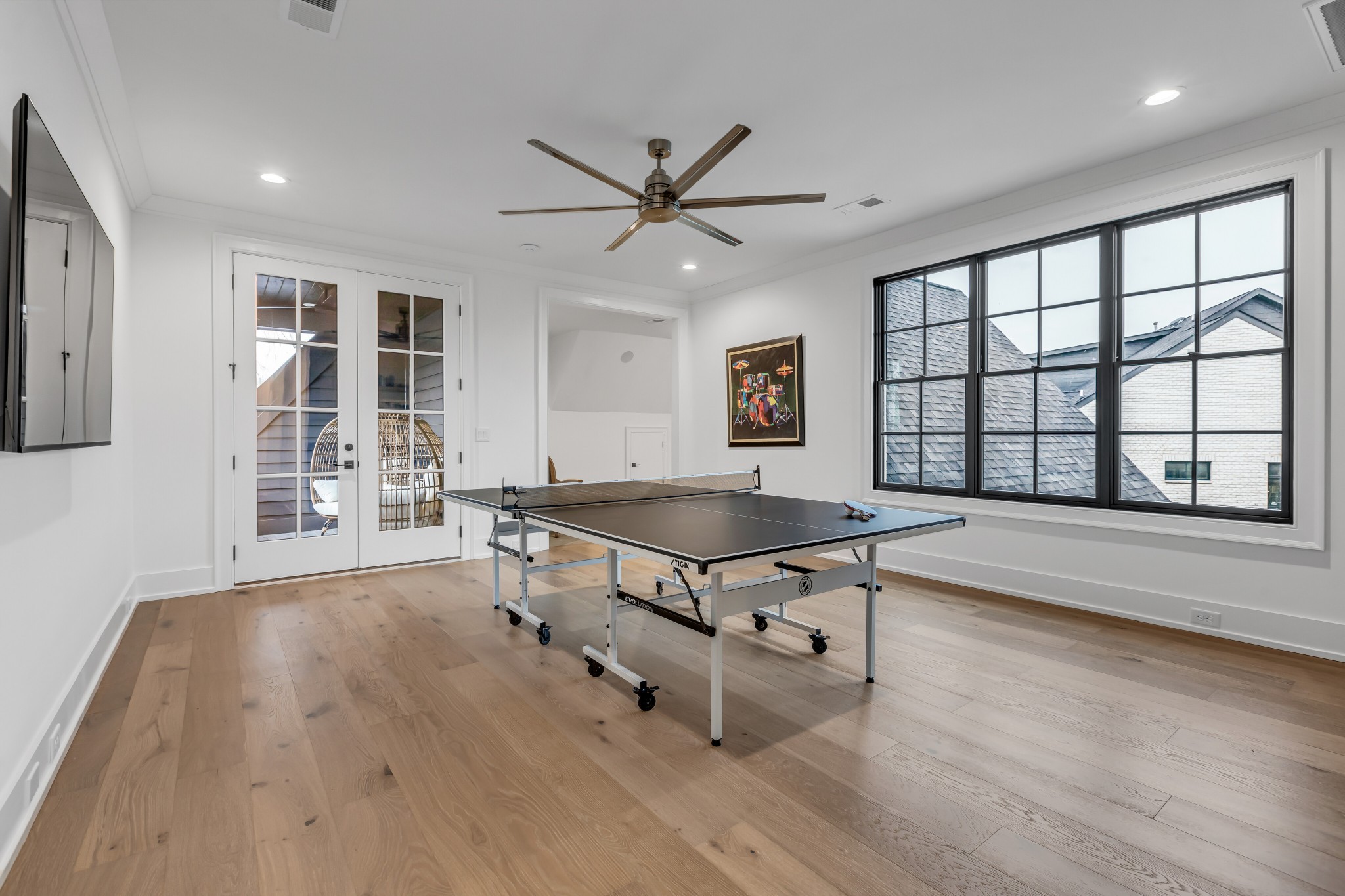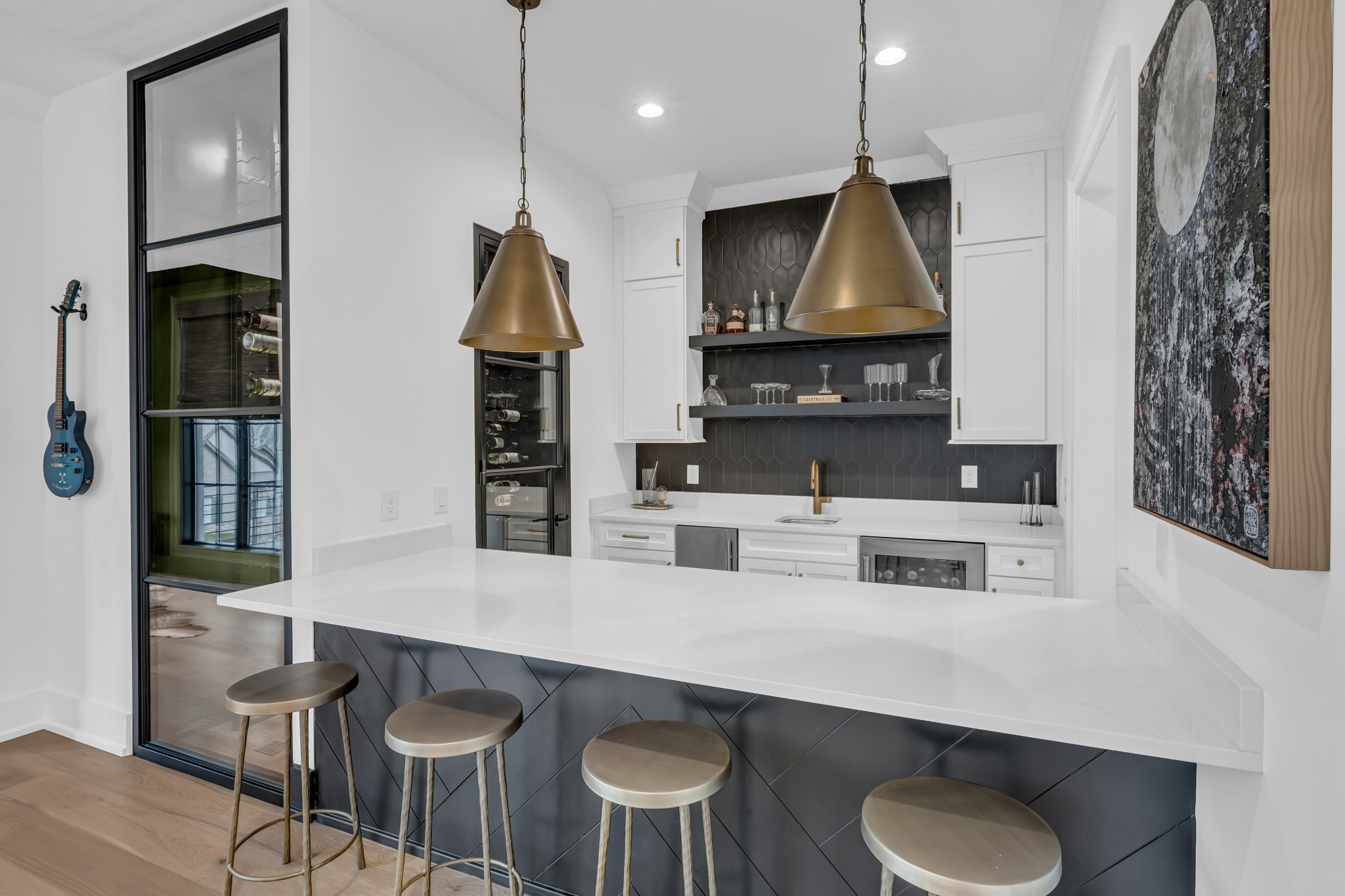Welcome to this stunning custom-built residence in the prestigious Troubadour Golf & Field Club, crafted by Tennessee Valley Homes in 2022. Spanning 5,929 square feet on a 0.45-acre lot, this architectural masterpiece combines modern elegance with timeless design, offering an unparalleled lifestyle in one of Middle Tennessee’s most sought-after communities. This home features five spacious bedrooms, five full bathrooms, and two half baths, providing ample space for family and guests. Step inside to discover an open-concept floor plan flooded with natural light and adorned with wide-plank hardwood floors. The soaring ceilings and exposed beams create a sense of grandeur, while sleek, modern finishes provide a warm and inviting atmosphere. The gourmet kitchen boasts top-of-the-line appliances, a large island, and seamless flow into the dining and living areas—perfect for entertaining. A dedicated office space with custom millwork and large windows offers serene views and an ideal work-from-home environment. The luxurious primary suite serves as a private retreat, featuring a spa-like bathroom and generous closet space.