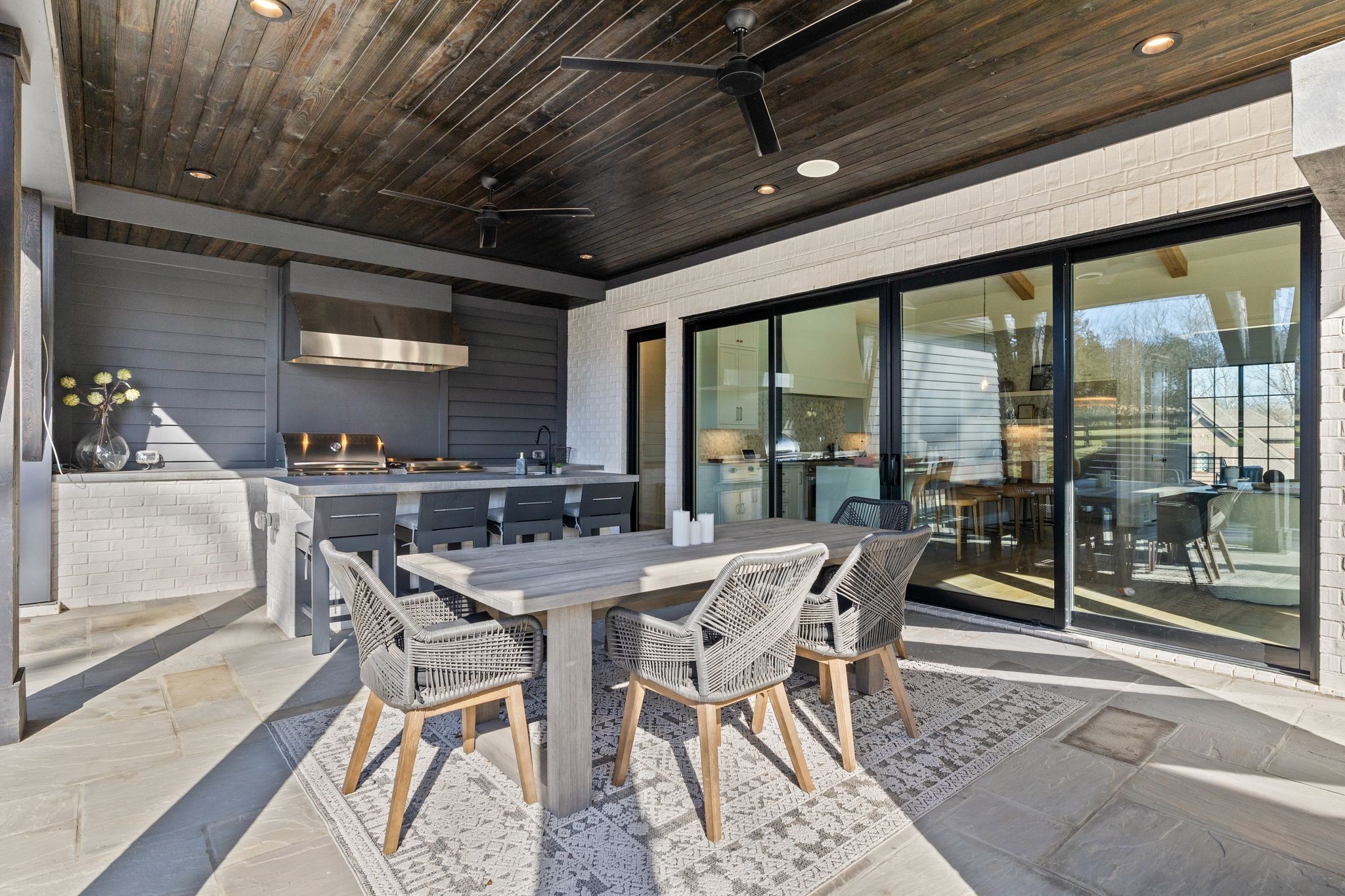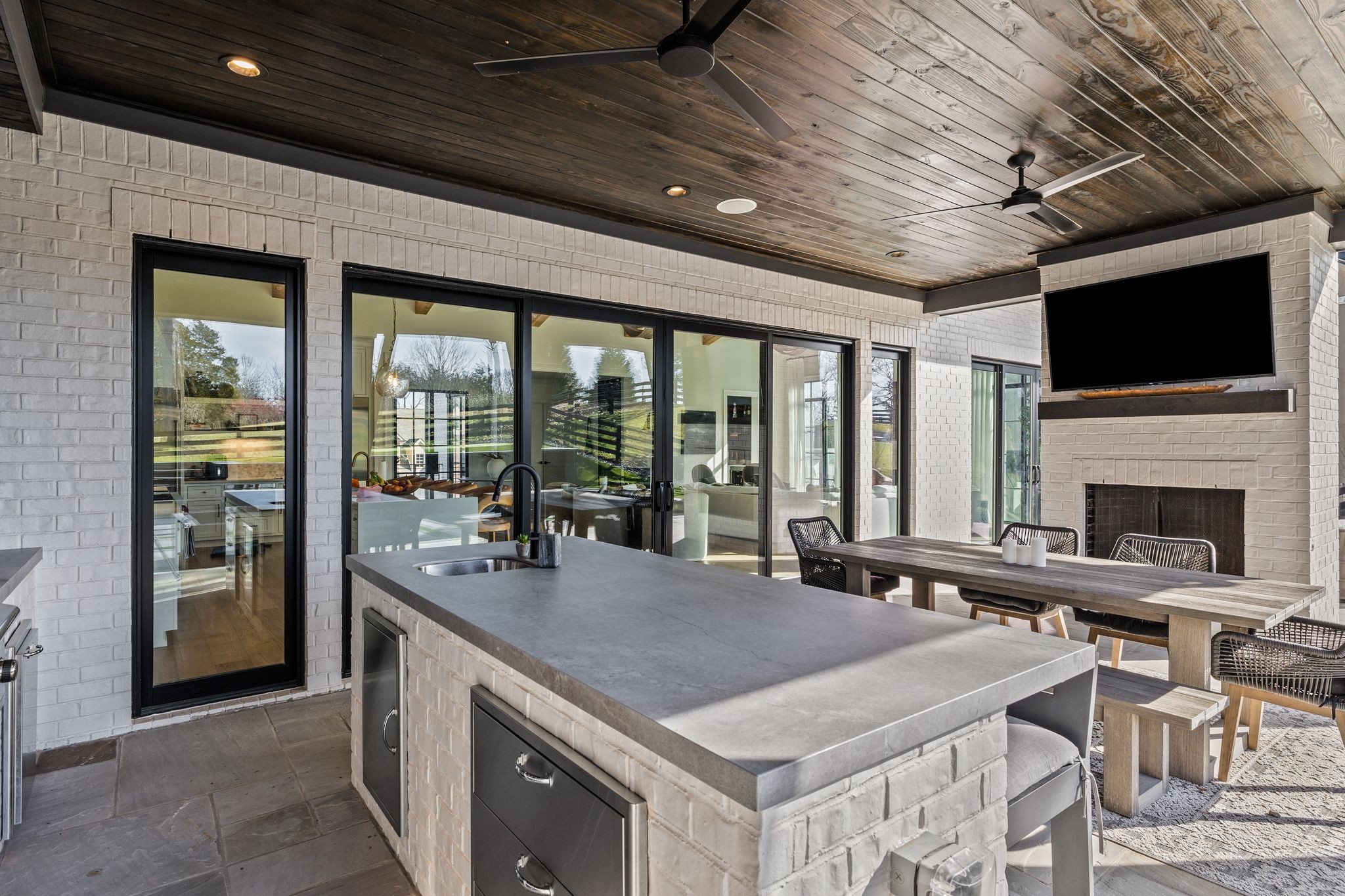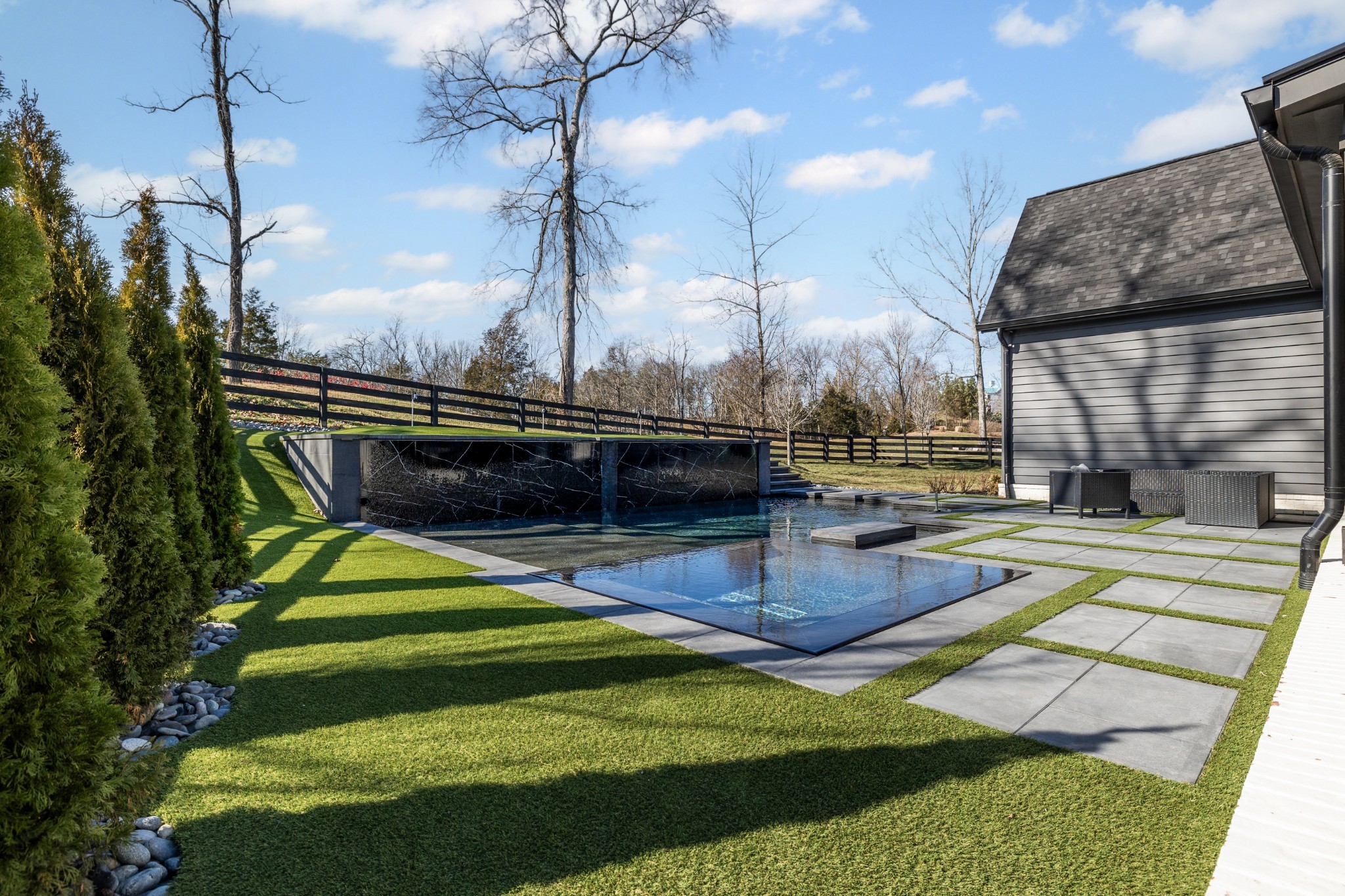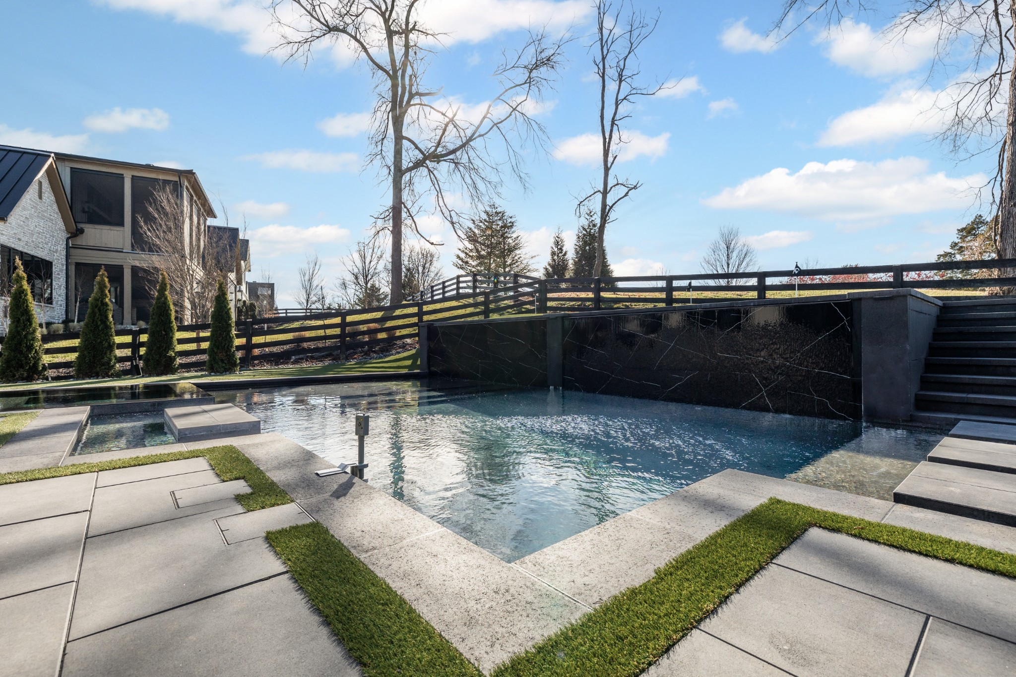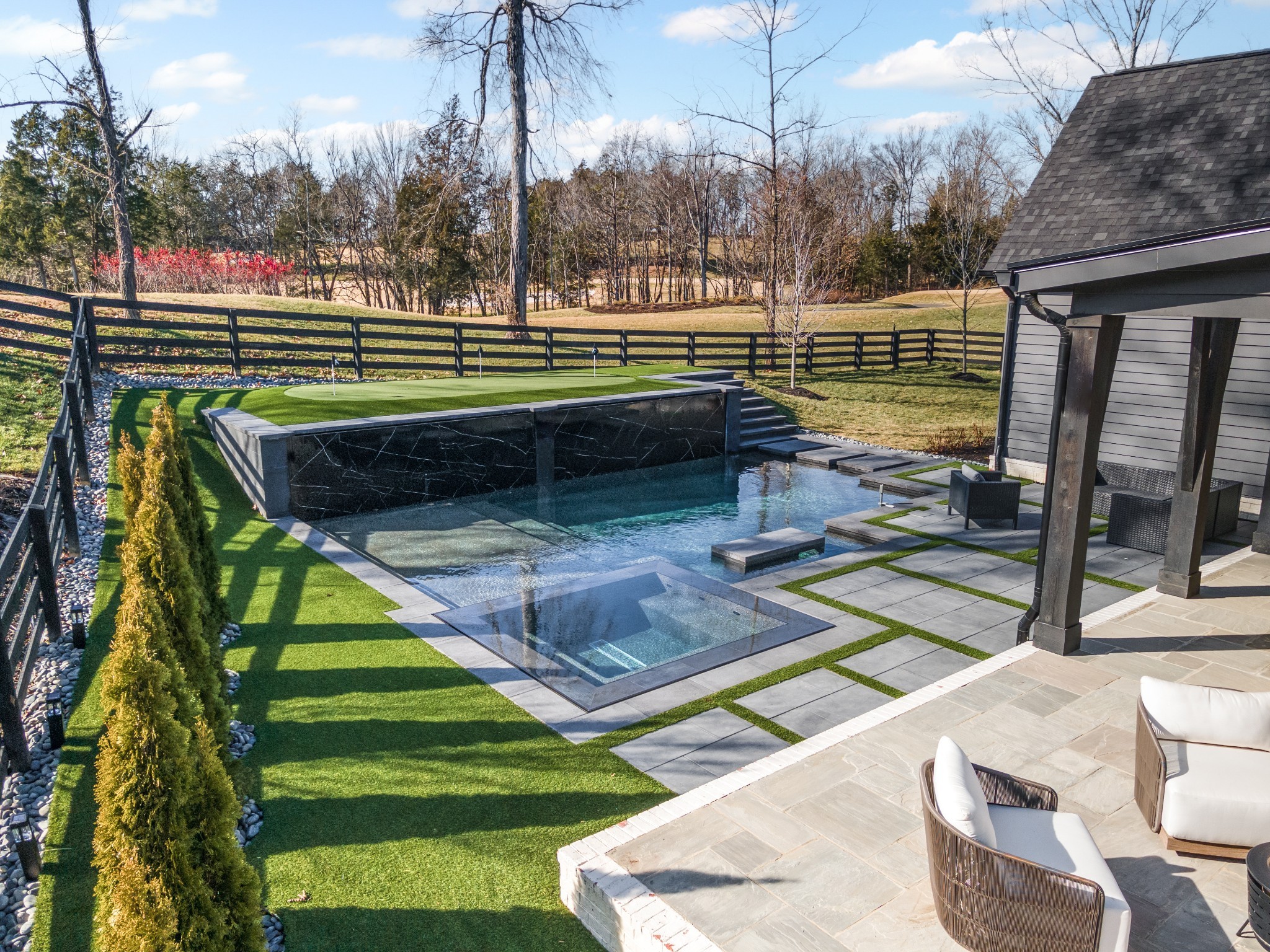 For the ultimate in leisure and entertainment, enjoy the indoor bar room with a glass-enclosed wine cellar, a state-of-the-art golf simulator, and multiple lounge areas designed for relaxation and social gatherings. The expansive outdoor entertaining area is a true showstopper, featuring a fully equipped kitchen, a cozy fireplace, and ample seating for guests. The highlight is the resort-style pool and hot tub, surrounded by sleek stonework and lush landscaping, offering breathtaking views of Troubadour’s Tom Fazio-designed championship golf course. Additional features include striking curb appeal with modern architectural design, large glass doors that seamlessly connect indoor and outdoor spaces, designer lighting fixtures, custom finishes throughout, and a three-car garage with ample storage. This home is more than a residence—it’s a lifestyle.