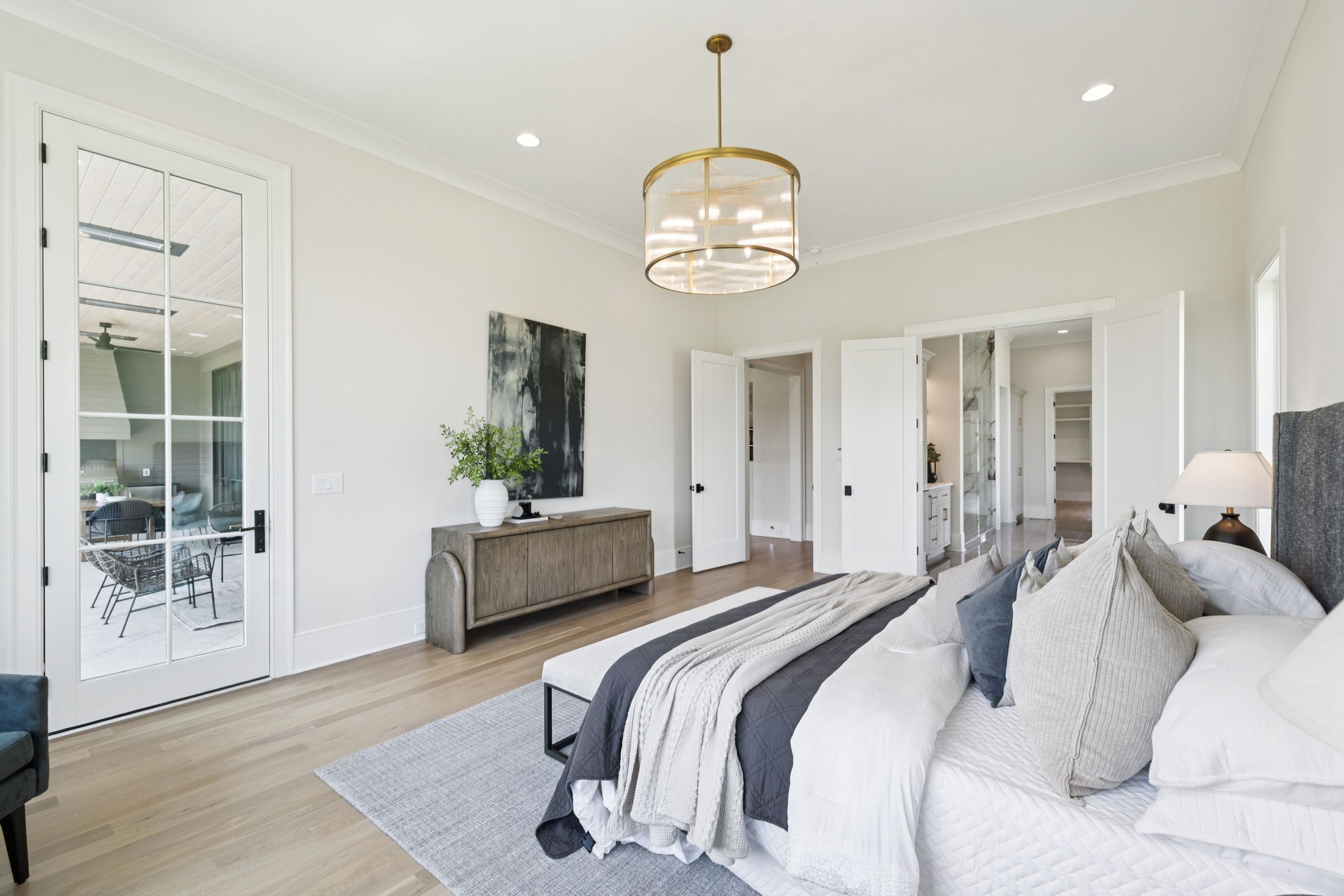 Grove Golf Membership fee included with full price offer! Come see the latest custom home by Davis Properties at The Grove! Beautiful finished Modern Territorial exterior blends with exceptional interior selections by Julie Davis! Entry with serving bar welcomes you home to an oversized Great Room and Kitchen with Scullery! Wolf commercial range and oven(s)! Entertain in style with tons of room around the oversized Quartz island, plus an outdoor terrace with heaters and auto screens! Huge Primary suite with 2-Season closet! Guest suite on the main level! Three additional bedroom suites up (one with Vaulted ceiling!) plus a Game Room and Home Gym! Make plans to see this one before it’s gone!