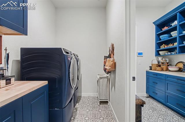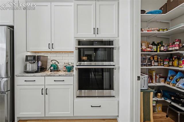 Welcome to this exquisite 2021-built ranch-style luxury home in the prestigious Flying Horse Resort Community. This beautiful home offers generous living space on a beautifully landscaped 0.29-acre lot with exceptional craftsmanship. Enter into a bright, open interior defined by soaring 9-foot-plus beamed ceilings. The heart of the home is the gourmet kitchen featuring granite countertops, a large island, double oven, pantry, and high-end appliances. It flows seamlessly into the spacious great room with a gas log fireplace, custom knotty alder wall unit and raised hearth, hickory wood floors, direct walk-out access to the outdoors and surround sound music system. The formal dining room is perfect for memorable gatherings. The nearby "relaxing room" features a custom dry bar and a 130 bottle Dacor wine column, perfect for reading or watching TV away from the main living space. The primary suite with a spa-like bath and an extra-large walk-in closet. A second main-level bedroom with adjoining bath, custom butler pantry, dedicated laundry room, and a powder bath complete this level. Downstairs, the basement expands your options dramatically. The massive family room features another gas fireplace, and a wet bar with custom cabinetry plus a private office. Two additional bedrooms, generous storage space, and a 3/4 bath provide flexibility for guests. Outside, unwind on the covered concrete patio overlooking the fully landscaped, tiered yard with fire pit, water feature privacy landscaping and raised beds. Living in Flying Horse elevates everyday life into a true resort experience. This master-planned community features two championship golf courses, a luxurious clubhouse, an award-winning steakhouse, a European-style Athletic Club & Spa with fitness center, indoor/outdoor pools, tennis and pickleball courts, hiking and biking trails, parks, and playgrounds. Conveniently located near major roadways, yet tucked away in a peaceful, covenant-protected setting.