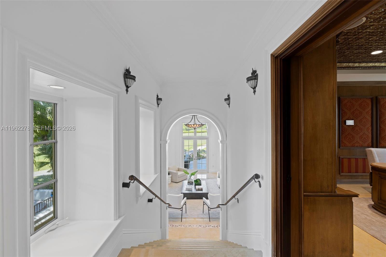 Nestled within the exclusive Estates at Deering Bay, this custom-built residence offers timeless elegance, exceptional craftsmanship, & resort style living within one of Coral Gables' most prestigious gated communities. Custom home finishes reflect exceptional quality: solid core wood doors, custom millwork, tray ceilings, double crown moldings, wrought-iron spiral staircase, & a seamless blend of marble & hardwood flooring throughout. The thoughtfully designed floorplan features 5 bedrooms, 6 full bathrooms, & 3 half bathrooms, complemented by multiple flex spaces, including private dens, office, & flexible rooms ideal for today’s lifestyle. The chef’s kitchen is equipped with paneled Viking refrigeration, Viking gas range with double oven, copper farmhouse sinks, honed travertine countertops, & a secondary island with mini fridge. Outdoors, enjoy a gated backyard with mature fruit trees, summer kitchen, outdoor dining, & private golf course views. Additional highlights include a full-house generator, elevator, built-in speakers, mosquito misting system, & 26 camera security system. Residents enjoy Deering Bay’s world-class amenities across 220 acres, including Arnold Palmer golf, marinas, tennis, pickleball, fitness center, clubhouse dining, & 24-hour gated security. Two associations govern the property with landscaping included.