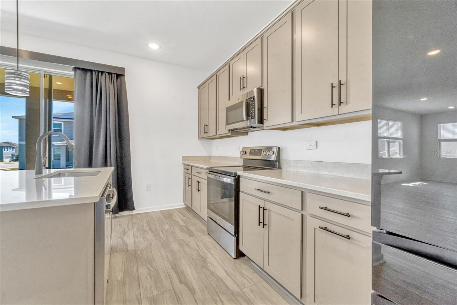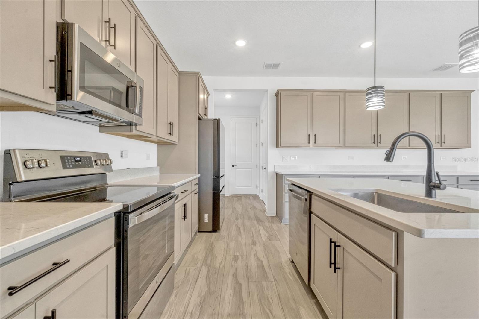 This spacious 5-bedroom, 3.5-bath home with a private in-law suite offers the perfect blend of modern design and flexible living—ideal for multi-generational families, guests, or even additional income potential. The thoughtfully designed two-story layout features a fully fenced yard, durable luxury vinyl plank flooring, and a chef-inspired kitchen with quartz countertops, stainless steel appliances, and a large center island. Upstairs, a versatile loft provides the perfect space for a second living area, office, or media room.