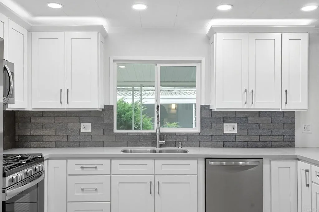 Beautifully Renovated 2-Bedroom Home in Sundance Mobile Home Park! Welcome to this fully remodeled double-wide, thoughtfully designed to combine comfort and style. When you walk through the door, the open-concept living area immediately feels welcoming, with space that flows naturally for both relaxing and gathering. The kitchen sits at the heart of the home, with quartz countertops, matching new appliances, and generous cabinet spaceready for weeknight dinners, weekend baking, or sharing a meal with friends. Off the kitchen, the family room offers a built-in media desk and flows seamlessly to the covered patio, creating the ideal space for indoor-outdoor living. Both bathrooms have been beautifully upgraded with custom tiled showers, quartz vanities, and a relaxing soaking tub. The spacious primary suite provides a true retreat with luxury finishes at every turn. Additional highlights include complete re-piped plumbing, waterproof flooring, new windows, covered parking for two cars, and a large storage shed. This home is fully turn-key and low-maintenance! Set in the highly desirable Sundance Mobile Home Park, a welcoming 55+ community with resort-style amenities: clubhouse with kitchen, heated pool, jacuzzi, fitness center, saunas, library, billiards, shuffleboard, and lush greenbelts. Conveniently located minutes from shopping, dining, and entertainment. Dont miss your chance to own this beautifully updated home in one of North Countys premier retirement communities. Schedule your private showing today!