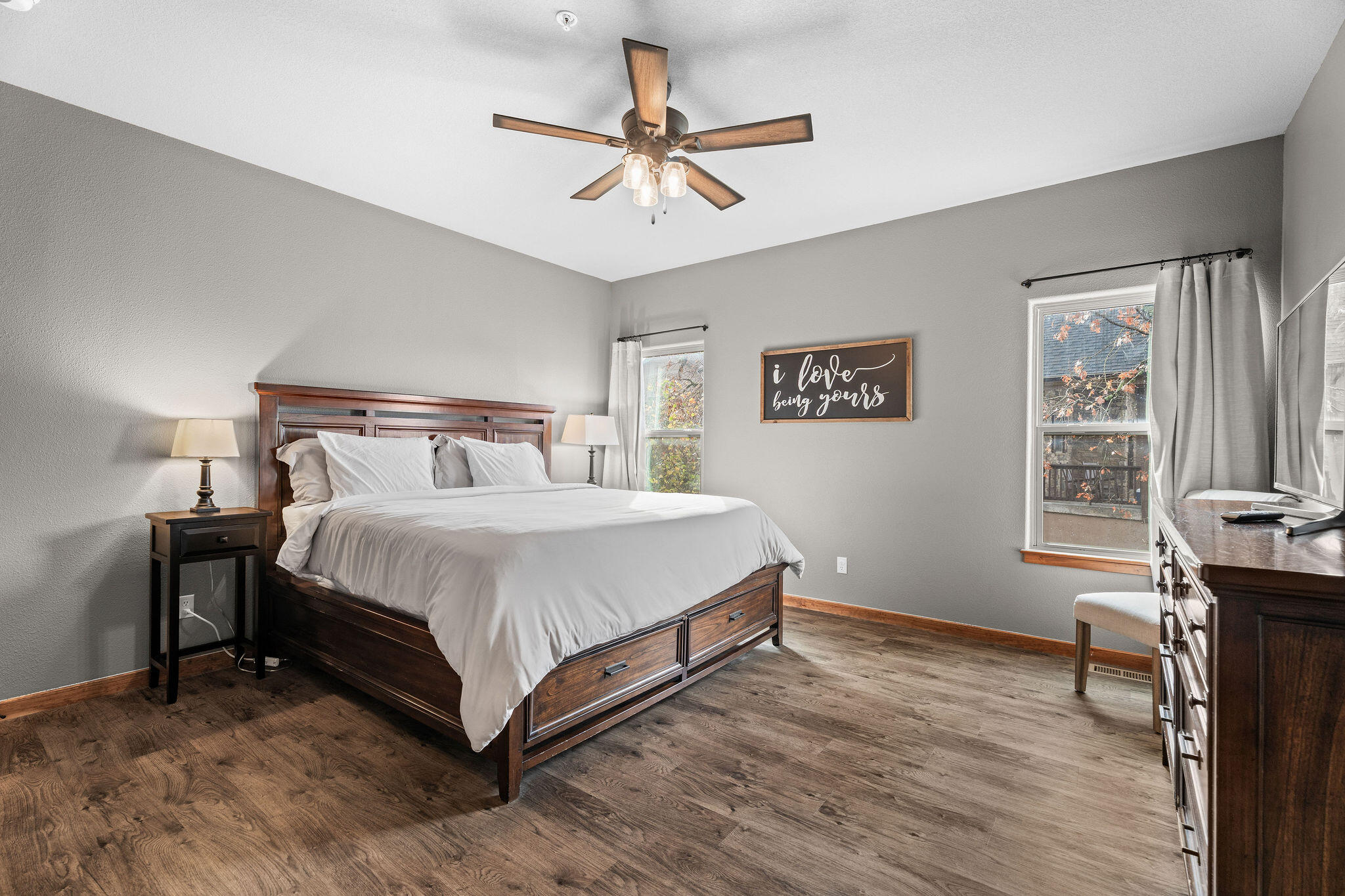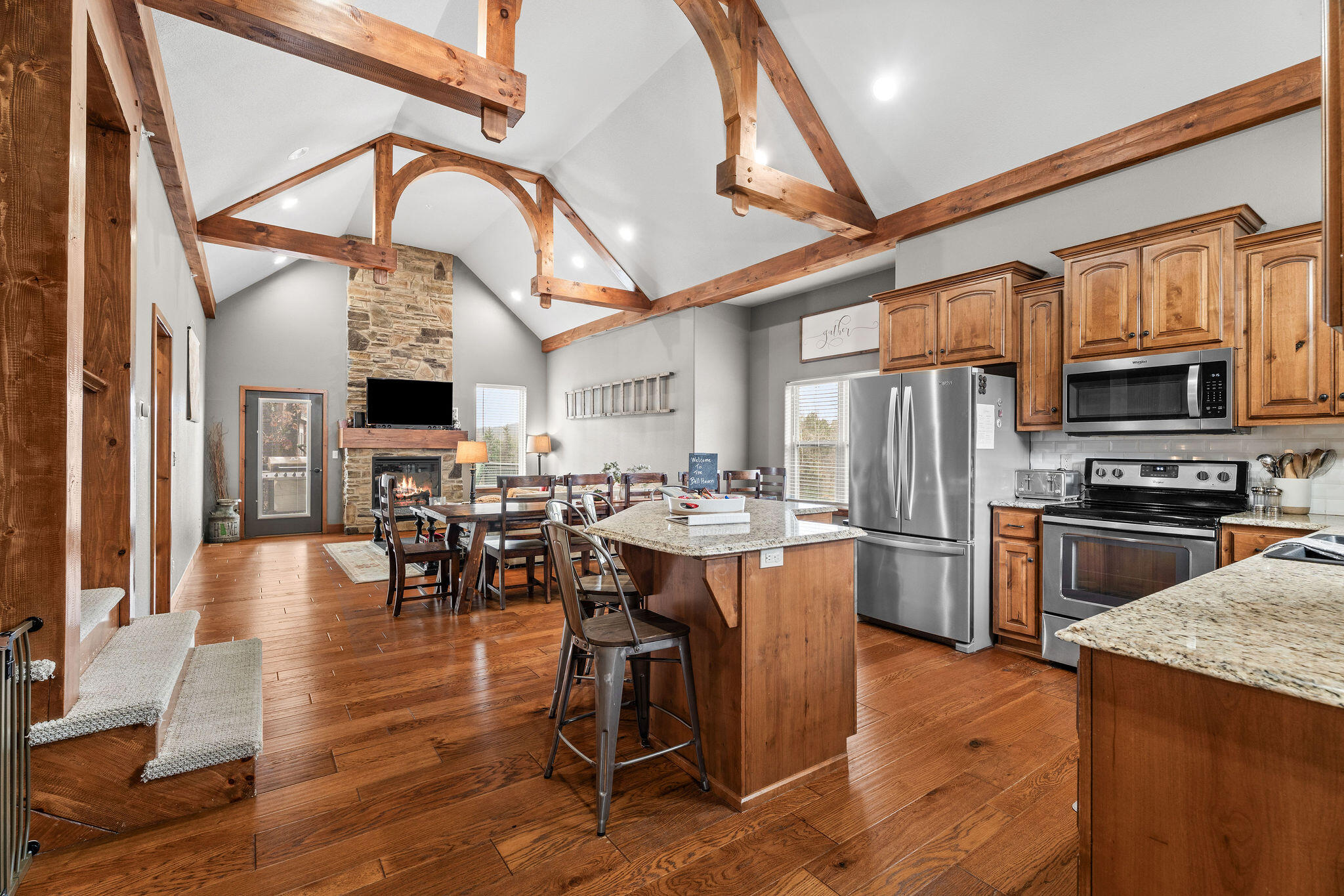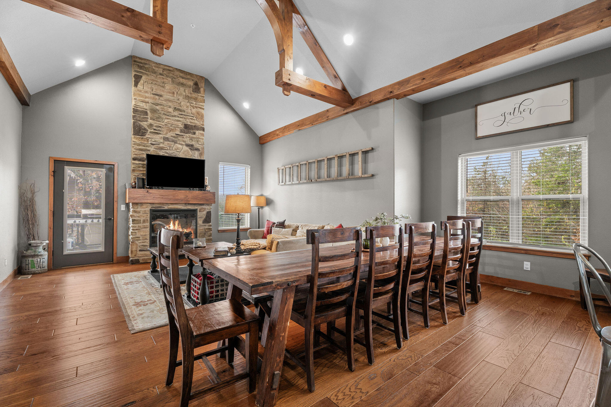 Located in the highly sought-after Branson Canyon, a long-established vacation community with nearly two decades of proven success, this property offers an exceptional opportunity for anyone seeking a beautifully maintained, fully turn-key home in one of the region's most popular destinations.Featuring luxury furnishings, designer decor, and a custom-built bunk room with games, the home is sold completely turn-key, allowing the new owner to step into a fully prepared and thoughtfully curated property. Future bookings are already secured, providing immediate momentum for continued success.Offering 3,300 sq. ft. of beautifully appointed living space, BellHaven at Branson Canyon includes 7 bedrooms and 6.5 bathrooms, comfortably accommodating up to 22 guests. The home features two expansive living rooms, dual heating and cooling systems, nine smart TVs, and an elevated back deck ideal for grilling. High-quality furnishings throughout create a warm, inviting atmosphere with all the comforts of home.As part of the master-planned Branson Canyon community, residents and guests enjoy access to a zero-entry pool with views of Table Rock Lake, a scenic neighborhood hiking trail, and a well-equipped clubhouse offering a pool table, poker table, games, and a fitness room. Additional amenities include a playground and a basketball court, ensuring a well-rounded and enjoyable experience for groups of all ages.Perfectly balancing amenities and location, Bell Haven is ideally suited for family reunions, group getaways, corporate retreats, and anyone seeking comfort, space, and convenience. The home is only a quarter mile to the public boat launch, just minutes from Table Rock Lake, Silver Dollar City, State Park Marina, premier golf courses, Bass Pro Shops, and the iconic 76 Strip, making it an exceptional offering in one of Branson's most desirable communities.