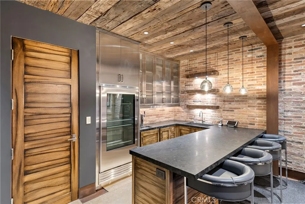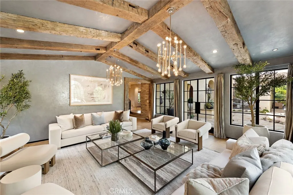Ideally situated on a premium view lot in the exclusive guard gated community of Shady Canyon, 31 Blue Heron offers views of the rolling hills and dramatic sunsets while offering exceptional design elements that will truly impress design aficionados and the most discerning buyers alike. This stunning custom estate is adorned with steel and glass doors & windows, hand-crafted reclaimed beams, artisan brick walls, Obeche wood cabinetry and paneling, and a mixture of exquisite limestone and wide-plank oak floors just to name a few design elements. The master crafted estate boasts 6 bedrooms, office, + 9 baths offering an elegantly appointed Main Floor Owners-Suite accompanied by a retreat + passthrough fireplace, spa like master bath showcasing artisan level Onyx slab stonework and bespoke millwork along with a "honeymooners grotto". The main floor also offers a designer kitchen with pro series appliances, wood and metal custom Obeche cabinetry, prep kitchen, and direct access to the atrium style breakfast nook and Great room creating a sense of openness and airiness where residents and guests can flow seamlessly between the indoor and outdoor spaces. In addition the main level offers a beautifully appointed formal living room, formal dining space w/ wine cellar and a main-floor secondary guest suite along with an office blooming with natural light and direct access to your private courtyard. Three additional bedroom suites & a loft are located on the upper level of this grand residence. The homes exceptional design continues down into the basement level featuring a oversized