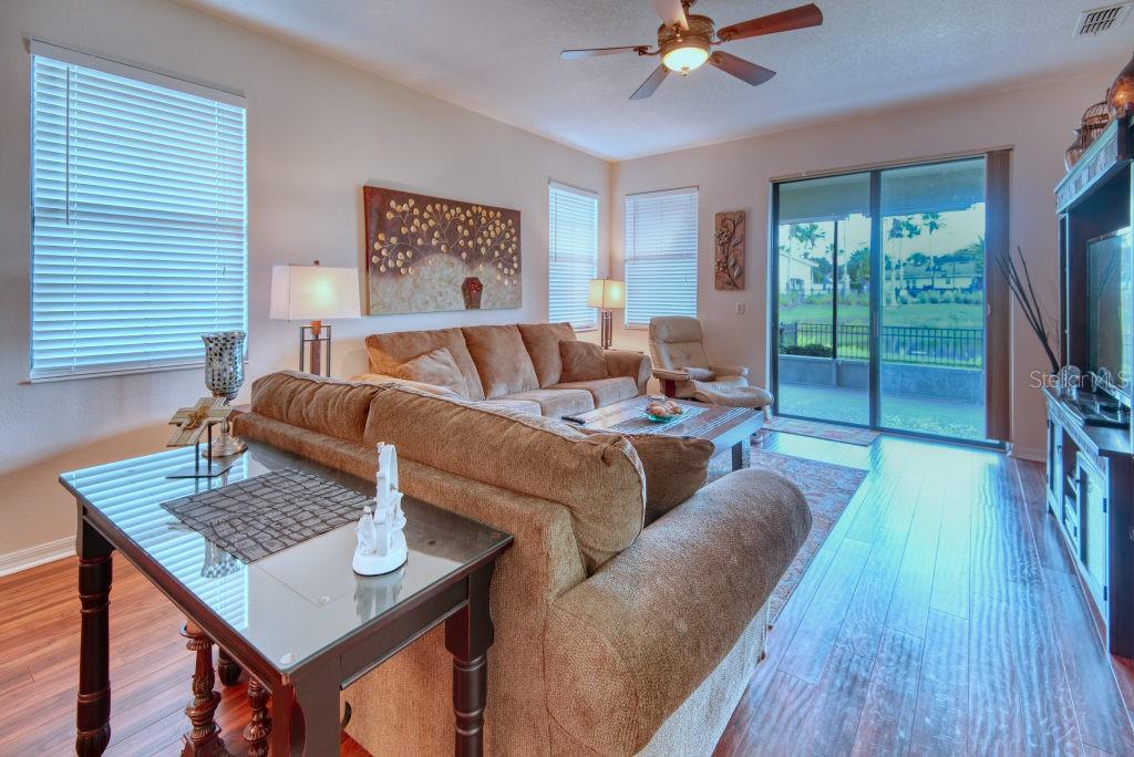 This Cabernet model is priced to sell and comes fully furnished, turnkey ready. Ideally situated on an oversized lot backing up to water and just steps away from the community pool and clubhouse, this home combines comfort and convenience. Offering 2 bedrooms and 2 baths, the home features a dining and living room with stylish vinyl plank flooring. The exterior boasts a stone façade and was freshly painted in 2021. The A/C system was replaced in 2019 and includes a UV filter for enhanced air quality. A rear fence provides additional privacy and functionality. With thoughtful upgrades throughout, this move-in ready home is a fantastic opportunity for buyers seeking value and low-maintenance living in a desirable location. Solivita is a gated and guard-monitored 55+ master-planned community situated on 4,300 acres and boasts 150,000 square feet of resort-style amenities such as golf, 2-18 hole Golf courses, 2 state-of-the-art fitness centers, and various dining options. Residents can also enjoy 14 heated pools, amenity complexes, neighborhood centers, pickleball, tennis, bocce, and shuffleboard courts, along with miles of walking and bike paths. Over 200 Clubs, with Art, Education and cultural classes for you to enjoy! Join the "Solivita Family" and make this home your home today! Just outside of Solivita is a state are Hospital and many doctors's offices. Also just outside of the gate is the new Poinciana Lakes shopping center with Outback, First Watch, Sprouts Market, Ross, Burlington, Bojangles, Sage Dental, TD bank, 5 below, Petco, Five Guys and many more.