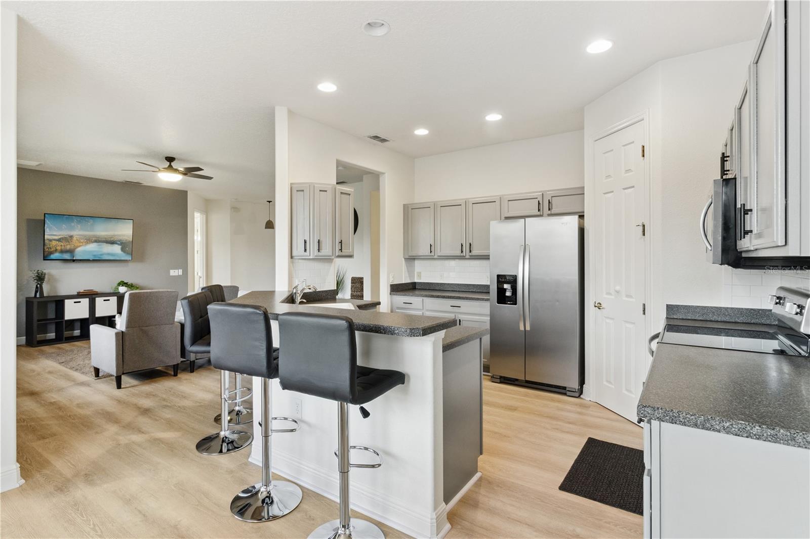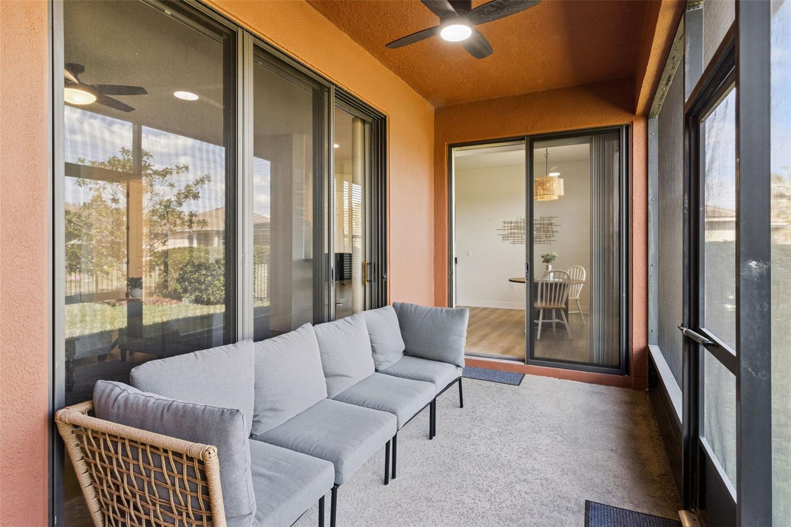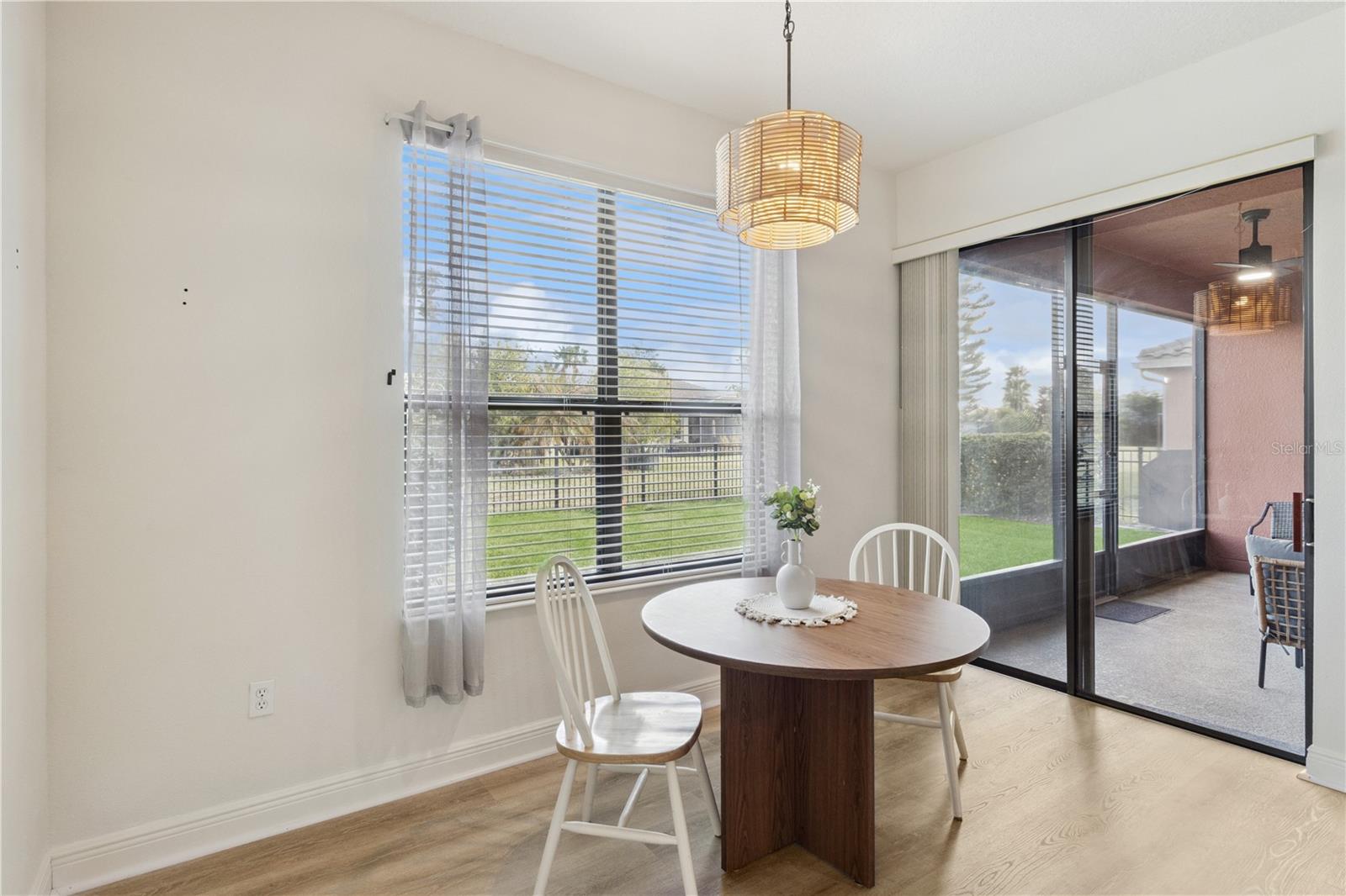 Welcome to the stunning, master-planned 55+ community of Solivita—where resort-style living meets the comfort of home. This impeccably maintained, furnished 2-bedroom, 2-bath residence with a versatile den offers 1,548 square feet of thoughtfully designed living space, perfect for both full-time residence or a seasonal retreat. From the moment you enter, you'll be greeted by the home’s warm ambiance and tasteful finishes, creating an atmosphere of casual elegance. The open-concept floor plan flows seamlessly, offering a harmonious blend of functionality and style. At the heart of the home is a spacious great room that effortlessly connects to the dining area and a well-appointed kitchen—ideal for both quiet evenings and lively gatherings. The kitchen features modern stainless steel appliances, abundant cabinetry, and a convenient breakfast bar, combining style and practicality for everyday living and entertaining. The private primary suite is a serene retreat tucked away from the main living areas. It offers a generous walk-in closet and a beautifully designed en-suite bath with a spacious step-in shower. A second bedroom is perfectly situated for guests, with easy access to a full bath. The flexible den provides endless possibilities—ideal as a reading nook, home office, or creative studio. Additional features include a full laundry room and an attached garage, enhancing everyday convenience. Step outside to enjoy your screened-in, covered porch—perfect for morning coffee, outdoor dining, or peaceful evenings. The beautifully landscaped and fenced backyard offers both privacy and charm, extending your living space outdoors. This low-maintenance home allows you to spend more time enjoying everything Solivita has to offer. Set within 4,300 acres of lush, landscaped grounds, Solivita is one of Central Florida’s premier gated communities for active adults. A 24-hour manned entrance offers controlled access for added privacy, while an expansive collection of amenities caters to every interest. Residents enjoy indoor and outdoor heated pools, state-of-the-art fitness centers, and walking and biking trails. Golf enthusiasts will love the award-winning Stonegate Golf Club, which features two championship 18-hole courses. Sports lovers can also take advantage of tennis courts, pickleball, bocce ball, shuffleboard, and softball fields. Beyond recreation, Solivita is a vibrant social hub, offering over 200 clubs and interest groups ranging from art and photography to gardening and dance. On-site restaurants, a neighborhood marketplace, and regular farmers markets keep daily conveniences within easy reach, while concerts, seasonal festivals, and community events foster lasting friendships and connections. Ideally located just a short drive from Orlando’s world-class attractions, dining, and medical facilities, this home offers a rare blend of comfort, charm, and resort-style living—all within the gates of Solivita. This is more than just a home. It’s a lifestyle.