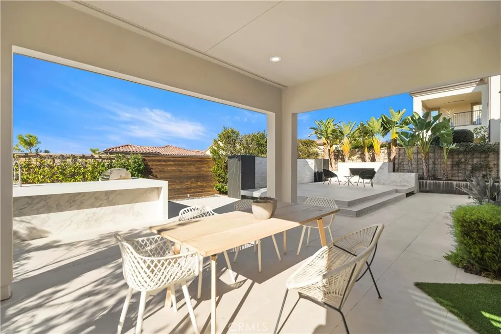 Luxury Corner Unit Home in Baker Ranch | Over $500K Upgrades Nestled in the peaceful Baker Ranch community, this corner lot single-family homecrafted by Toll Brothersboasts sweeping panoramic city, mountain views and front/back view balconies, with no rear neighbors for unrivaled privacy and tranquility. As one of the communitys largest properties, it sits on a spacious lot, blending modern luxury with seamless indoor-outdoor living. The residence features a bright open-concept floor plan with over $250k in builder upgrades and modern finishes throughout. The gourmet kitchen is a chefs dream, equipped with premium stainless steel appliances, custom cabinetry, a generous center island, a spacious walk-in pantry, and an additional prep kitchen, ideal for daily use and sophisticated entertaining. The expansive layout includes 5 bedrooms and 4.5 bathrooms, with the lavish primary suite serving as a private sanctuary: it offers a spa-inspired ensuite bathroom, a sprawling walk-in closet, and a large balcony with breathtaking views perfect for morning coffee or evening relaxation. Step outside to a resort-style backyard designed for leisure and gatherings, featuring a marble fountain wall, built-in BBQ with quartz tile, a covered patio with a built-in fireplace, and professionally landscaped front and back yards brimming with lush greenery, flowers, and a quaint seating area. Sliding glass doors from the kitchen and living room effortlessly connect indoor spaces to this serene outdoor retreat. Residents enjoy access to Baker Ranchs award-winning amenitiesincluding 3 swimming pool