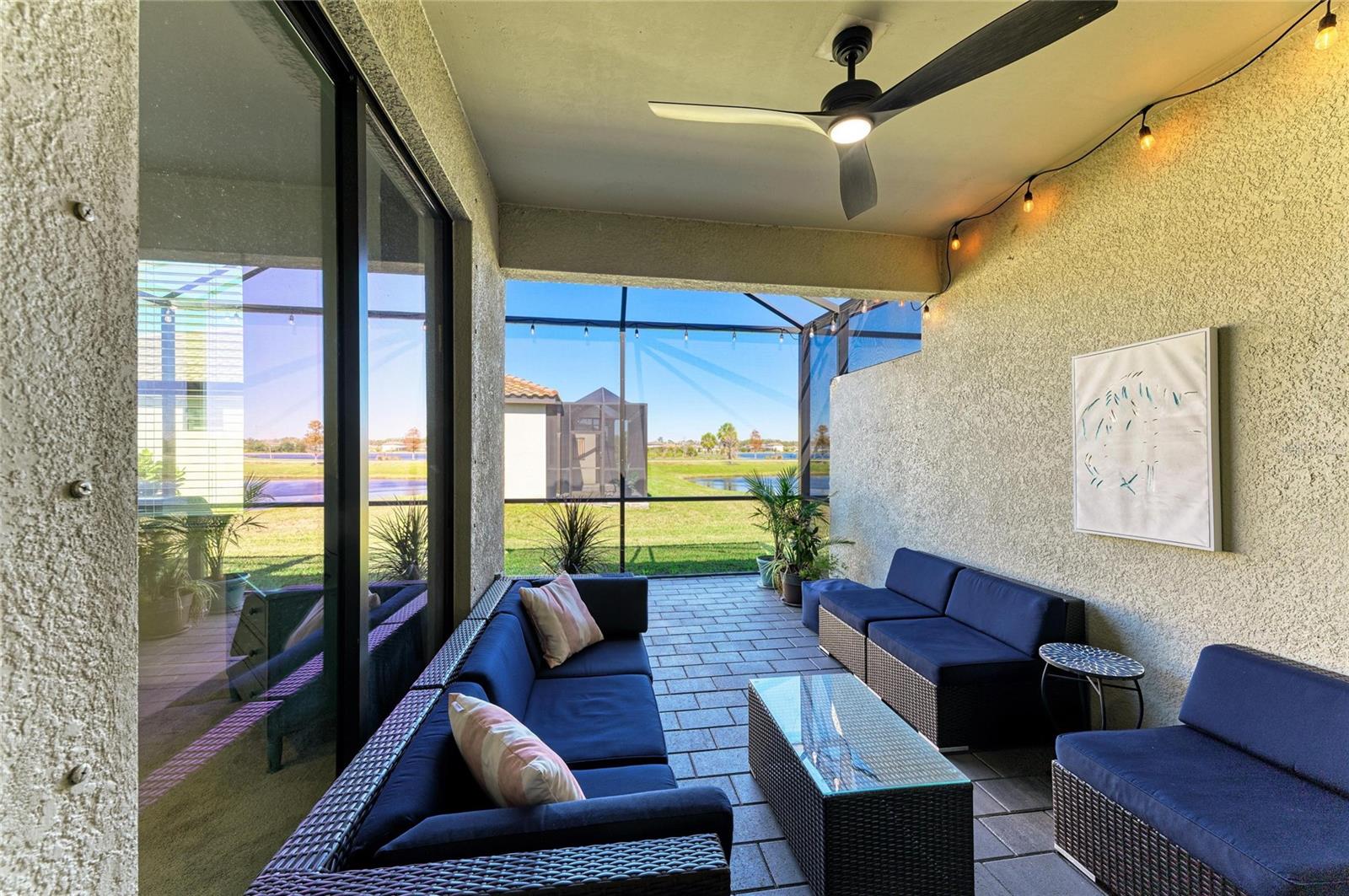 Located in the gated, amenity rich, community of Lorraine Lakes in Lakewood Ranch, this 2021-built villa residence blends modern design with the ease of maintenance-free living. The Orchid floor plan spans 1,557 square feet under air, the largest of the villas, offering two bedrooms, two baths and a versatile den, all thoughtfully arranged in a split-bedroom layout ideal for privacy and entertaining. Inside, upgraded tile flooring and designer lighting complement the open-concept living and dining areas. The kitchen is equipped with granite countertops, a gas range, and an abundance of cabinetry that provides generous storage for culinary essentials. The primary suite features a walk-in closet, dual vanities and a glass-enclosed walk-in shower. Double French doors open to a flexible den, perfect for a home office, media room or additional guest space. Enjoy indoor-outdoor living with an extended screened lanai that overlooks two tranquil ponds, offering space for alfresco dining or outdoor kitchen setup. Residents benefit from a two-car garage and proximity to the community’s extensive amenity center. Just a short stroll away, the clubhouse includes a resort-style pool, splash park, indoor and outdoor dining at the poolside cafe, and a state-of-the-art fitness center with sauna. Outdoor enthusiasts can enjoy tennis, pickle ball, basketball, volleyball, a putting green and golf cart access throughout the community. Located minutes from shopping, top-rated golf courses, the Premier Sports Campus and Gulf Coast beaches, Lorraine Lakes offers an elevated lifestyle in one of Southwest Florida’s most vibrant master-planned communities.