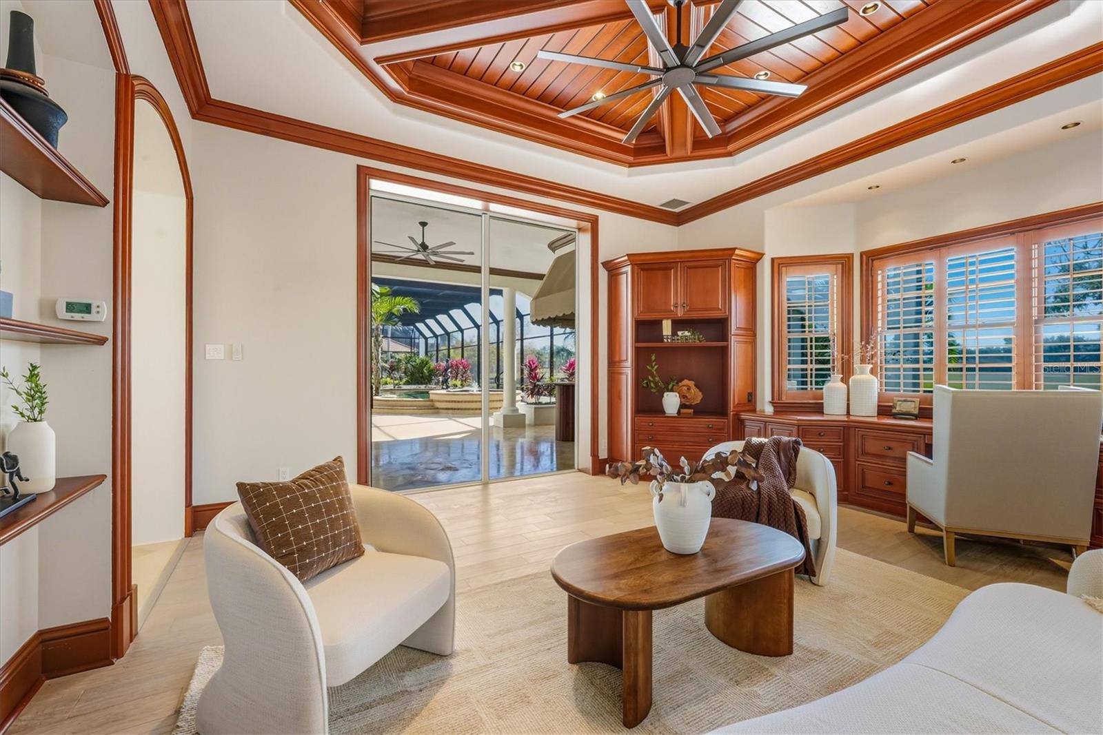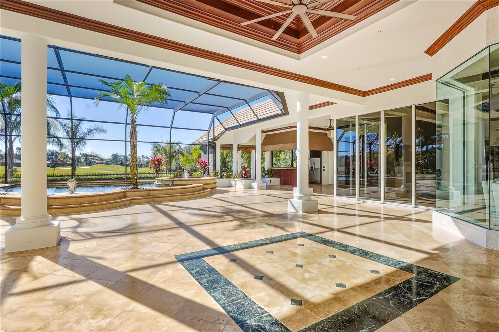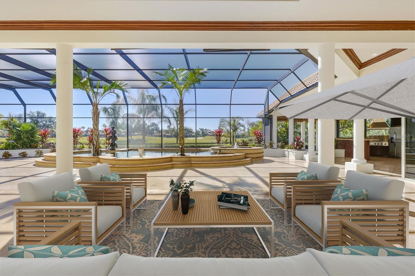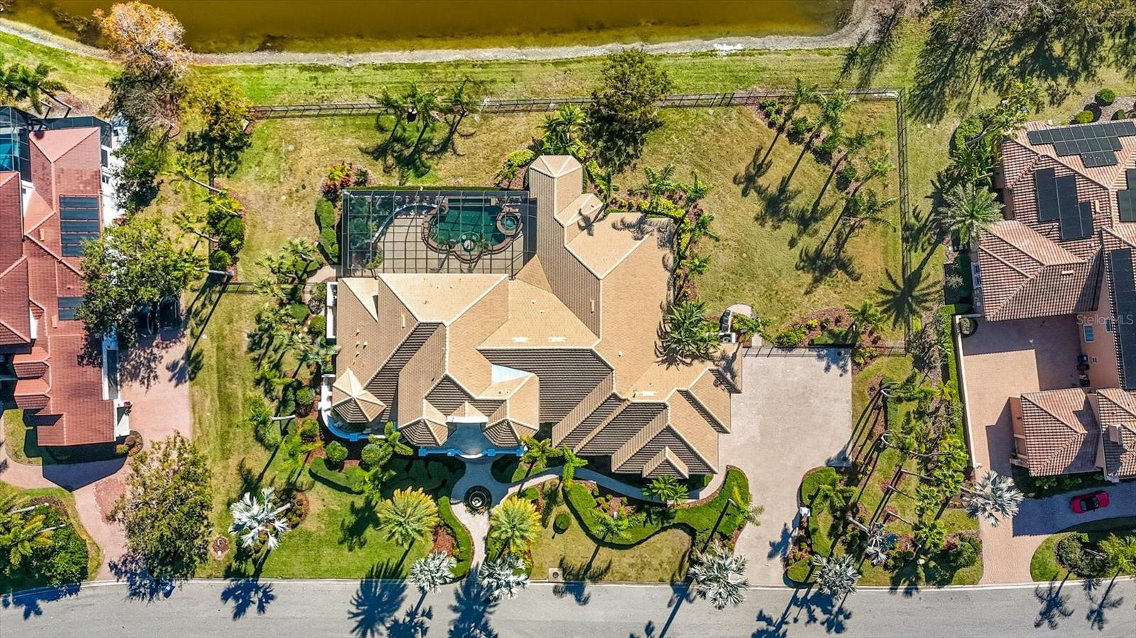 One or more photo(s) has been virtually staged. Discover an exceptional opportunity to own one of the most distinguished estates in the gated, exquisite community of Lakewood Ranch Country Club. Perfectly positioned on an expansive .94-acre double lot, this rare residence offers unmatched privacy, generous outdoor living with fenced in backyard, and a sense of scale that is impossible to replicate within the community. Elegance unfolds from the moment you arrive. A stately residence, framed by mature landscaping and sweeping lawn, creates a grand entrance worthy of the home’s impressive setting. Inside, refined architectural details, soaring ceilings, and sun-filled living spaces blend seamlessly to create an atmosphere of timeless sophistication and effortless livability. Designed for both intimate relaxation and stylish entertaining, the home’s open layout flows beautifully from formal living and dining areas to the spacious family room and gourmet kitchen. Large picture windows and multiple sets of glass doors draw in natural light while offering tranquil views of the estate-sized grounds, ensuring every room feels connected to the outdoors. The primary suite is a serene escape, generously proportioned and thoughtfully designed with a spa-inspired bathroom, separate sitting area for exercise or relaxation, expansive closet with custom built-ins, and private access to the lanai. Four additional ensuite guest rooms provide comfort and privacy for visitors, while a dedicated office or den offers the perfect space for work or quiet retreat. Outdoors, the true uniqueness of this property comes to life. The nearly one-acre homesite offers an extraordinary sense of openness rarely found in Lakewood Ranch Country Club. The expansive lanai and screened pool area overlook lush, beautifully manicured grounds—ideal for hosting gatherings, creating a private garden oasis, or simply enjoying the tranquility of your own oversized retreat. In one of the most desirable gated golf communities, residents of Lakewood Ranch Country Club have the opportunity to enjoy 72 holes of challenging golf, tennis, pickleball, swimming, a state-of-the-art fitness center, and three elegant clubhouse options with dining and social events. The location offers unbeatable convenience, just minutes from University Town Center, world-class shopping and dining, I-75, and the Gulf Coast’s celebrated beaches.With its rare double lot, impressive footprint, and timeless architectural appeal, 7028 Portmarnock Place presents a singular opportunity to own a private estate that stands apart from the rest. This is more than a home—it is a legacy property, offering space, elegance, and the freedom to live exceptionally in the heart of Lakewood Ranch, the most desirable master planned community in the country.