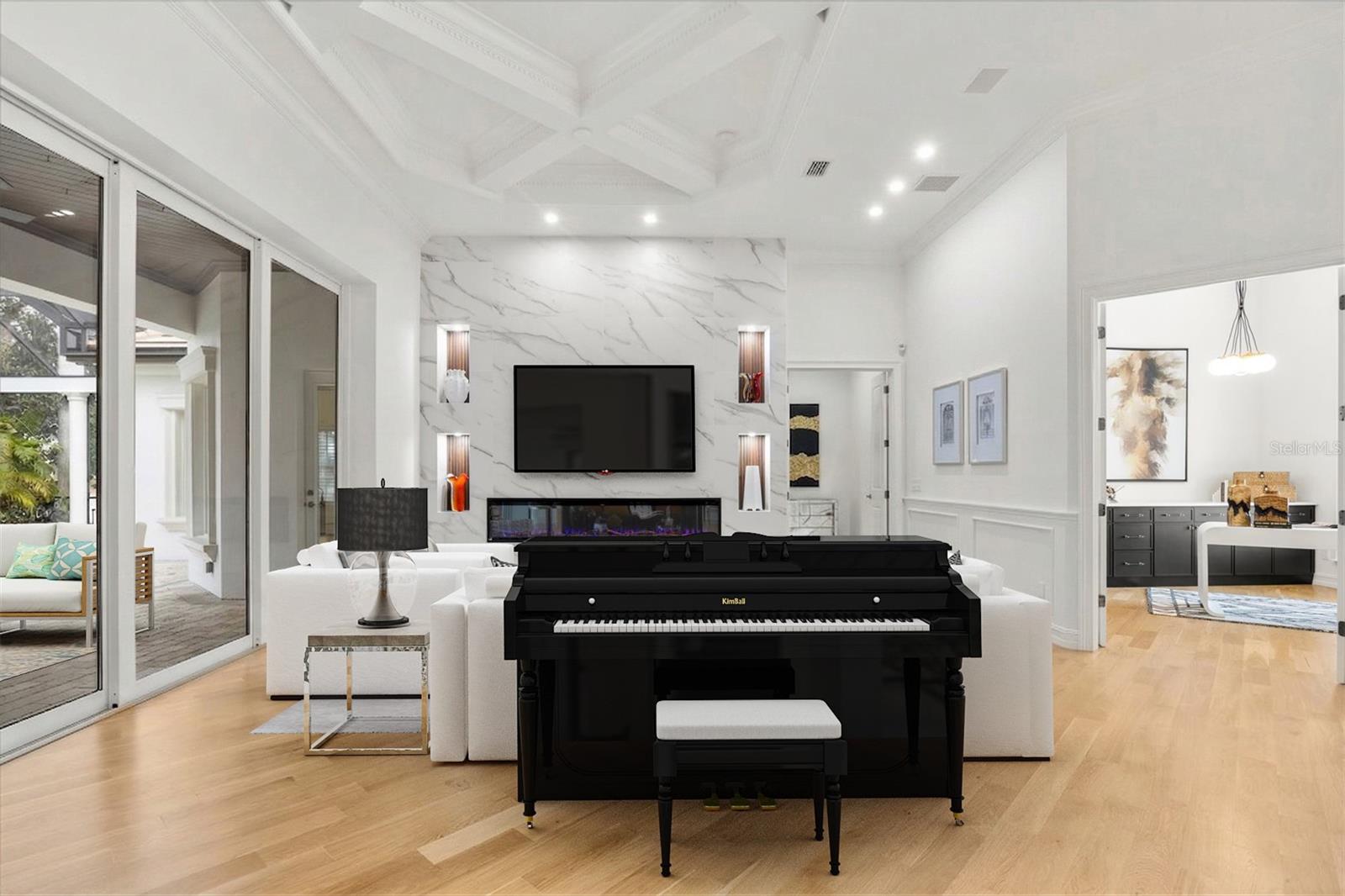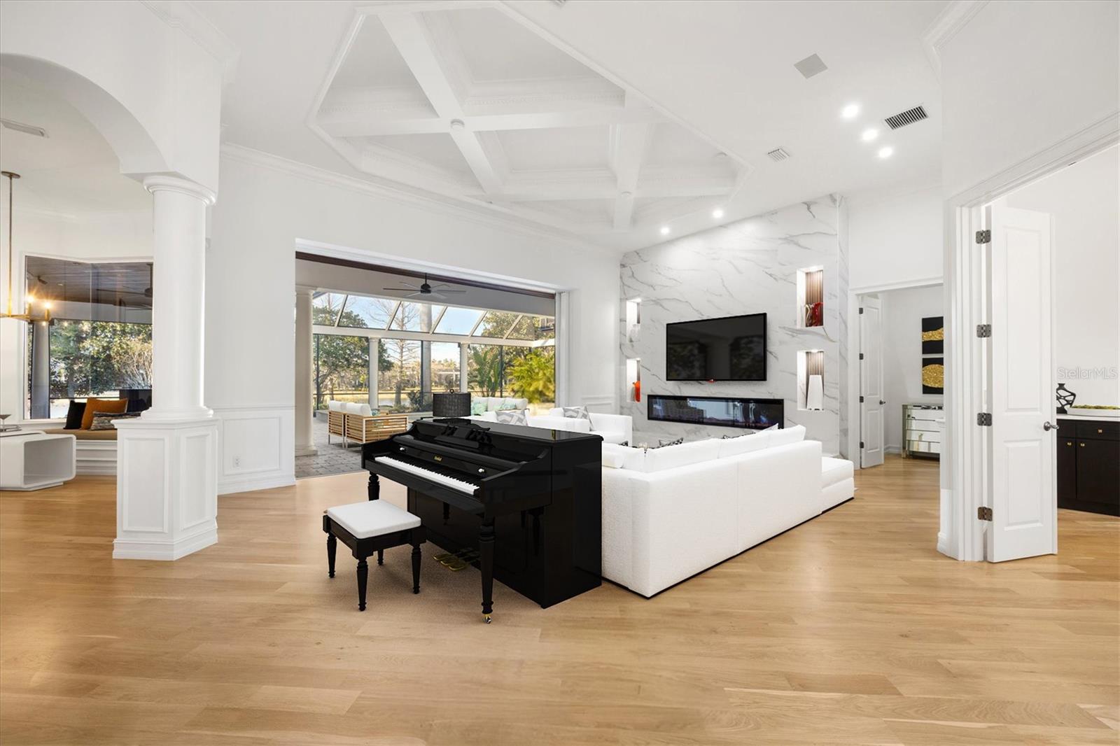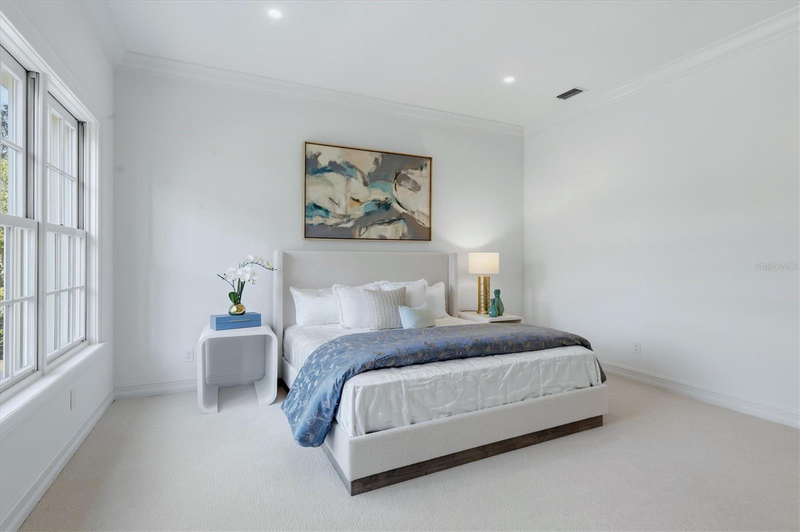 One or more photo(s) has been virtually staged. If you are looking for the BEST VALUE in the Lakewood Ranch, look no further than 7921 Waterton Lane, an exquisite luxury residence in the coveted gated community of THE LAKE CLUB in Lakewood Ranch, where timeless architecture, refined interiors, and shimmering lakefront views create a lifestyle of unmatched serenity and sophistication. Perfectly positioned on one of the community’s most serene streets—and former MODEL ROW, walking distance to the world-class amenities! This meticulously maintained residence now offers FOUR bedrooms with their own bathroom! The dedicated office could easily serve as a fifth bedroom option! From the moment you arrive, the home’s stately presence with circular drive, set the tone for the elegance that awaits inside. A grand foyer welcomes you with soaring ceilings, sun-splashed living spaces, and a seamless indoor–outdoor flow that celebrates Florida’s most coveted attribute: year-round resort-style living. The open-concept great room is framed by expansive impact glass sliders showcasing tranquil lake vistas, while refined architectural details—new feature wall with fireplace, crown moldings, coffered ceilings, new designer lighting, and new custom built-ins—enhance the home’s elevated aesthetic. The heart of the home is the gourmet chef’s kitchen, where top-tier appliances, including DOUBLE OVENS WITH WARMING DRAWER, A FULL REFRIGERATOR & FULL FREEZER, rich cabinetry, a generous center island, new pendant lighting and a walk-in pantry come together to create both beauty and practicality. Whether hosting intimate dinners or entertaining large gatherings, this culinary space offers the perfect backdrop for unforgettable moments. Adjacent, the dining area and living room maximize lake views, creating a soothing ambiance that carries throughout the residence. The primary suite is nothing short of indulgent—complete with panoramic water views, generous sitting room with refreshed built-ins and MORNING BAR, dual custom closets with custom built-ins, separate dressing areaand a spa-inspired bath featuring a large soaking tub, walk-in shower with dual shower heads, dual water closets and dual vanities. Step outside to your private lakefront oasis, where gentle breezes and sparkling water create a calming retreat. The sweeping lanai enhanced with travertine pavers and panoramic screens, offers covered lounging and dining areas, ideal for relaxing afternoons and sunset gatherings. With ample space for future enhancements, this outdoor haven invites you to savor Florida living at its best! Just beyond your doorstep lies everything The Lake Club is celebrated for. Enjoy a short walk to the grand clubhouse, private restaurant, resort pools, state-of-the-art fitness center, tennis facilities, vibrant pickleball courts, dog park and playground! Miles of walking trails, charming bridges, and stunning lakes weave throughout this master-planned paradise, placing luxury living and wellness at the forefront. 7921 Waterton Lane is more than a home—it is a lifestyle of elegance, convenience, and tranquility in Lakewood Ranch’s most elite enclave. Here, every detail has been curated for comfort, beauty, and connection to the breathtaking natural surroundings. Indulge in the privilege of lakefront living within one of Florida’s premier residential communities.