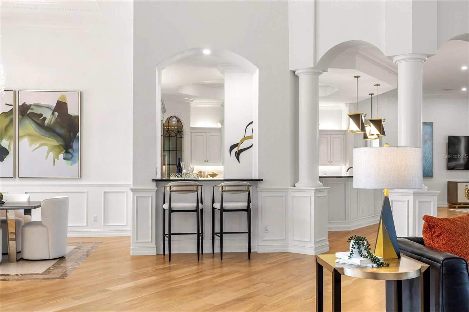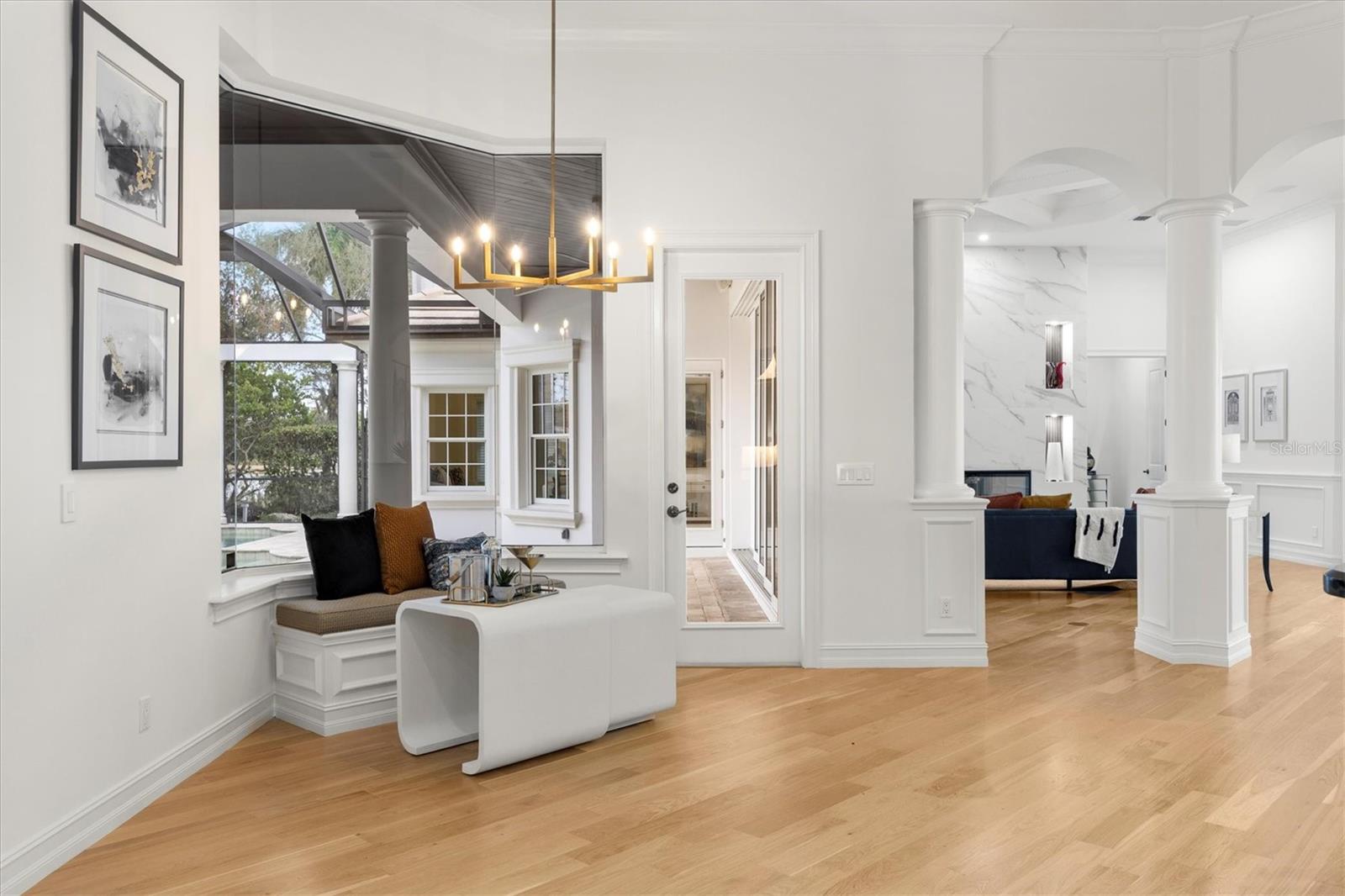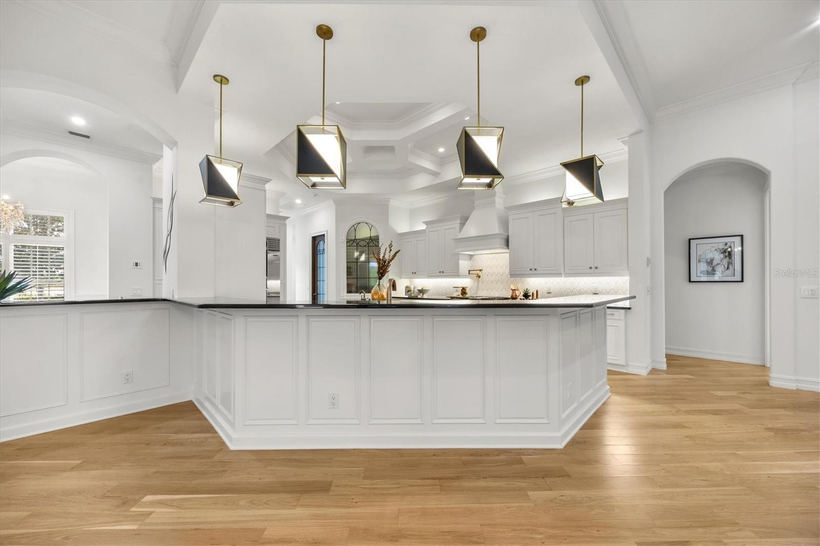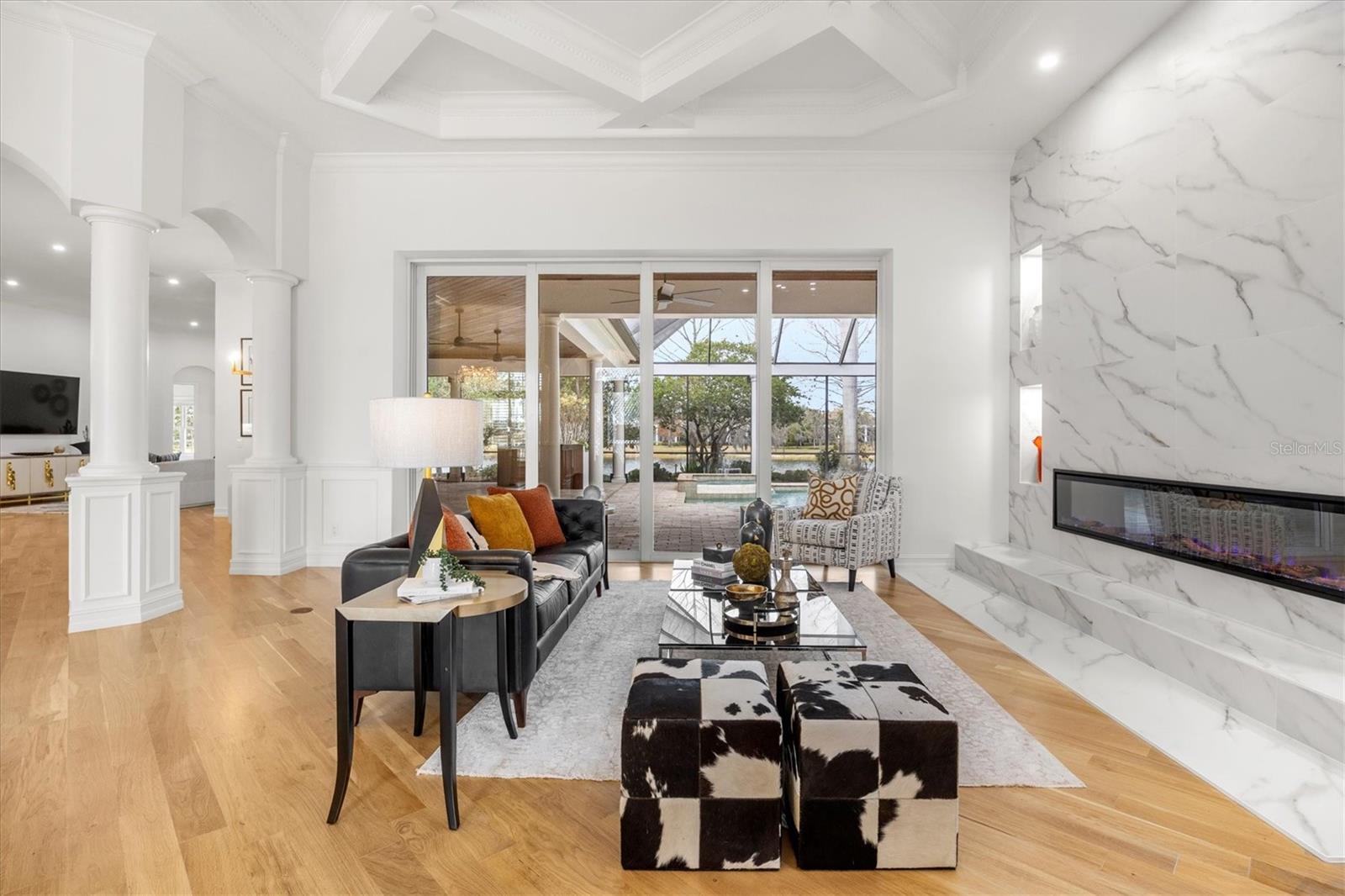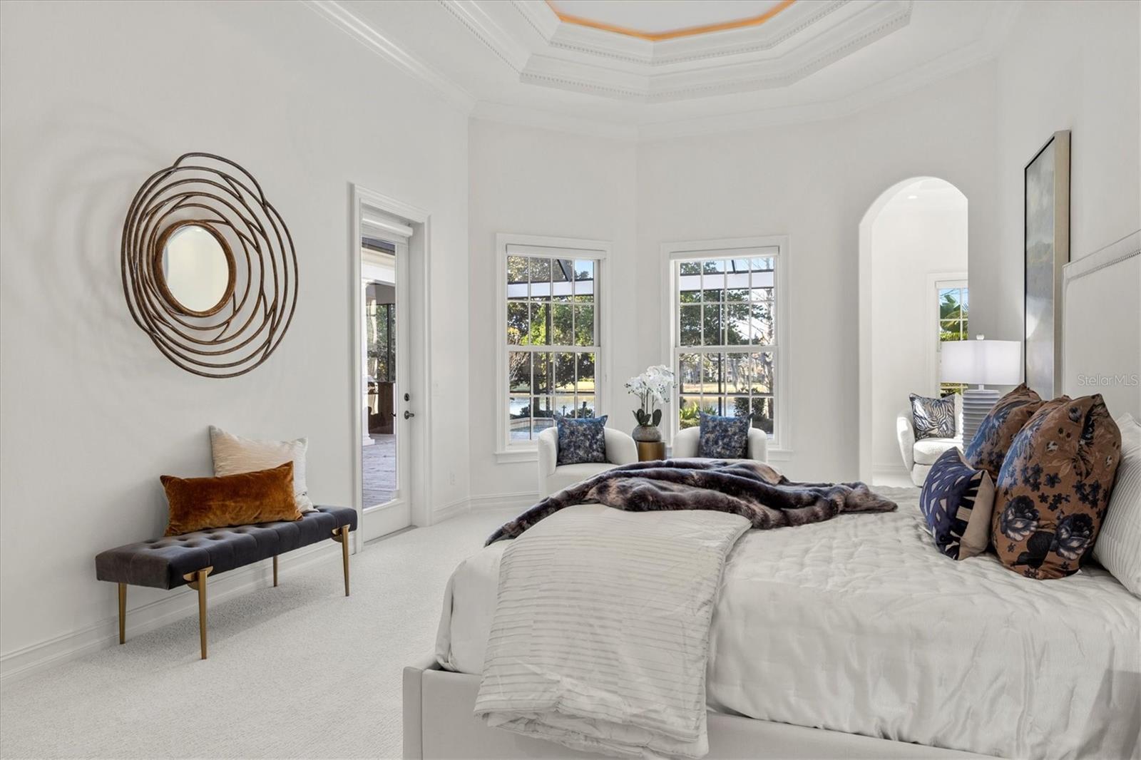 Welcome to 7921 Waterton Lane, an exquisite luxury residence in the exquisite gated community of The Lake Club in Lakewood Ranch, where timeless architecture, refined interiors, and shimmering lakefront views create a lifestyle of unmatched serenity and sophistication. Perfectly positioned on one of the community’s most serene streets—and walking distance to the world-class amenities—this meticulously maintained residence now offers a newly added fourth bedroom ensuite, elevating both its functionality and desirability for today’s discerning buyer. From the moment you arrive, the home’s stately presence and lush landscaping set the tone for the elegance that awaits inside. A grand foyer welcomes you with soaring ceilings, sun-splashed living spaces, and a seamless indoor–outdoor flow that celebrates Florida’s most coveted attribute: year-round resort-style living. The open-concept great room is framed by expansive glass sliders showcasing tranquil lake vistas, while refined architectural details—new feature wall with fireplace, crown moldings, coffered ceilings, new designer lighting, and new custom built-ins—enhance the home’s elevated aesthetic. The heart of the home is the gourmet chef’s kitchen, where top-tier appliances, rich cabinetry, a generous center island, new pendant lighting and a walk-in pantry come together to create both beauty and practicality. Whether hosting intimate dinners or entertaining large gatherings, this culinary space offers the perfect backdrop for unforgettable moments. Adjacent, the dining area and living room maximize lake views, creating a soothing ambiance that carries throughout the residence.The newly added fourth bedroom ensuite is a standout feature, providing luxurious accommodations for guests or multigenerational living. Designed with comfort and privacy in mind, it includes new carpet, a spacious closet, a beautifully appointed bath, and refined finishes consistent with the rest of the home. Each additional bedroom also offers its own sense of sanctuary, while the primary suite is nothing short of indulgent—complete with panoramic water views, generous sitting room with refreshed built-ins, dual custom closets with custom built-ins, and a spa-inspired bath featuring a large soaking tub, walk-in shower with dual shower heads, dual water closets and dual vanities. Step outside to your private lakefront oasis, where gentle breezes and sparkling water create a calming retreat. The sweeping lanai enhanced with travertine pavers and panoramic screens, offers covered lounging and dining areas, ideal for relaxing afternoons and sunset gatherings. With ample space for future enhancements, this outdoor haven invites you to savor Florida living at its most idyllic.