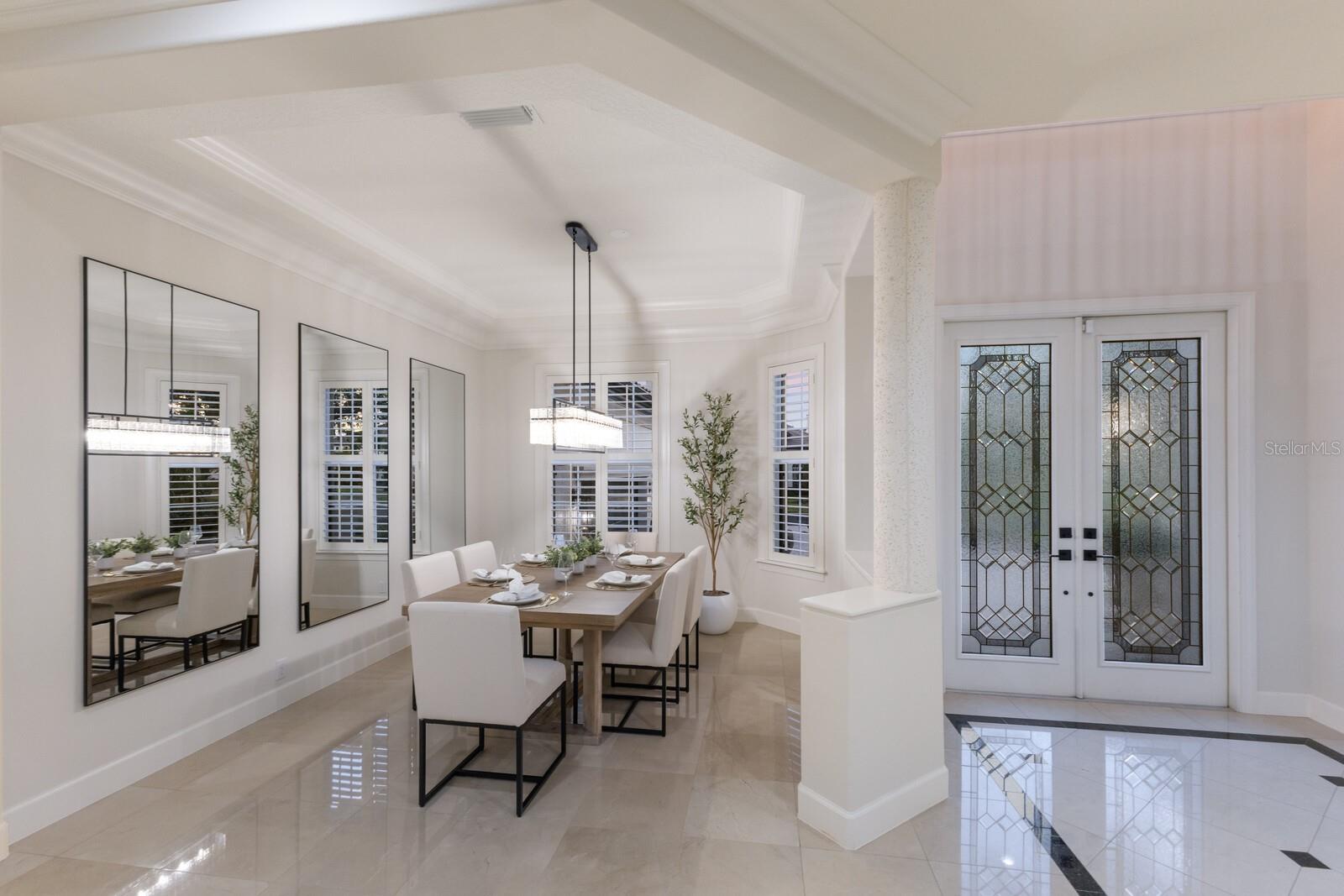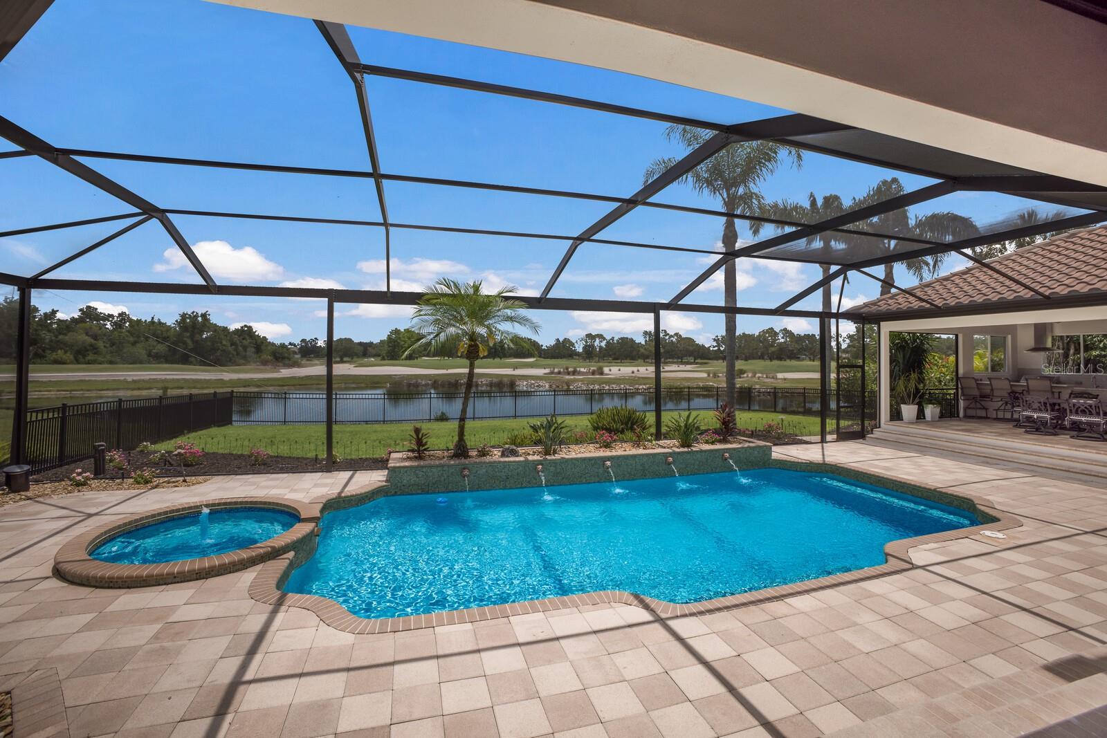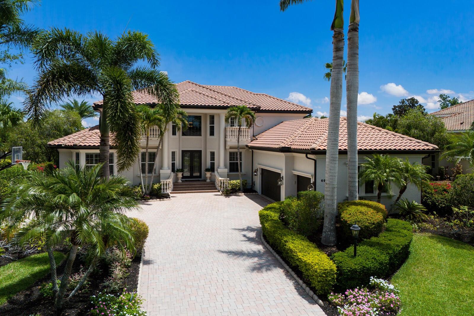 Reduced and priced to sell! Set on a premium golf course lot boasting MORE THAN a half acre, behind the gates of the highly desirable Lakewood Ranch Country Club, this 4,737 sq ft Arthur Rutenberg-built estate offers a BRAND NEW ROOF and showcases refined luxury and architectural grandeur. With 4 spacious bedrooms, 4 full bathrooms, and a half bath, this two-story residence offers both elegant formal spaces and inviting everyday comfort. From the moment you enter, you’re greeted by a dramatic two-story living room with gas fireplace and two-story great room with soaring ceilings, custom millwork, and expansive windows that capture serene golf course views. Natural light pours into every corner, creating an open and airy ambiance throughout. The expansive lanai has two large covered space and highlights an enormous pool, perfect for swimming laps or just splasing around enjoying a pool party! The gourmet kitchen is a chef’s dream—well-appointed with premium cabinetry, a center island, granite countertops, and top-of-the-line appliances—flowing seamlessly into a generous casual dining space and inviting great room. An elegant formal dining area and a private office/study with built in partners desk are conveniently located on the fist floor along with the expansive primary suite. There is a generous size bonus room tucked away off the great room with french doors to the covered lanai and perfect for an exercise room, playroon or game roon with a bar area! Retreat to the luxurious owner’s suite, which boasts dual walk-in closets, a spa-inspired bath with massive soaking tub, and direct access to the lanai. Upstairs, each additional bedroom offers ensuite convenience and ample closet space, ideal for family or guests. Guest rooms #1 & #2 offer juliet balcony's and Guest #3 offers a private sun deck perfect for morning coffee, sunset cocktails or yoga area overlooking the panoramic golf course vistas. Don't miss the second floor bonus room that can easily be converted to a fifth bedroom or teen lounge! Furry friends can run free in the backyard with puppy fencing! Every inch of this home reflects the timeless craftsmanship Arthur Rutenberg is known for, wrapped in the serenity of one of Southwest Florida’s most sought-after golf communities. Whether you’re hosting lavish events or seeking quiet luxury, 6919 Westchester Circle is the perfect blend of distinction, comfort, and resort-style living. Lakewood Ranch Country Club is an optional country club membership offering four golf courses, three clubhouses, twenty lighted tennis courts, pickleball courts, athletic center, olympic pool with lap lanes, volleyball court, basketball court, playground and more! Enjoy top rated public schools, expansive new restaurant choices and shopping options just minutes away. Hurry in and don't wait to tour this majestic residence.