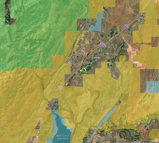 This 10-acre property is located within Leeds city limits in Washington County, Utah. The parcel has a long history of agricultural use and features mostly flat ground with productive soil characteristics. The parcel is just minutes from Interstate-15 with convenient access to both north and south onramps. The layout and zoning provide flexibility, allowing the property to remain intact as a single rural holding or be divided into several 1-plus-acre lots, subject to city approvals and required improvements. Access to the property is near Main Street in Leeds, offering proximity to town amenities while maintaining a sense of separation through mature trees and surrounding land uses. A neighboring riding arena and established agricultural properties contribute to a semi-rural setting. While close to town, the parcel maintains privacy and open space characteristics that are increasingly limited within city boundaries. City water is available to the property, which supports both residential considerations, while senior priority private water shares support the agricultural production. Electrical power is located nearby and could be extended to future building sites. Sewer service is not available, and development would require individual septic systems. Some road improvements would also be necessary before subdivision or construction, and buyers should verify all requirements with the City of Leeds. The terrain is primarily level, which may reduce grading needs depending on the intended use. Views from the property include surrounding red rock formations and open skies typical of southwest Utah. The soil quality reflects its agricultural past and may support continued farming, hobby agriculture, or landscaped residential uses where permitted. Leeds is a historic southern Utah town known for its agricultural roots and long growing season. Main Street still features buildings dating back to the late 1800s, reflecting the area's early settlement history. The community offers a quieter pace while remaining closely connected to larger population centers. St. George is located approximately 15 minutes south of the property on I15 and provides access to regional shopping, medical facilities, dining, and employment opportunities. Washington County continues to experience steady growth, supported by transportation infrastructure, recreation, and tourism. The greater Zion area is widely recognized for its public land access and outdoor recreation. The property is located near Quail Creek State Park, Sand Hollow State Park, Gunlock State Park, Snow Canyon State Park, the Red Cliffs Desert Reserve, and Zion National Park. These areas offer opportunities for boating, hiking, mountain biking, off-highway vehicle use, and scenic exploration. With several hiking and biking trails accessible less than 2 miles from the property. Washington County also hosts a range of regional events, including endurance races, off-road events, and seasonal competitions. Golf courses are located throughout the county, including courses associated with professional tournament play. These amenities contribute to year-round recreational use without being located directly on the property. Wheel line sprinklers, additional water rights, or adjacent property may be negotiable, subject to a separate agreement. Buyers are encouraged to verify zoning, subdivision standards, utility connections, and allowable uses directly with the City of Leeds, the Leeds Domestic Water Users Association, and Washington County. This offering presents an opportunity to acquire a sizeable parcel within city limits with multiple potential future paths, depending on buyer objectives and approvals.