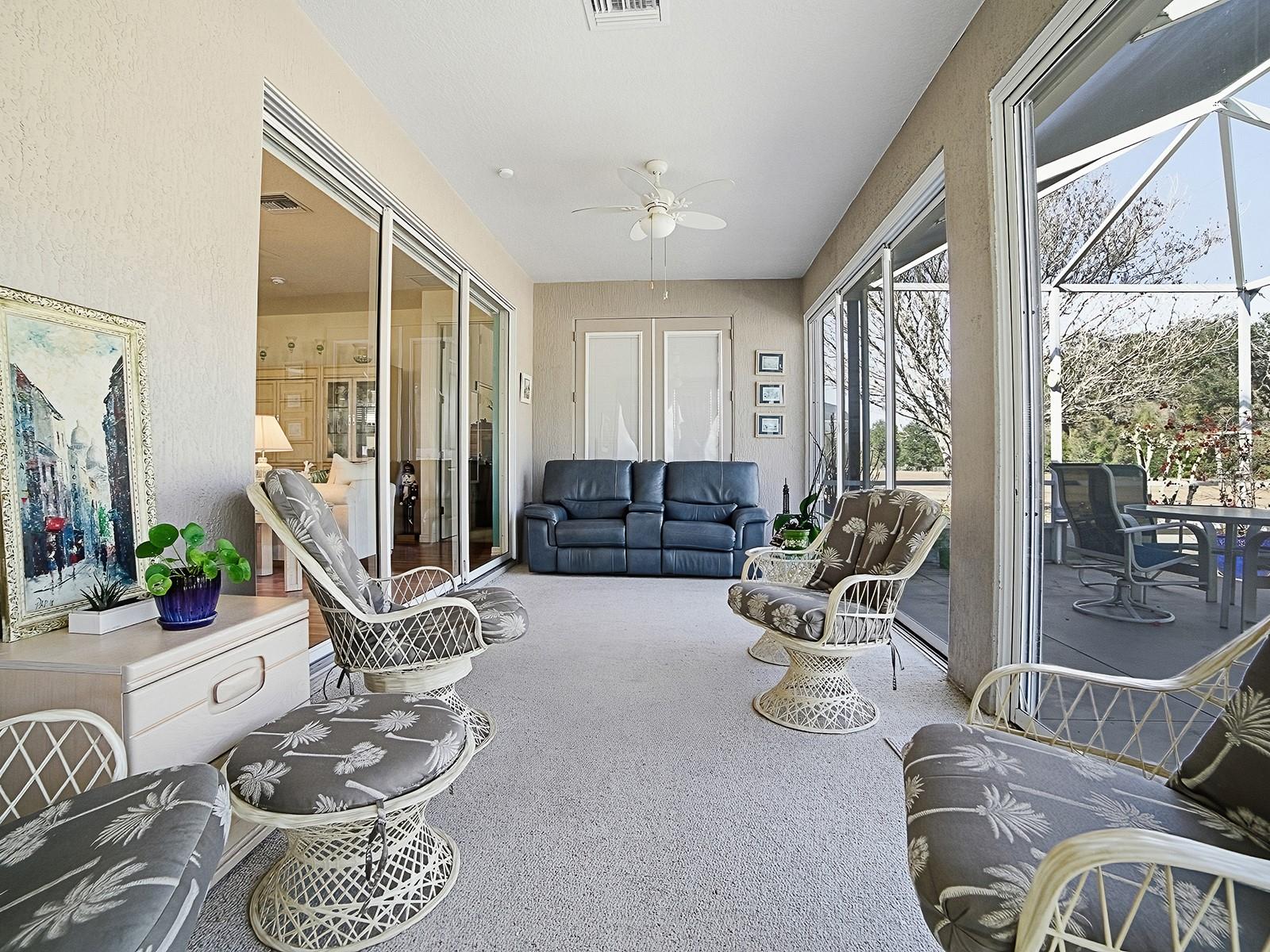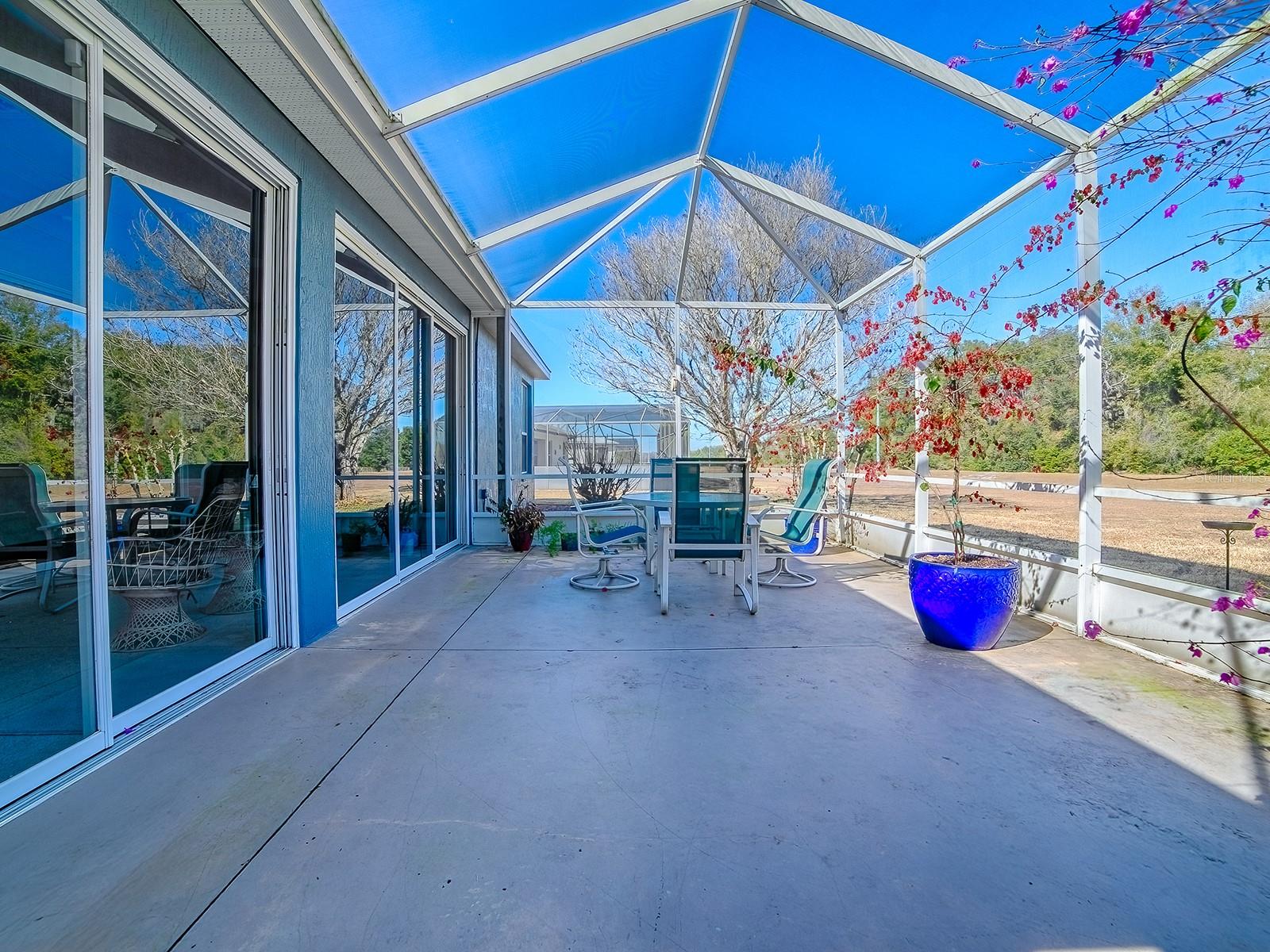 STUNNING AND METICULOUSLY MAINTAINED GOLF CART HOME WITH AN ENCLOSED LANAI AND PRIVACY! WELCOME HOME! This beautiful home is Move In Ready! So much this home offers..... knock down ceilings, plantation shutters, laminate flooring in Living Room/Dining Room, enclosed lanai (with triple door sliders) under heat/air, oversize birdcage, walk in shower in guest bath and master, and just wait until you see this OVERSIZED and expanded laundry room plus much more! Cul-de-sac lot and rare feature.....this home offers PLENTY OF PARKING, CHECK OUT THE LONG DRIVEWAY THIS HOME FEATURES!!!! Come and see for yourself! Pennbrooke Fairways, a 55+ Community! This hidden gem of a community is located just 5 minutes south of The Villages, less than an hour to Orlando, Tampa and Daytona Beach within 90 minutes... just a perfect location for day trips! Pennbrooke Fairways golf course offers golfers two executive nines and one regulation nine. Golfing packages are available for community residents and open to the public. Pennbrooke offers RV and Boat Storage with Dump & Wash Stations and 24-hour Gated, Guarded Security. The community center offers a Hair Salon, Library and Real Estate Community Office onsite. Your HOA includes cable, internet and lawn cutting services. 55+ only community with pools, club recreational centers, 3 golf courses, restaurant, pub, walking trails, pickleball, shuffleboard and much more! Loads of fun activities are planned throughout the year! Conveniently located within minutes of The Villages and Brownwood Town Square... enjoy all the shopping and dining the Villages has to offer and just minutes to Downtown Leesburg. Central Florida living at its best! Expect the unexpected! REROOF 2024, WATER HEATER 2023. Security System is available for transfer. 3rd guest room has no closet.