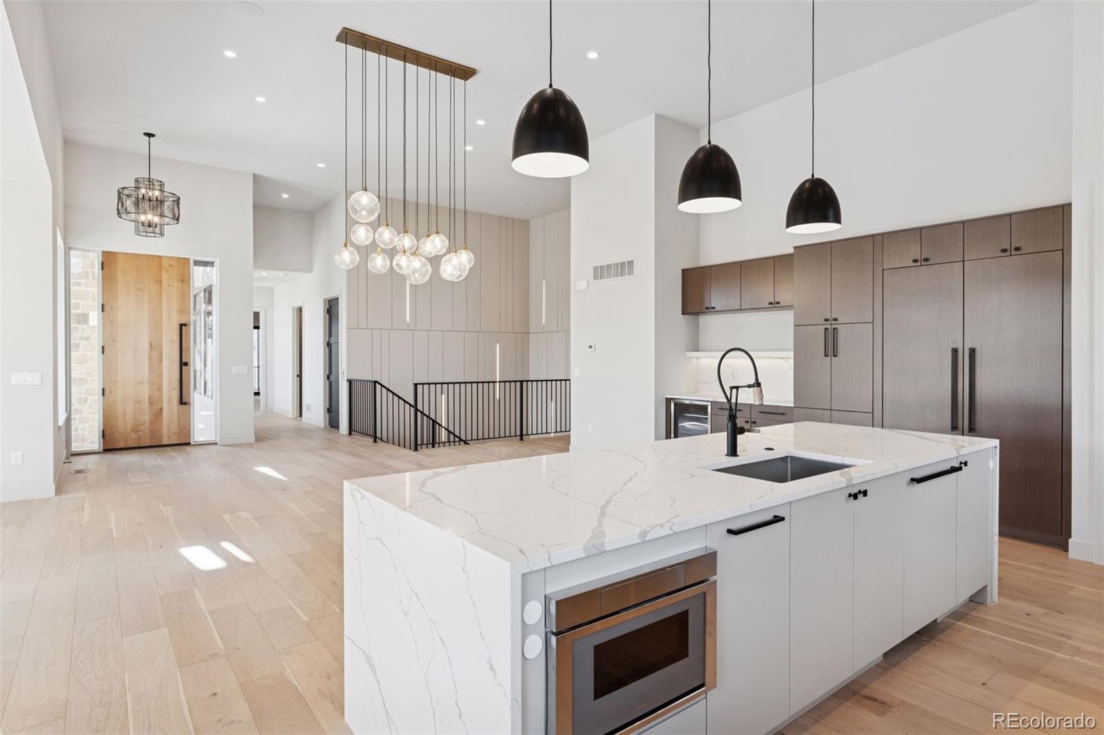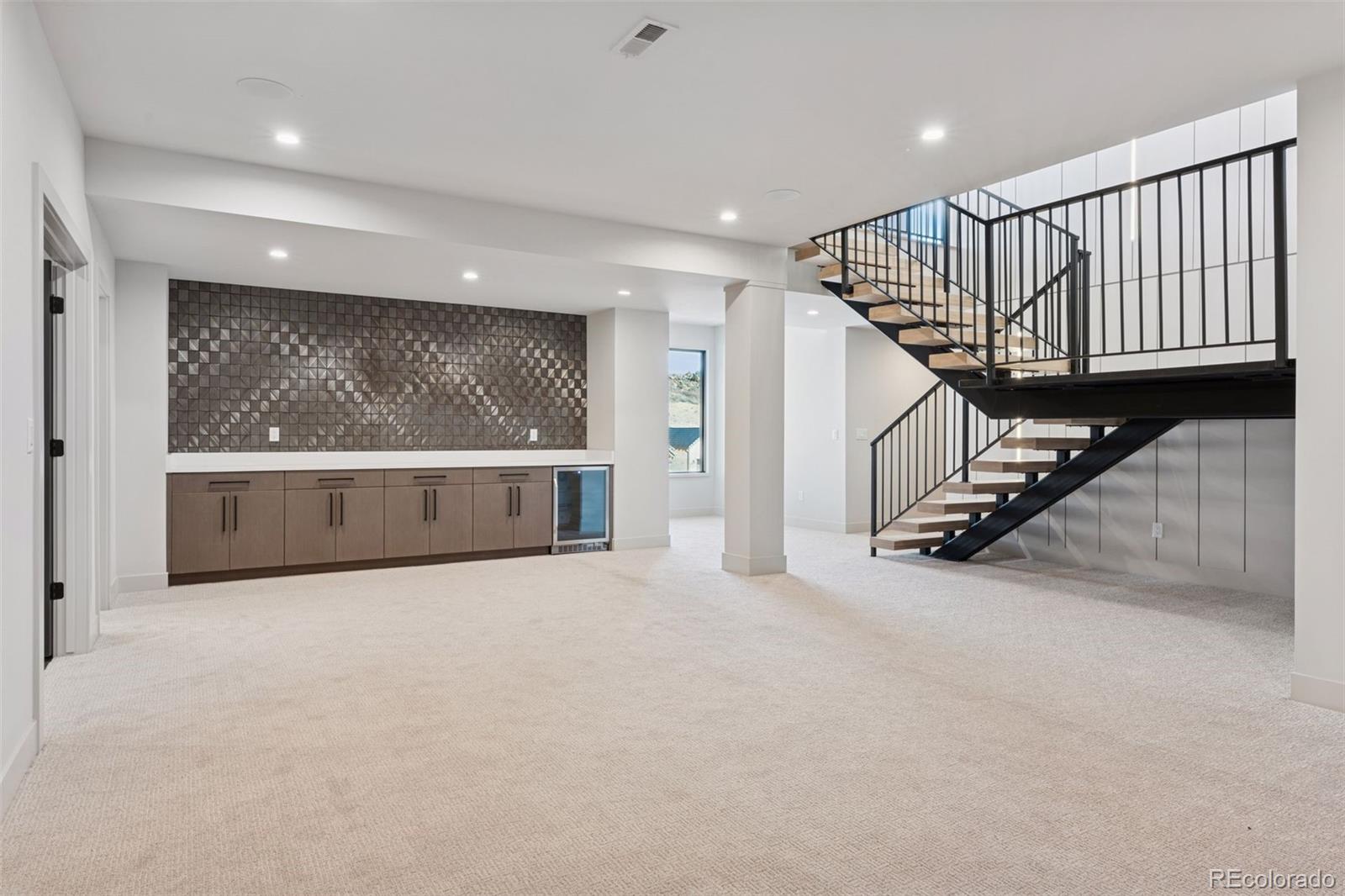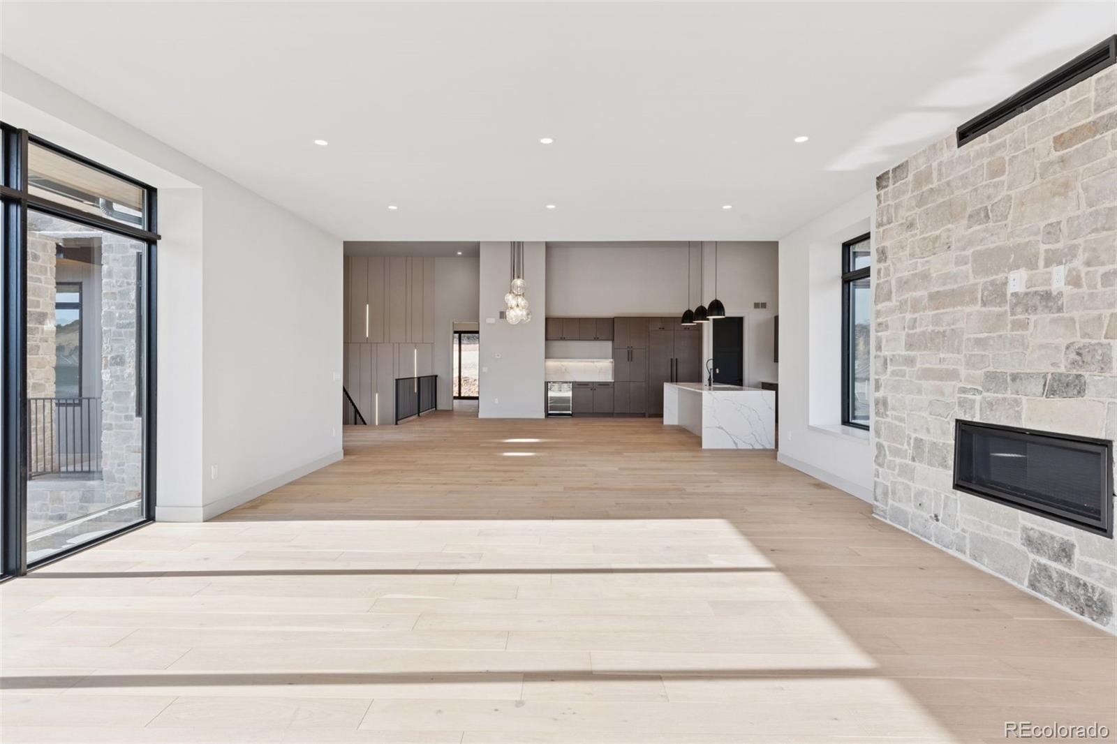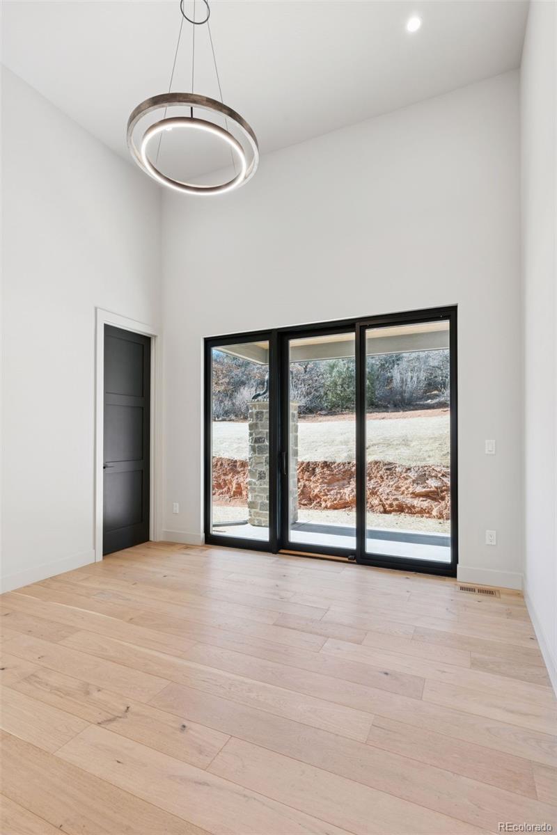 Experience resort-style living in this breathtaking 4-bedroom, 5-bathroom home nestled within the exclusive gated Ravenna Golf Course Community. Backing to open space with breathtaking views of surrounding rock croppings and the golf course, this residence offers unparalleled access to the community’s luxurious amenities, including hiking trails and a private golf club with a world-class 18-hole golf course, swimming pool, clubhouse, wellness center, and restaurant. Every detail of this semi-custom home exudes elegance and sophistication. The entry opens to a private home office through a sliding door, while the living areas boast tall ceilings and large windows that frame incredible views from every room. The sleek kitchen features a vast center island, modern appliances, a walk-in pantry, and a butler’s pantry with a beverage cooler. A mudroom with built-in cabinetry, a bench, and a large closet adds functionality to the main level. The tranquil primary suite is a true retreat, complete with a cozy fireplace, spa-like bath with a soaking tub, and serene views. The main level also includes another study/bedroom and an additional bedroom with a private bath and patio. The finished walkout basement is an entertainer’s dream, featuring a built-in bar, wine storage, a family room, gym/studio, and two additional bedrooms with private baths. Outdoor living is elevated with covered patios that provide the perfect space to soak in the sprawling views. The oversized 3-car garage offers ample space for vehicles, a golf cart, and gear, while an elevator ensures effortless access throughout the home. With new construction, fine finishes, natural colors, and an airy, light-filled design, this home is a masterpiece of modern luxury in one of Colorado’s most coveted communities.