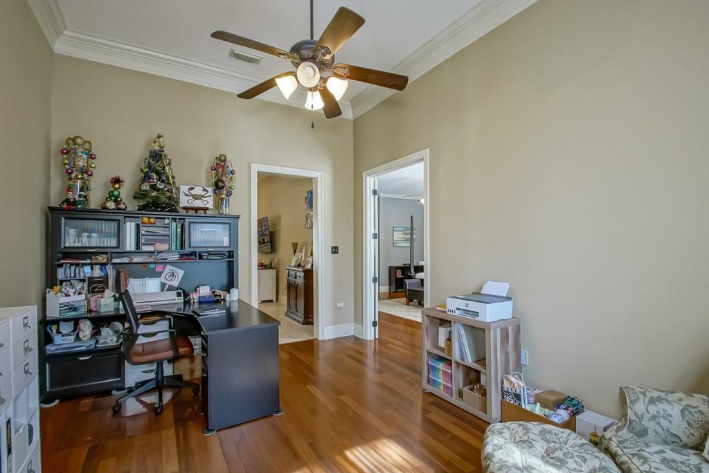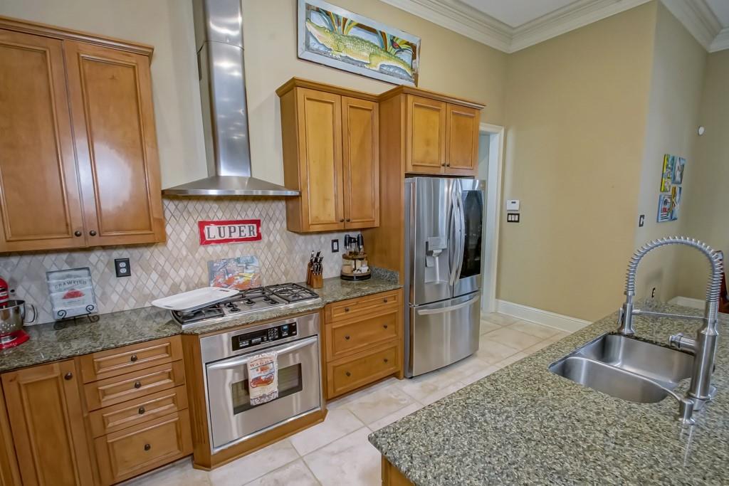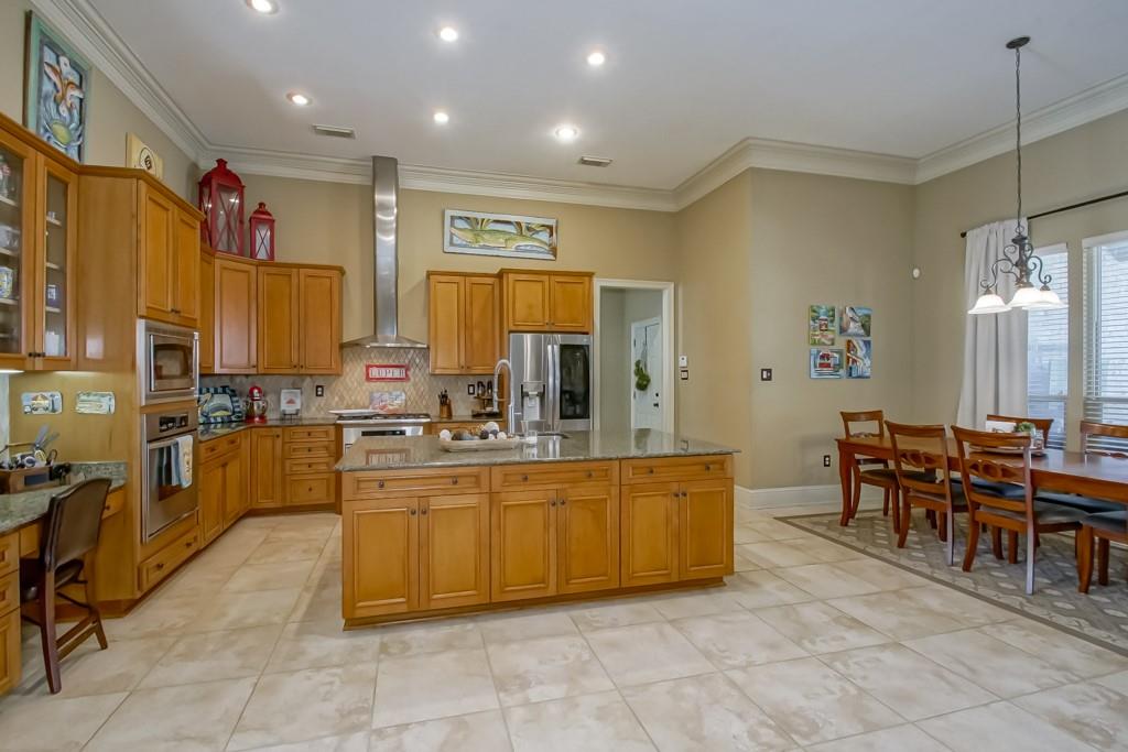 BEAU CHENE- Stately custom brick home on a large, corner lot in a preferred flood zone. This spacious residence offers over 4150 sq ft of living with elegant ceramic and wood flooring throughout both levels. The open concept living room and kitchen/ breakfast room features 12' ceilings, an oversized island, stainless appliances, and abundant cabinetry, along with a formal dining room ideal for entertaining. The primary suite is conveniently located downstairs and includes an attached office/nursery. Upstairs offers two full baths, a large den area, and three nicely sized bedrooms with newer wood flooring. Outdoor living is equally impressive with a brick patio and outdoor kitchen, plus a side-load two-car garage. Situated in one of Mandeville's premier gated communities featuring guarded entrances, a private club and two 18-hole professional golf courses, tennis courts and pools. This home has it all, blending, style, space, and location! Call today for a private tour!