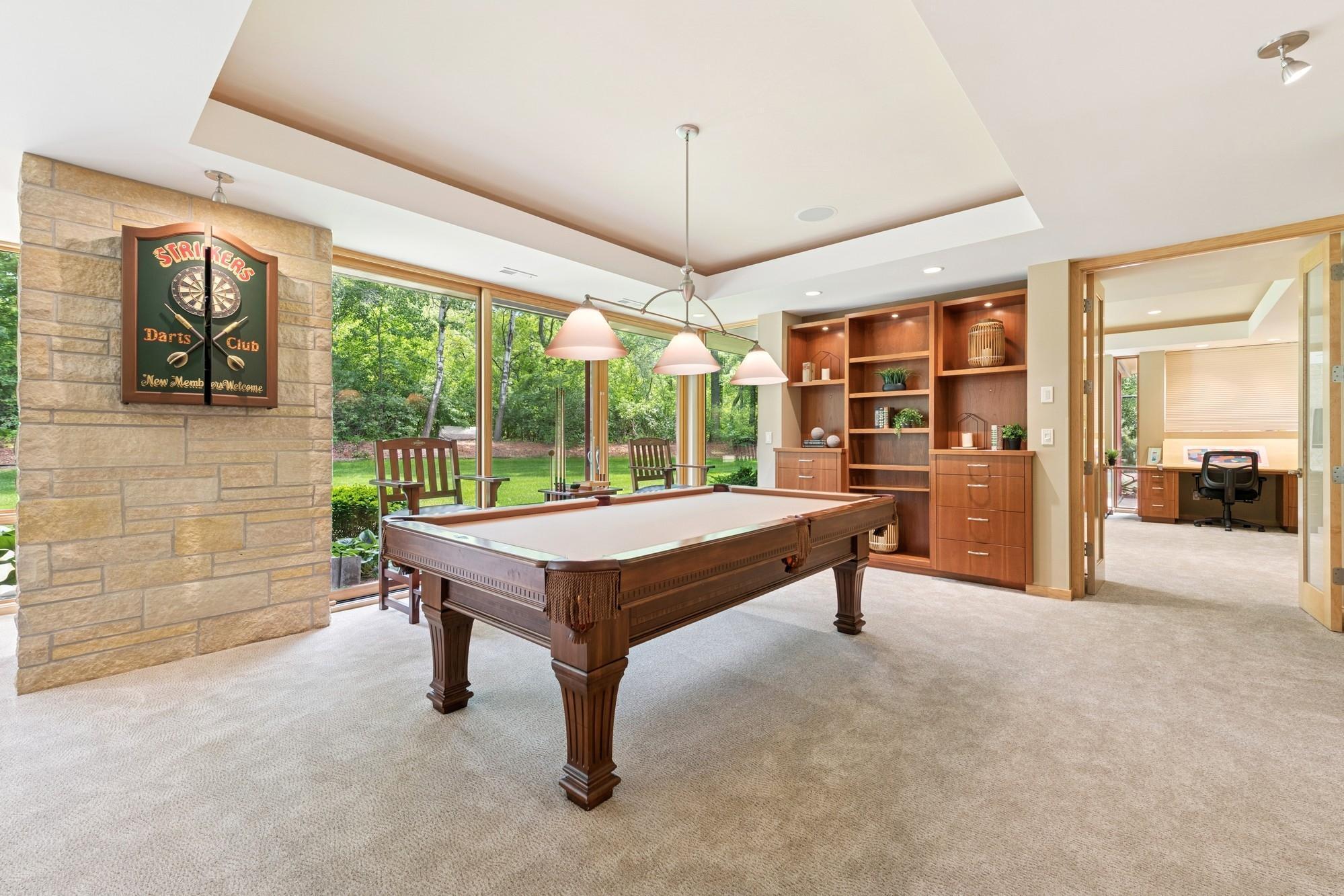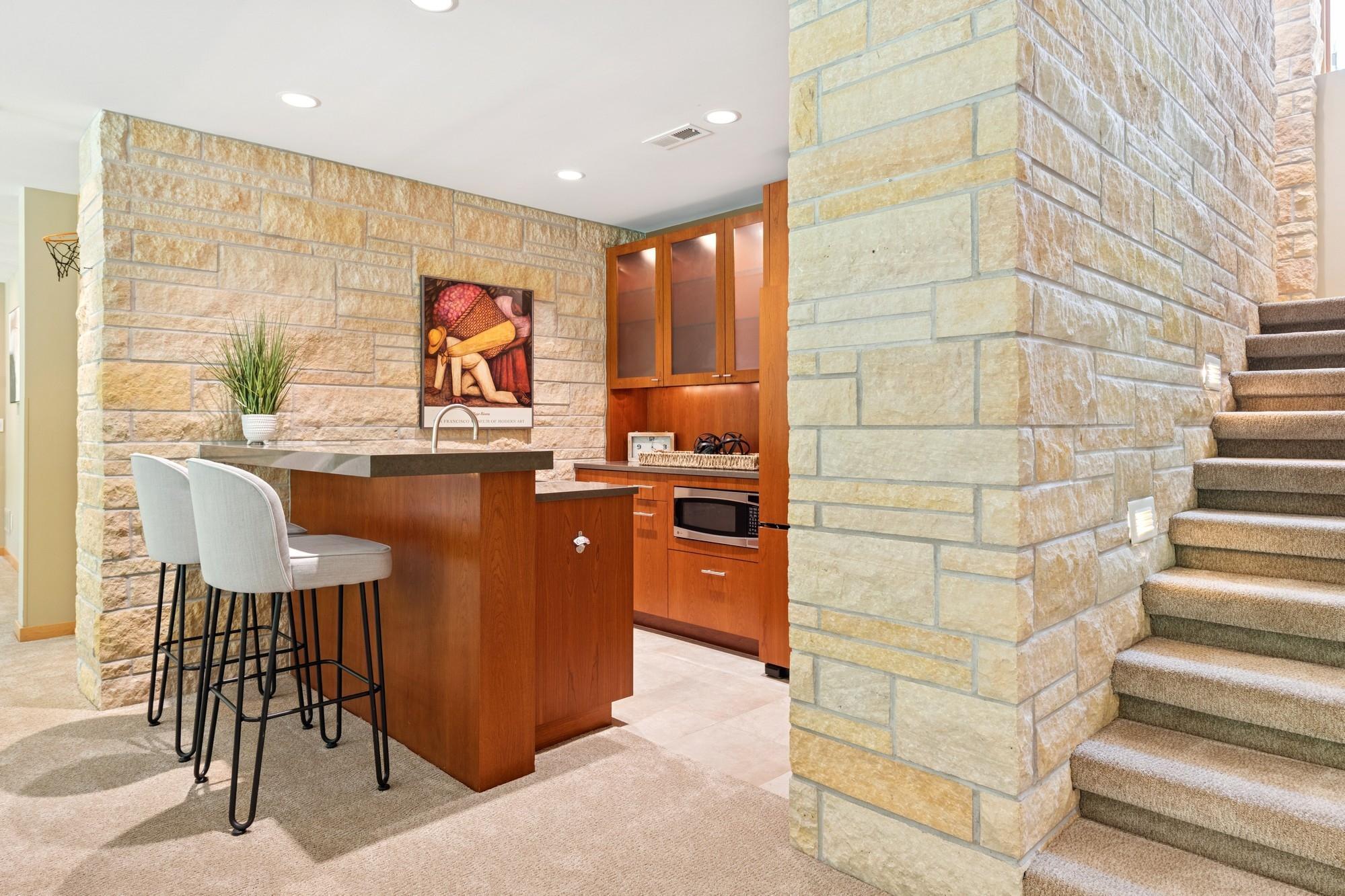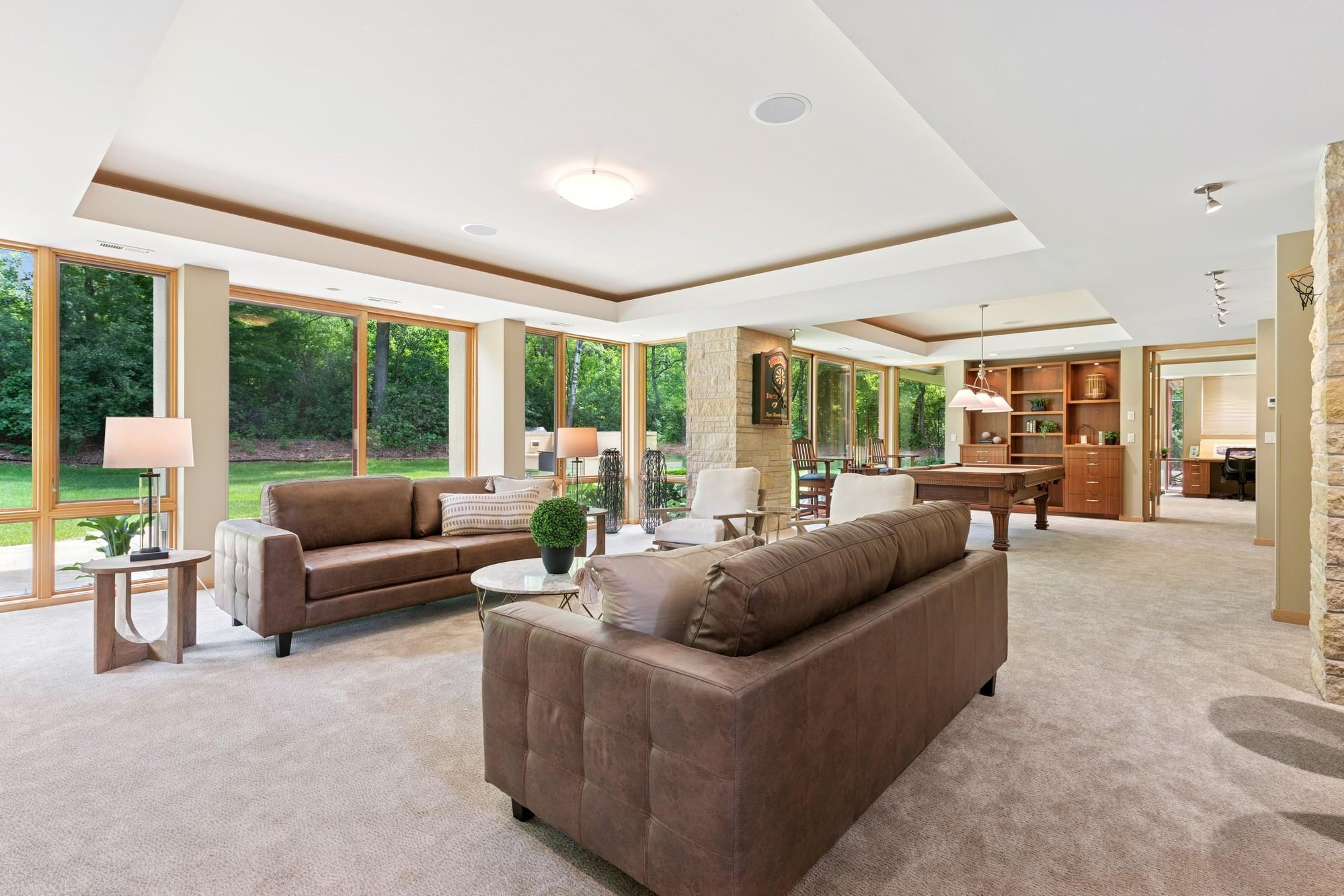 outdoors, all 4 decks, a pair of patios & 2 outdoor kitchens, a 4 season porch & the sport court all offer amazing functionality & blissful privacy. Daily ease of living is free of friction. Plus, you & your grateful guests are sure to savor fond memories made here. Your joyful celebrations have ideal spaces here! Nearby, a trio of private country clubs & one public golf course offer you extra recreation. Also, nearby dining, shopping & a boat launch on the river lets you see the Twin Cities from a splendid new perspective. With technological enhancements, strategic solar gain this private acreage estate within the city deserves your consideration. Grasp the opportunity for a private tour to see all this home & setting have to offer!