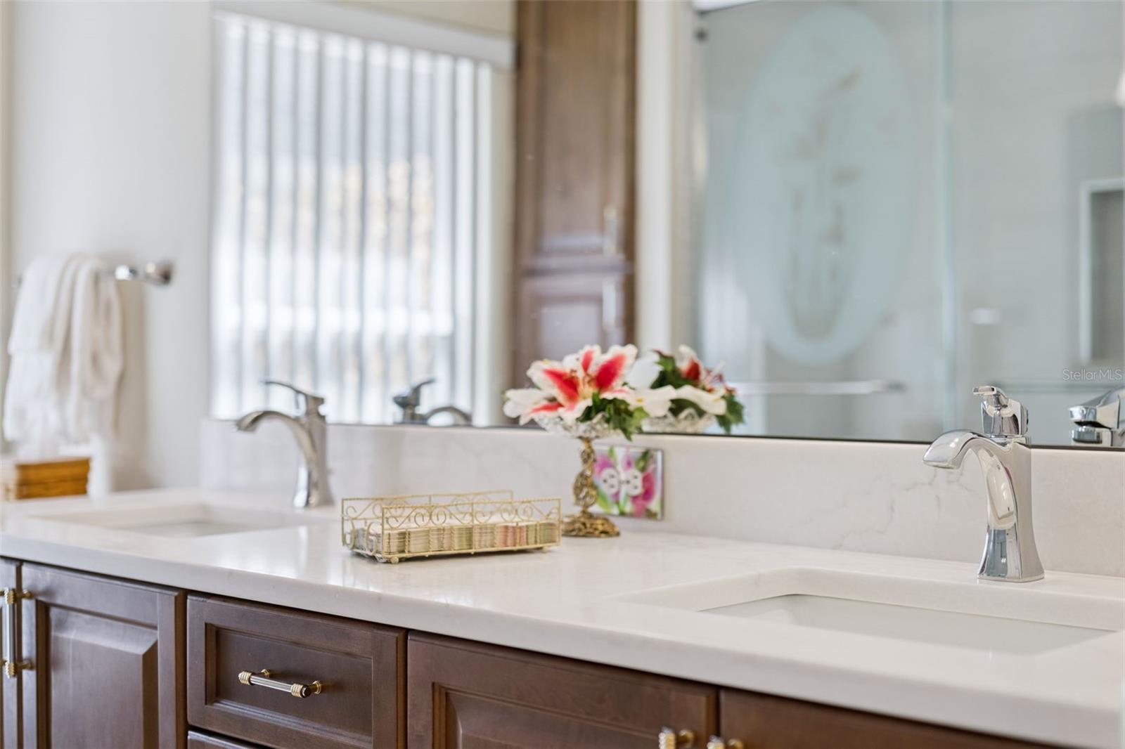 One or more photo(s) has been virtually staged. COUNTRY CLUB OF MOUNT DORA - Comfort, Elegance and Lifestyle Await in this beautifully designed and custom-built, one-owner residence. This lovingly maintained home boasts 4 spacious bedrooms and 3 elegantly remodeled baths, offering abundant spaces for comfortable living and entertaining. You’ll appreciate the formal living and dining rooms for those special gatherings as well as the inviting family room with a cozy fireplace and engineered hardwood floors, perfect for relaxing evenings. The gourmet kitchen, centrally located to allow the chef to enjoy time with family and friends while prepping and cooking, features solid wood cabinets, quartz countertops, stainless steel appliances including double ovens – and specialty storage solutions like an appliance lift. The breakfast area and kitchen are complemented by plantation shutters and sliding glass doors, creating a bright and cheerful atmosphere throughout. Enjoy easy access to the expansive lanai from the dining room, breakfast nook, family room and primary suite via sliding glass doors (all with plantation shutters), where a summer kitchen with granite countertops makes BBQs so easy. The primary suite features dual closets and a stunning ensuite with a garden tub, beautiful tile shower and dual sink vanity with convenient pull-out drawers. Every bathroom has been upgraded with modern quartz finishes and stylish fixtures, ensuring both beauty and functionality. The secondary wing of this home is designed for privacy in all bedrooms with easy bath access. Additional highlights include an inside laundry room with washer, dryer and freezer – offering direct access from the garage for everyday convenience. Speaking of the garage, there is a large two-car garage plus a dedicated golf cart garage and the paver driveway affords additional parking for guests. Multiple sliding glass doors and transom windows fill living spaces with natural light, while plantation shutters provide privacy and sophistication in the living areas and primary suite. Step outside to enjoy the lush green fairway of the second hole, the sound of birds chirping, miles of sidewalks for walking, parks, a playground and the exclusive amenities of The Country Club included in membership such as golf, pickleball, tennis and pool. Located just minutes from Downtown Mount Dora, known for its renowned festivals, local restaurants and shopping along with easy access to area beaches, theme parks and attractions within a short drive makes this the perfect location. Experience the best of Florida living in this meticulously updated, thoughtfully designed residence that’s ready for you to make your own.
