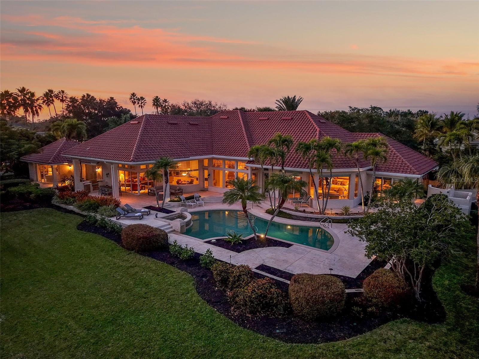 Outdoor living rivals a private resort, featuring a heated gas pool and spa, waterfalls and Private pool bath. An expansive covered lanai including outdoor summer kitchen with built-in grill has a desirable southern exposure overlooking the lakes from sunrise to sunset—perfect for year-round enjoyment. A private guest house/casita adds exceptional flexibility, ideal for extended guests, a fitness/artist studio, or media space. Additional highlights: NEW Tile roof (2022), New Paint (2023) NEW Water heaters (2025), NEW AC/Thermostats (2025) mitered window design, zoned heating and cooling, central vacuum, security system, and professional community management—making this home with golf membership an attractive option for investors seeking a low-maintenance luxury asset as well as buyers desiring immediate enjoyment.