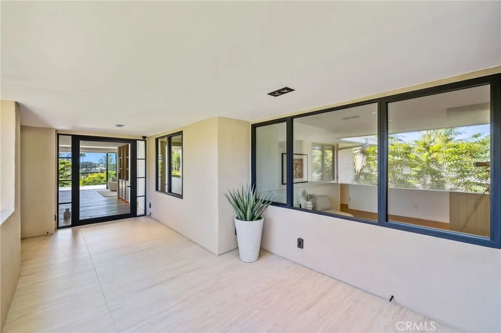 Experience elevated coastal living in this exquisitely renovated Newport Beach view home. Completed in June, 2025, this upper corner unit is nestled in the exclusive, guard-gated Granville community. Blending modern design with high-end finishes and upgrades, this single-level residence offers panoramic views of the Newport Beach Country Clubs 9th fairway. Step through a custom pivot front door into a sun-filled, open-concept layout featuring vaulted ceilings, wide-plank hardwood floors, and floor-to-ceiling Fleetwood glass slider doors. The gourmet kitchen is a showstopper with custom European white oak cabinetry, Neolith countertops, Sub-Zero and Wolf appliances. The spacious island flows seamlessly into the dining and living areas, complete with a fireplace and built-ins. The primary suite is a peaceful retreat with fluted wainscoting, a sitting area, walk-in closet, and spa-inspired bath. A second bedroom, stylish hall bath, and versatile bonus room (ideal for an office or gym) complete the floor plan. A deep-blue laundry room adds functional flair. Upgrades include: lime-washed walls, RH and Rejuvenation decorative lighting and hardware, wired Palladiom roller shades and architectural keypads, Savant Smart Home Living Systems, new tankless water heater, and a finished 2-car garage. Enjoy resort-style amenitiesguard gate, 24/7 security on the golf course, a clubhouse, pool/spa. This is Newport Beach living at its finest.