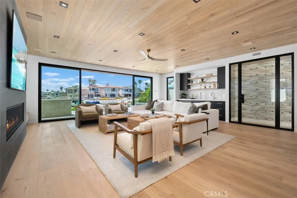 A rare opportunity to own a brand-new, architecturally striking waterfront home in the exclusive gated community of Balboa Coves. Designed by local experts Brian Liberto, architect Craig Hampton, and the renowned teams at MID Design and RDM General Contractors, this modern coastal retreat is a refined example of Newport Beach luxury living. Situated on an oversized 3,888 sq. ft. lot on the water with a private boat dock, this smart, tech-forward home offers approx. 3,753 sq. ft. of interior living space and over 5,000 sq. ft. total, including garage and outdoor areas. The open layout features 4 bedrooms, 4.5 bathrooms, and a private rooftop retreat with an additional bed and bath ideal for entertaining or enjoying panoramic Catalina Island and ocean views. Inside, the home blends modern elegance with coastal warmth, offering European white oak floors, natural stone and tile finishes, tongue-and-groove ceilings, and custom oak detailing. The chefs kitchen features top-tier Wolf and Sub-Zero appliances, while a temperature-controlled wine cellar holds up to 100 bottles. Powered by Crestron smart home automation, enjoy fully customizable lighting, climate, audio, and security luxury at your fingertips. Step outside to experience the ultimate waterfront lifestyle with your own private boat dock perfect for paddleboards, Duffy boats, or weekend cruises. The property also includes 4-car parking plus ample guest parking a valuable bonus in this gated enclave. Balboa Coves is one of Newport Beachs most private and coveted waterfront communities, with amenities including a dog p