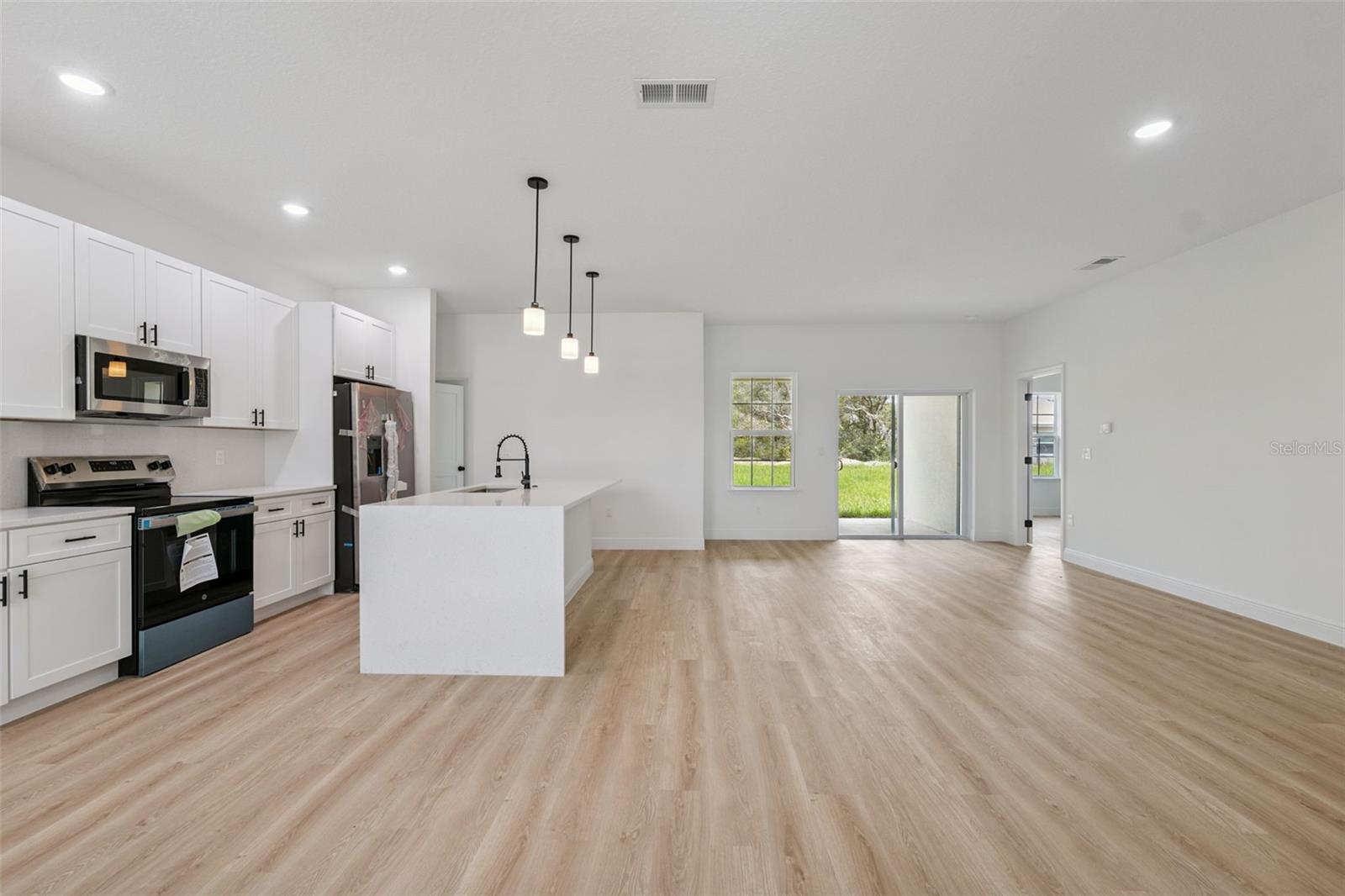 The open-concept floor plan seamlessly integrates the bright living room, dining room, and spacious kitchen – a perfect space for entertaining friends or simply relaxing at home. The spacious and functional kitchen is the true heart of the property, ideal for cooking and socializing.