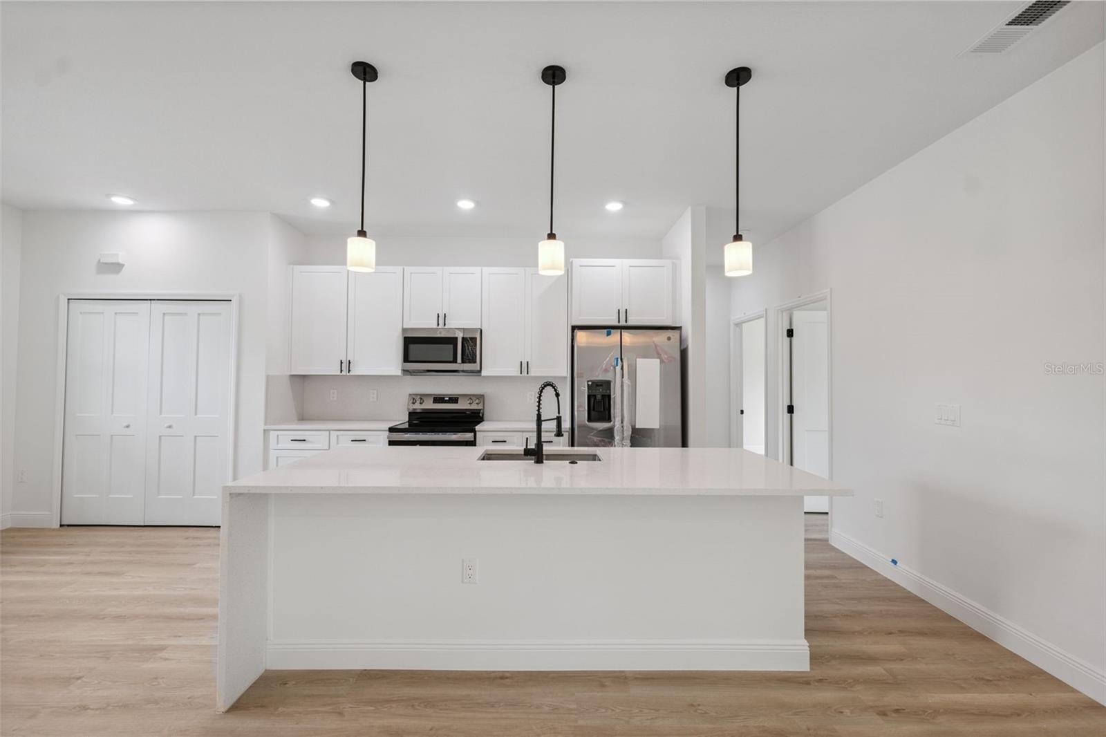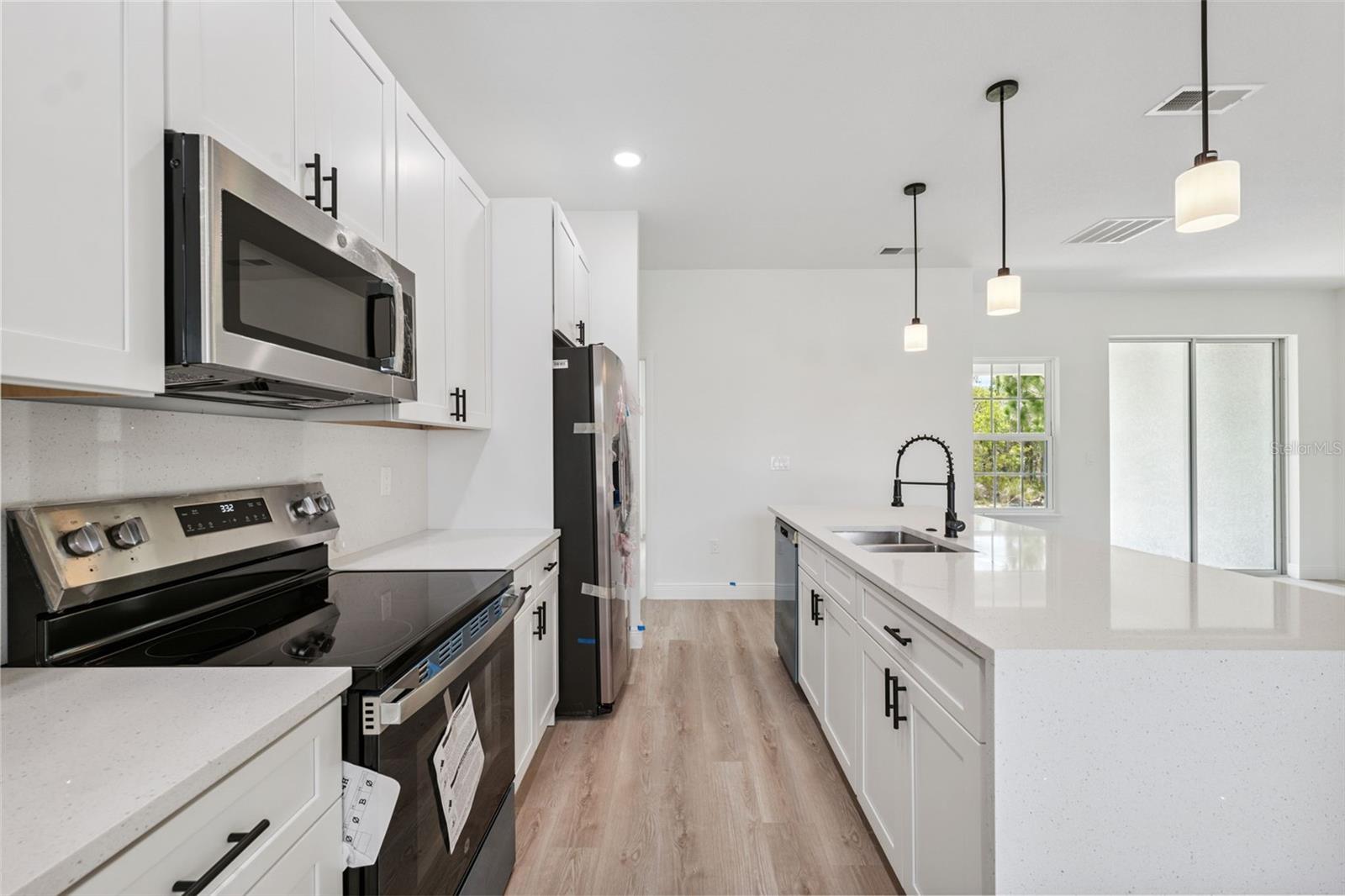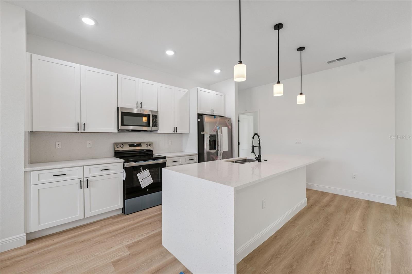 The open-concept floor plan harmoniously connects the bright living room, dining room, and spacious kitchen – a perfect space for socializing or relaxing at home. The spacious and functional kitchen is the true heart of the home, ideal for those who enjoy cooking and socializing. It is already equipped with all the main appliances for your convenience.