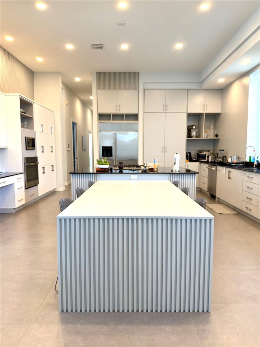 * The Chef’s Kitchen: Outfitted with custom cabinetry and striking Galaxy Granite, perfect for hosting post-golf gatherings.