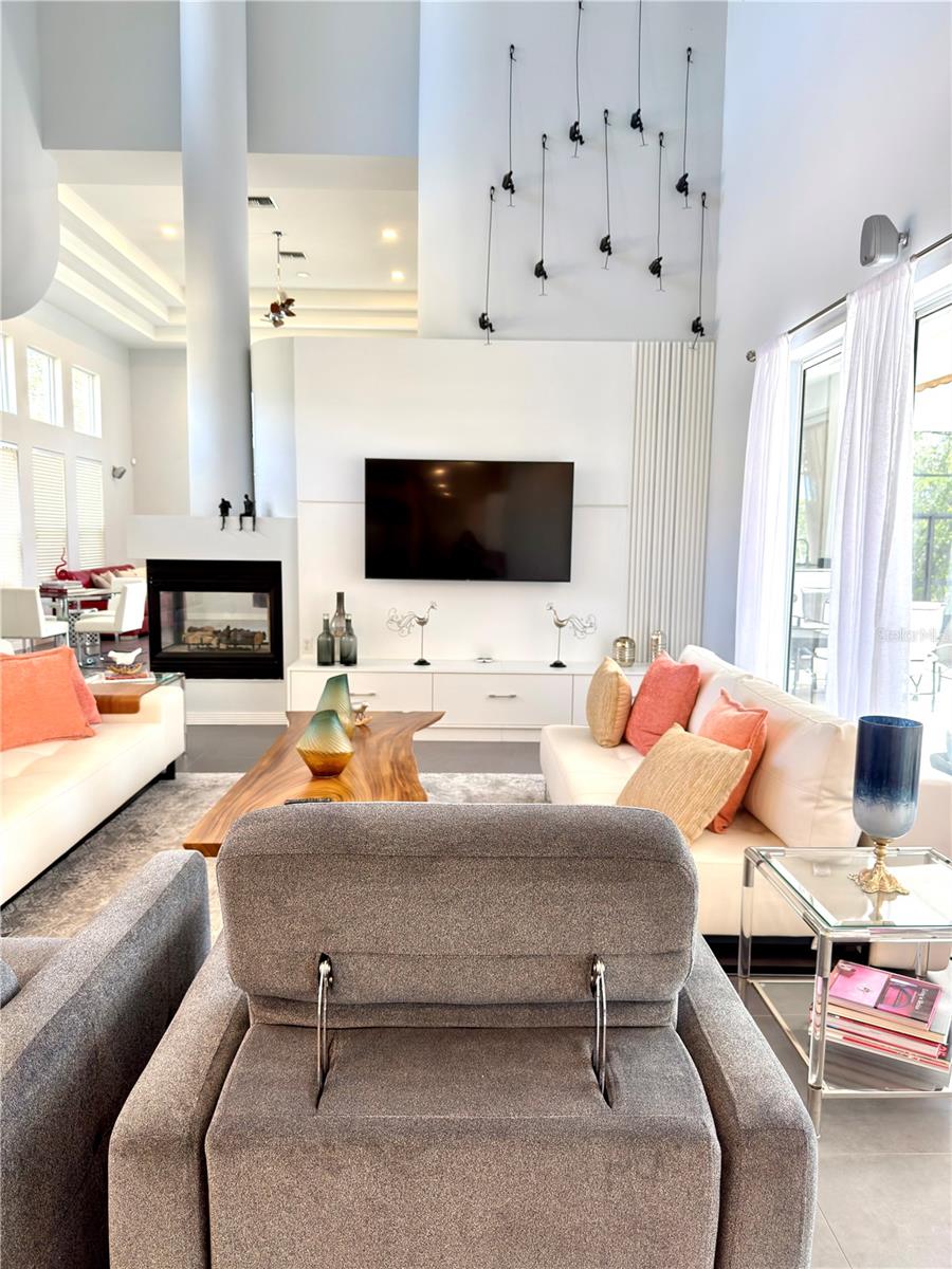 Inside, the home transitions seamlessly from the outdoors to grand living spaces designed for high-end hosting.