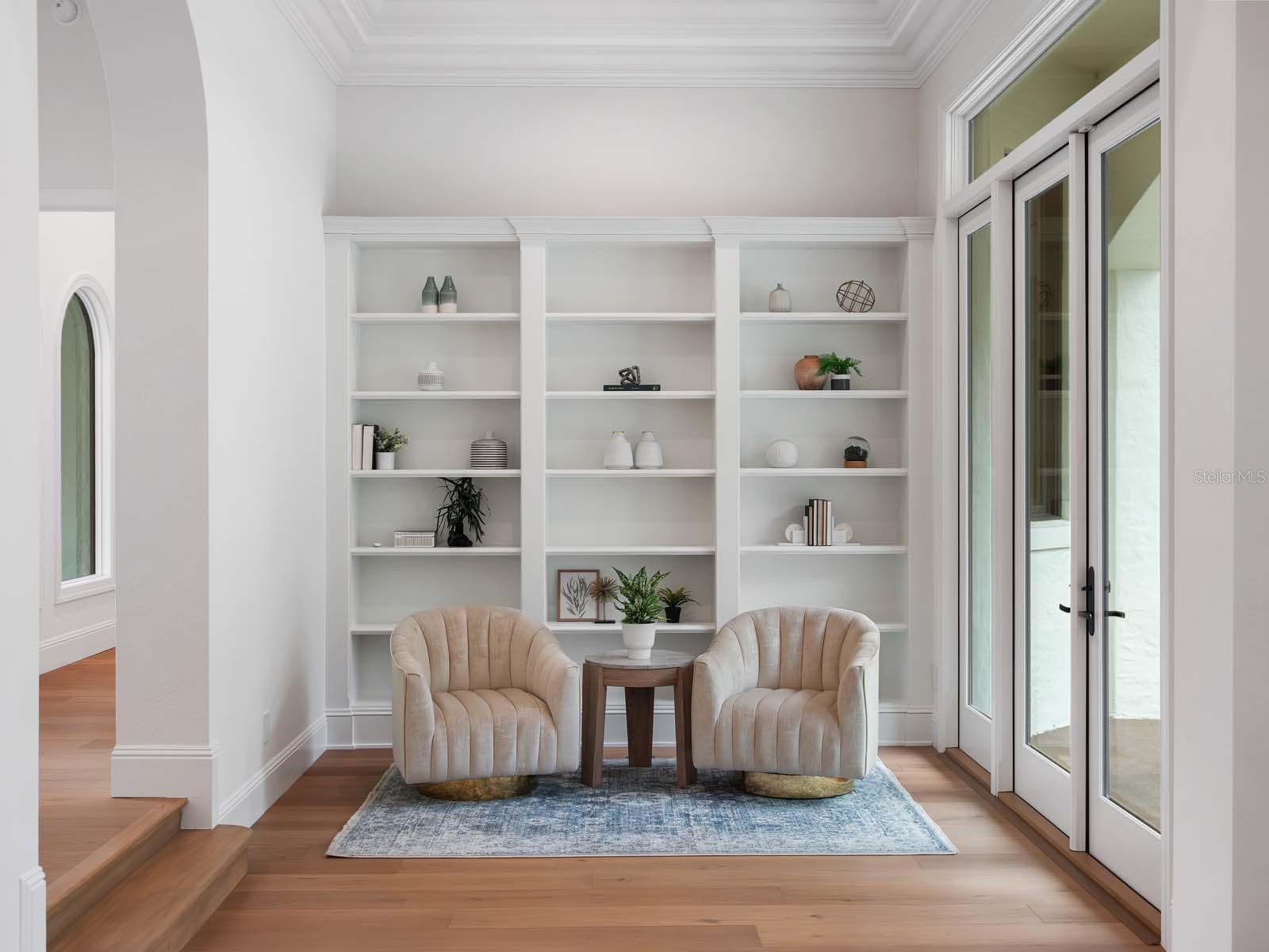 Custom double doors open to the home’s welcoming foyer, which introduces the thoughtful floor plan where formal and casual living spaces are enhanced by natural light and golf course views. The elevated interior design strikes the perfect balance of sophistication and warmth with new European white oak hardwood flooring and custom cabinetry throughout, and Lutron lighting integration for intuitive whole-home control. The chef’s kitchen showcases an all-new Viking appliance suite, including a 48” dual-fuel range with six burners, griddle, and double ovens, a 48” built-in refrigerator, professional dishwasher, and matching hood. A center island with Kohler prep sink, a walk-in pantry and a breakfast nook complete the space.
