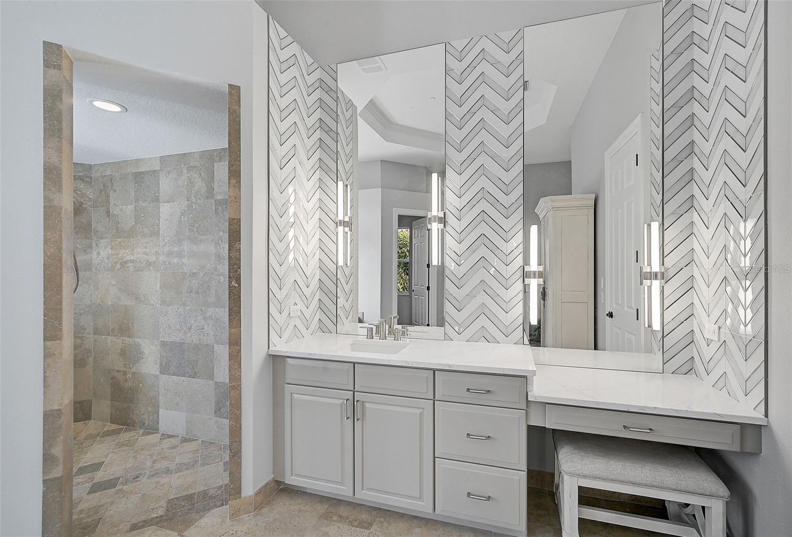 The first-floor primary suite is a true retreat, featuring high ceilings, multiple closets, and a flexible sitting area that can serve as a nursery, gym, or private office. Upstairs, guests enjoy their own wing complete with a loft, theater, and screened terrace—ideal for relaxing or hosting in style.