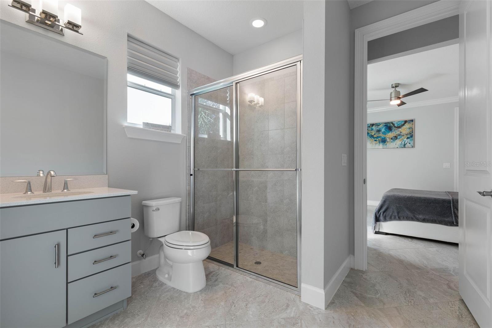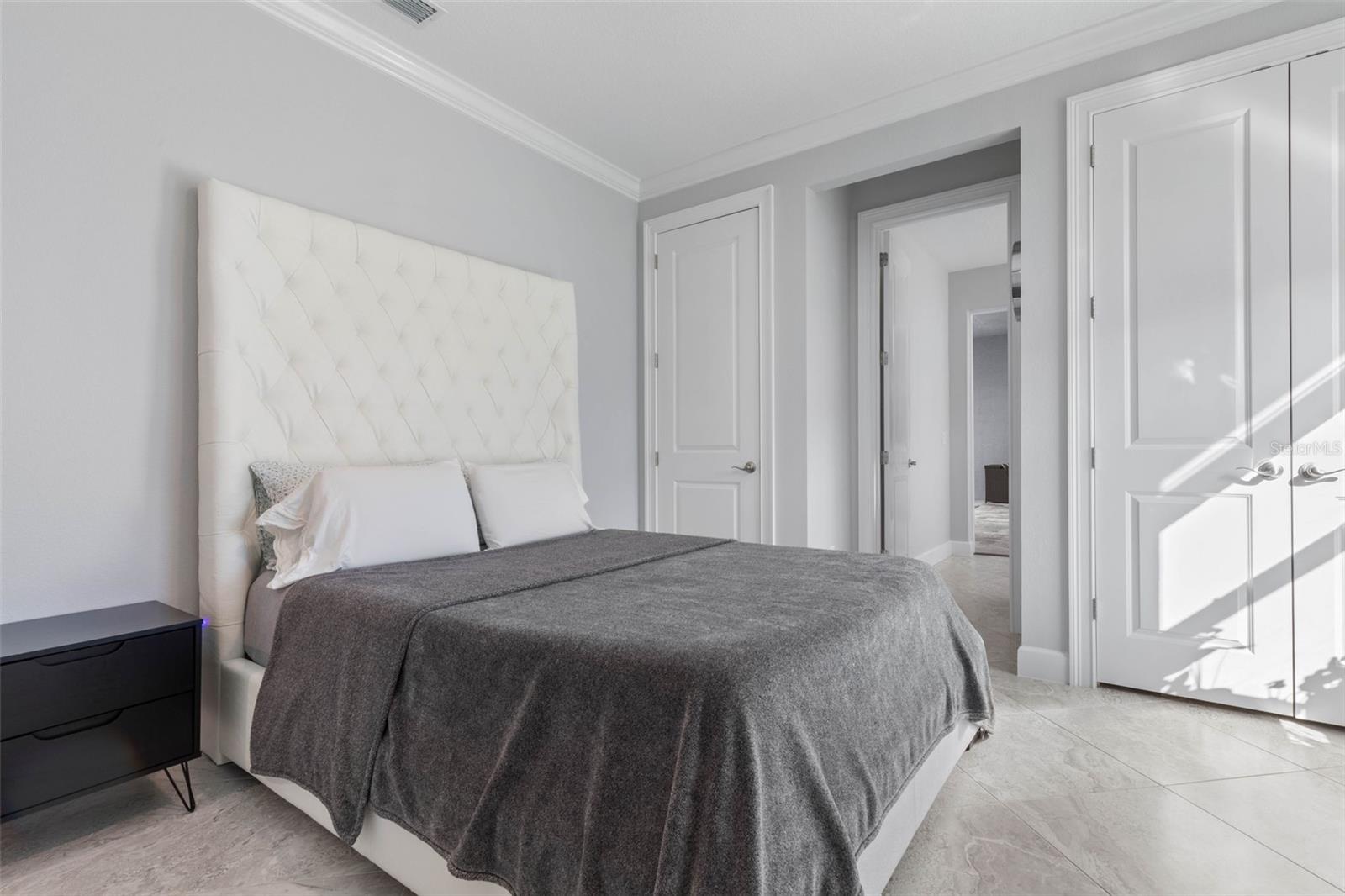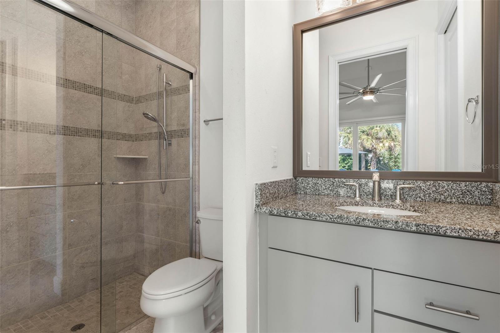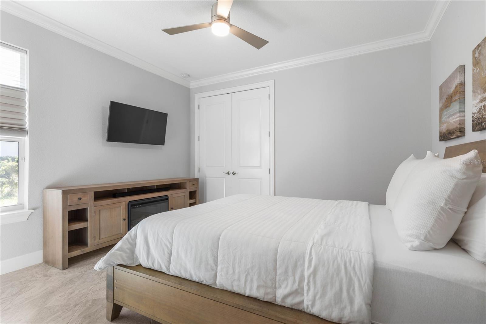 The south wing includes two generous guest suites, each with full ensuite baths, one of which also serves as a dedicated pool bath opening directly to the pool, covered lanai and covered summer kitchen.
