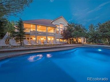 Furnished Castle like home for rental, 10,000 sft home, private outdoor pool, secluded on a 35 acres parcel with private access gate. Amazing mountain views, outdoor kitchen , kids playground , sand volleyball court, barn with care taker apartment can be included for extra rent. the mile long drive welcomes you to the beautiful home with just under 10,000 finished sq ft and with a lovely open floor plan making this home ideal for entertaining* main floor master suite w/private balcony* fabulous finished basement with huge bar walks out to an amazing outdoor oasis with private pool, firepit, 20 min to dtc, 30 min to downtown denver, 40 min to dia* care takers apartment is additional 1,000 square feet