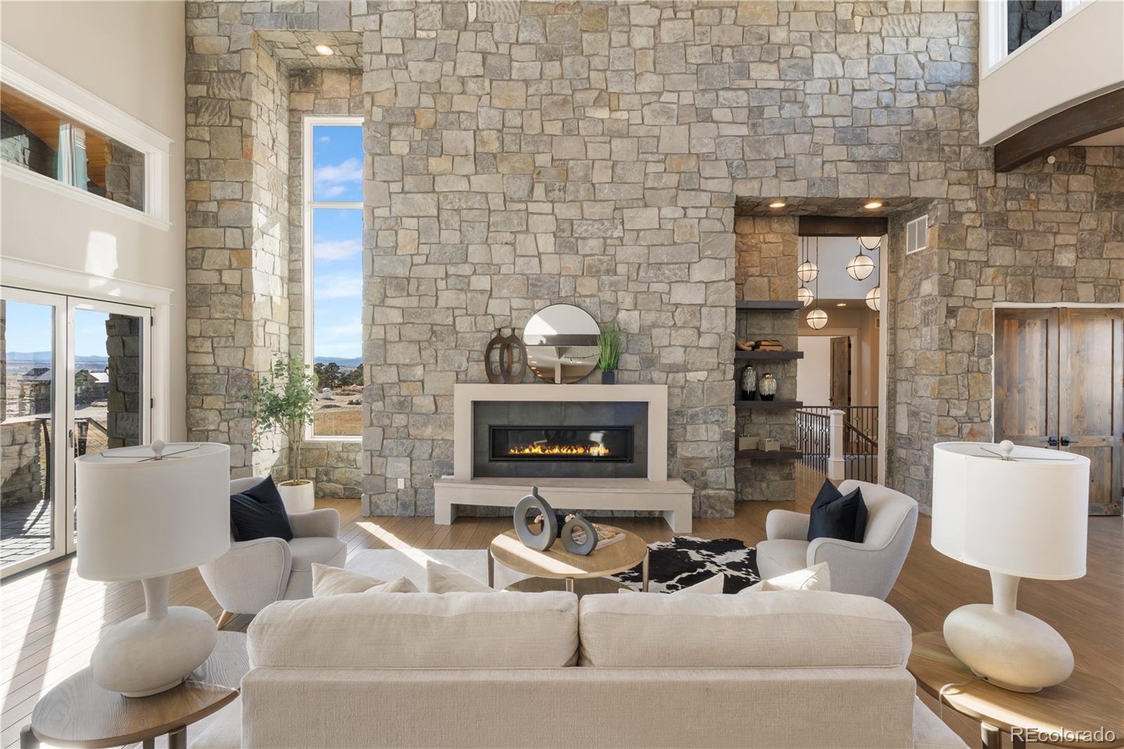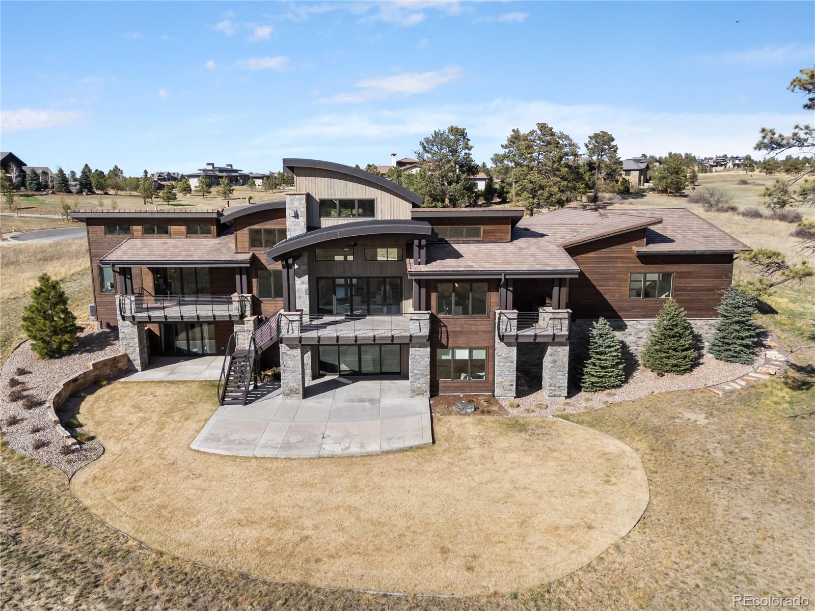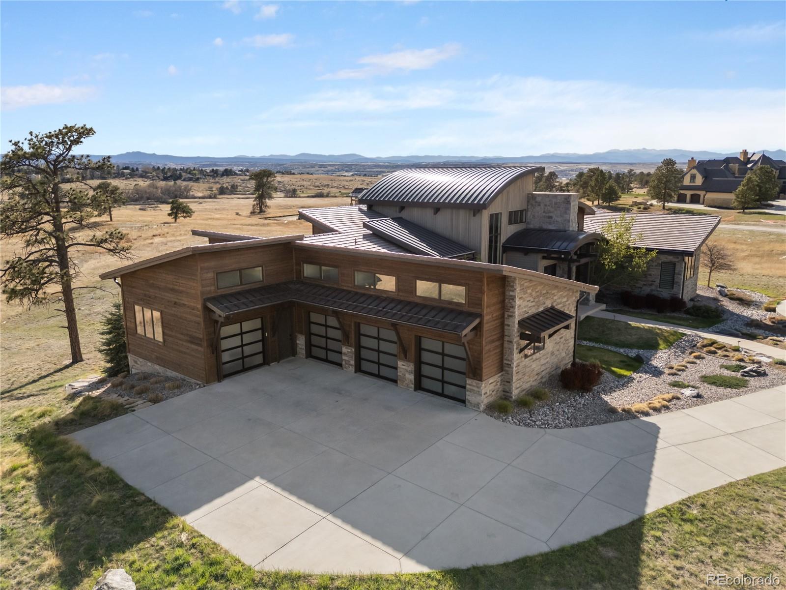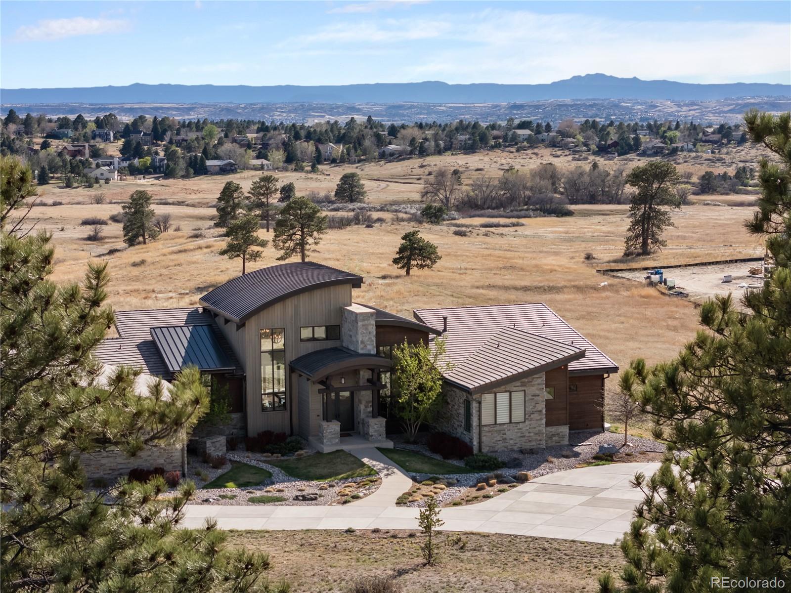 This one feels different the moment you walk in, mountain-inspired design, walls of glass, and views you won’t forget. Tucked behind the gates of one of Colorado’s most coveted communities, this custom Sterling residence on a quiet cul-de-sac feels like a private retreat from the moment you arrive. With warm wood tones, bold architectural details, and seamless indoor-outdoor design, the home captures the essence of Colorado mountain living, all within minutes of Parker. Filled with natural light, the home showcases a rustic aesthetic with rich wood elements, exposed beams, and thoughtfully designed spaces that create depth and character throughout. Expansive walls of glass and dramatic bifold doors open to multiple private balconies, framing sweeping views of Pikes Peak, the Front Range, the golf course, and surrounding open space.The interior balances refined design with comfort, where natural textures and clean lines create an inviting, elevated atmosphere. Whether it’s a quiet morning with coffee or an evening gathering at sunset, every space feels both relaxed and intentional.Designed for everyday living and entertaining, the home features a dedicated coffee bar, a spacious lower-level lounge with a full entertainer’s bar, and a glass-enclosed wine room with private seating. The chef’s kitchen, complete with Gaggenau appliances, opens to an outdoor grilling terrace for effortless indoor-outdoor living. Additional highlights include a four-car garage, circular drive, private office, walk-in pantry, mudroom, laundry on each level, and multiple ensuite bedrooms with generous closets. Set on over two acres with an invisible pet fence, the property offers space, privacy, and ease.Located within the gated and guarded Colorado Golf Club, an invite-only community known for its exclusivity and serene setting, residents enjoy abundant wildlife, quiet surroundings, and convenient access to Parker amenities. Opportunities like this are rare, and this one is yours.