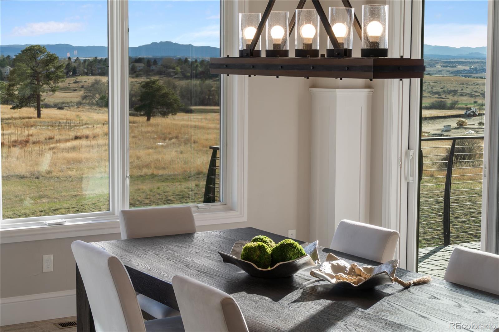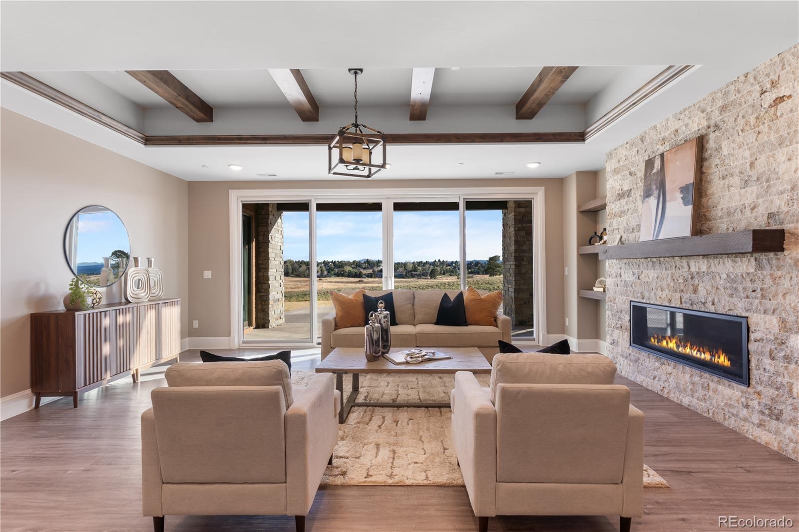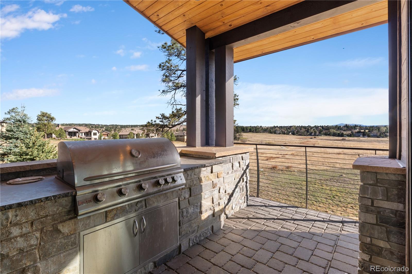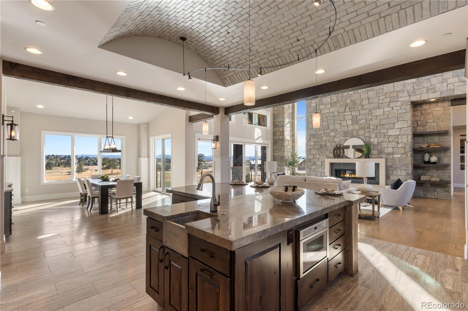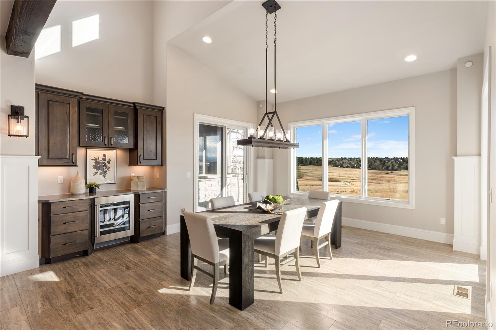 This one feels different the moment you walk in, mountain-inspired design, walls of glass, and views you won’t forget. Tucked behind the gates of one of Colorado’s most coveted communities, this custom Sterling residence on a quiet cul-de-sac feels like a private retreat from the moment you arrive. With warm wood tones, bold architectural details, and seamless indoor-outdoor design, the home captures the essence of Colorado mountain living, all within minutes of Parker. Filled with natural light, the home showcases a rustic aesthetic with rich wood elements, exposed beams, and thoughtfully designed spaces that create depth and character throughout. Expansive walls of glass and dramatic bifold doors open to multiple private balconies, framing sweeping views of Pikes Peak, the Front Range, the golf course, and surrounding open space.The interior balances refined design with comfort, where natural textures and clean lines create an inviting, elevated atmosphere. Whether it’s a quiet morning with coffee or an evening gathering at sunset, every space feels both relaxed and intentional.Designed for everyday living and entertaining, the home features a dedicated coffee bar, a spacious lower-level lounge with a full entertainer’s bar, and a glass-enclosed wine room with private seating. The chef’s kitchen, complete with Gaggenau appliances, opens to an outdoor grilling terrace for effortless indoor-outdoor living. Additional highlights include a four-car garage, circular drive, private office, walk-in pantry, mudroom, laundry on each level, and multiple ensuite bedrooms with generous closets. Set on over two acres with an invisible pet fence, the property offers space, privacy, and ease.Located within the gated and guarded Colorado Golf Club, an invite-only community known for its exclusivity and serene setting, residents enjoy abundant wildlife, quiet surroundings, and convenient access to Parker amenities. Opportunities like this are rare, and this one is yours.