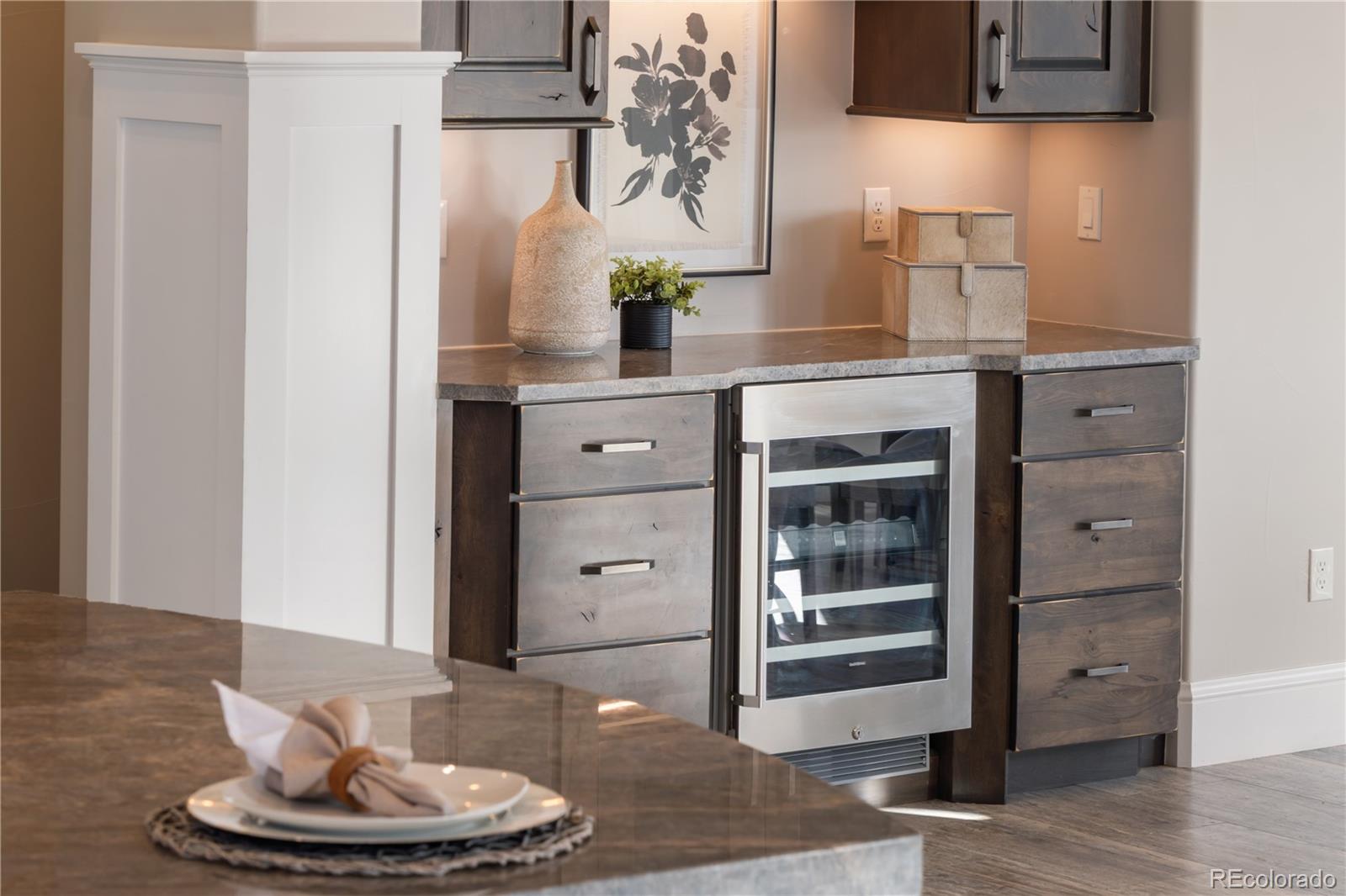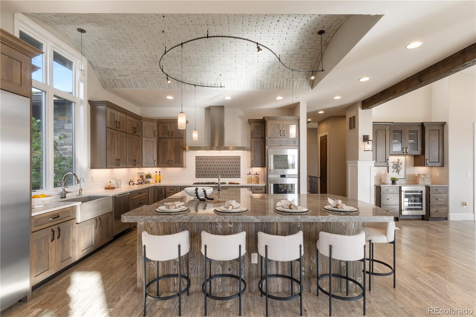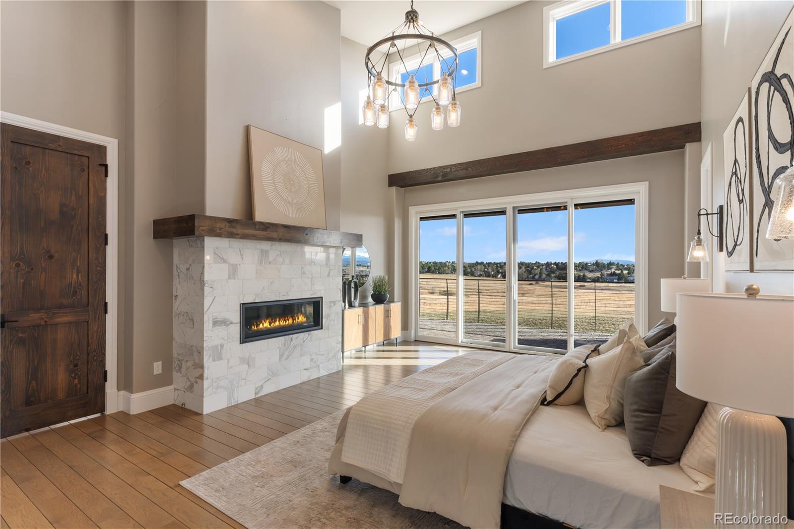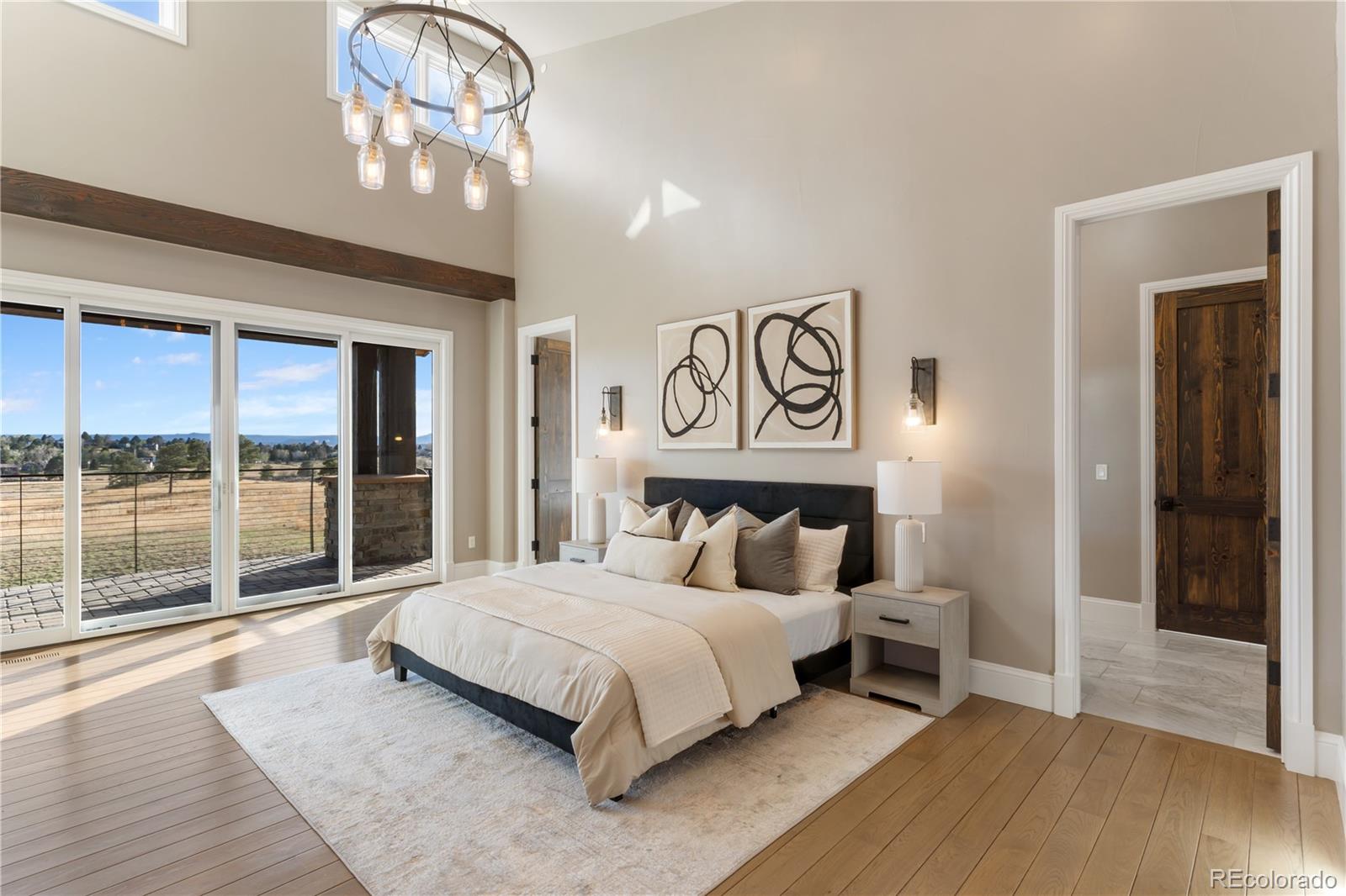 This one feels different the moment you walk in, mountain-inspired design, walls of glass, and views you won’t forget. Tucked behind the gates of one of Colorado’s most coveted communities, this custom Sterling residence on a quiet cul-de-sac feels like a private retreat from the moment you arrive. With warm wood tones, bold architectural details, and seamless indoor-outdoor design, the home captures the essence of Colorado mountain living, all within minutes of Parker. Filled with natural light, the home showcases a rustic aesthetic with rich wood elements, exposed beams, and thoughtfully designed spaces that create depth and character throughout. Expansive walls of glass and dramatic bifold doors open to multiple private balconies, framing sweeping views of Pikes Peak, the Front Range, the golf course, and surrounding open space.The interior balances refined design with comfort, where natural textures and clean lines create an inviting, elevated atmosphere. Whether it’s a quiet morning with coffee or an evening gathering at sunset, every space feels both relaxed and intentional.Designed for everyday living and entertaining, the home features a dedicated coffee bar, a spacious lower-level lounge with a full entertainer’s bar, and a glass-enclosed wine room with private seating. The chef’s kitchen, complete with Gaggenau appliances, opens to an outdoor grilling terrace for effortless indoor-outdoor living. Additional highlights include a four-car garage, circular drive, private office, walk-in pantry, mudroom, laundry on each level, and multiple ensuite bedrooms with generous closets. Set on over two acres with an invisible pet fence, the property offers space, privacy, and ease.Located within the gated and guarded Colorado Golf Club, an invite-only community known for its exclusivity and serene setting, residents enjoy abundant wildlife, quiet surroundings, and convenient access to Parker amenities. Opportunities like this are rare, and this one is yours.