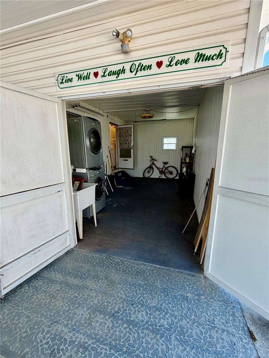 2BR/2BA double-wide in a top-5 rated Retirement Communities for 2025! Price includes Share, valued at $55,000… Lovely, open concept kitchen with stainless steel appliances, an oversized island, with ample amount of cabinetry … Newer vinyl flooring, double pane windows, roof-over (which includes the shed/laundry area), oversized shed which houses the stackable washer & dryer, the newer water heater, a wash tub AND has direct access to the interior of the home thru the 2nd bedroom.. A/C 2012. The bonus room (not included in square footage) offers flexible space and can serve as a third bedroom, closing off with barn doors for privacy. Both updated bathrooms include walk-in showers. Enjoy the cozy screened front porch! You can invite the whole family for relaxing and taking in the Florida lifestyle here……….